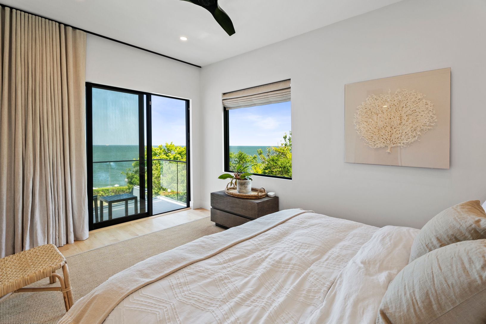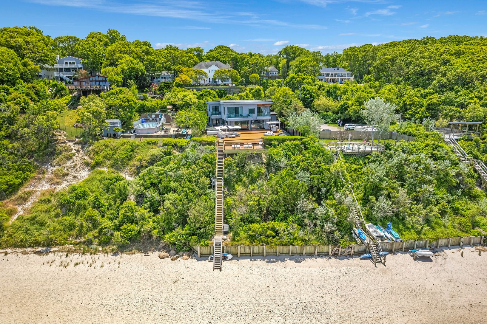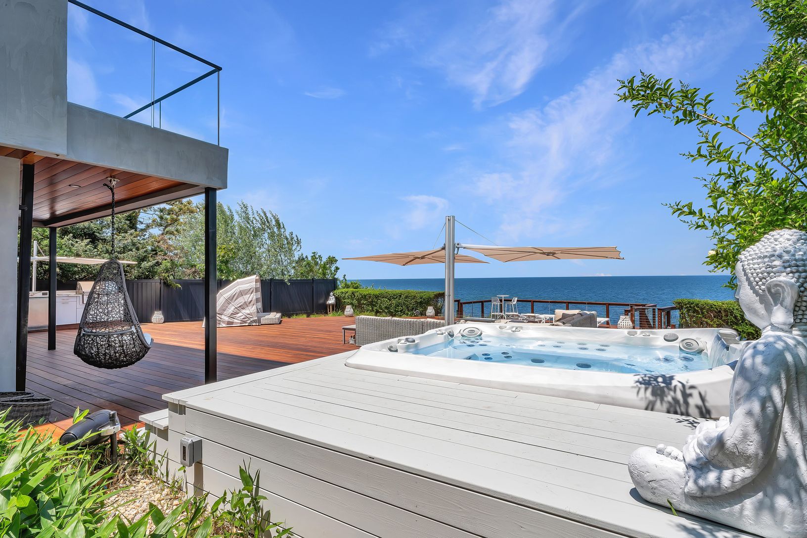 .Like the most luxurious resorts, 66 Beach Club Lane combines sophisticated design, chic amenities, breathtaking views and privacy to bring you the perfect vacation rental. Fully renovated in 2021, this architecturally sophisticated 2 story home features warm wood and clean lines, Shoji screens and glass walls to frame the incredible views of the Long Island Sound. The ground level has an open floor plan featuring a chef's kitchen with quartz