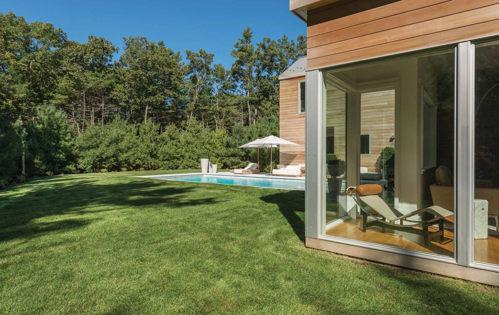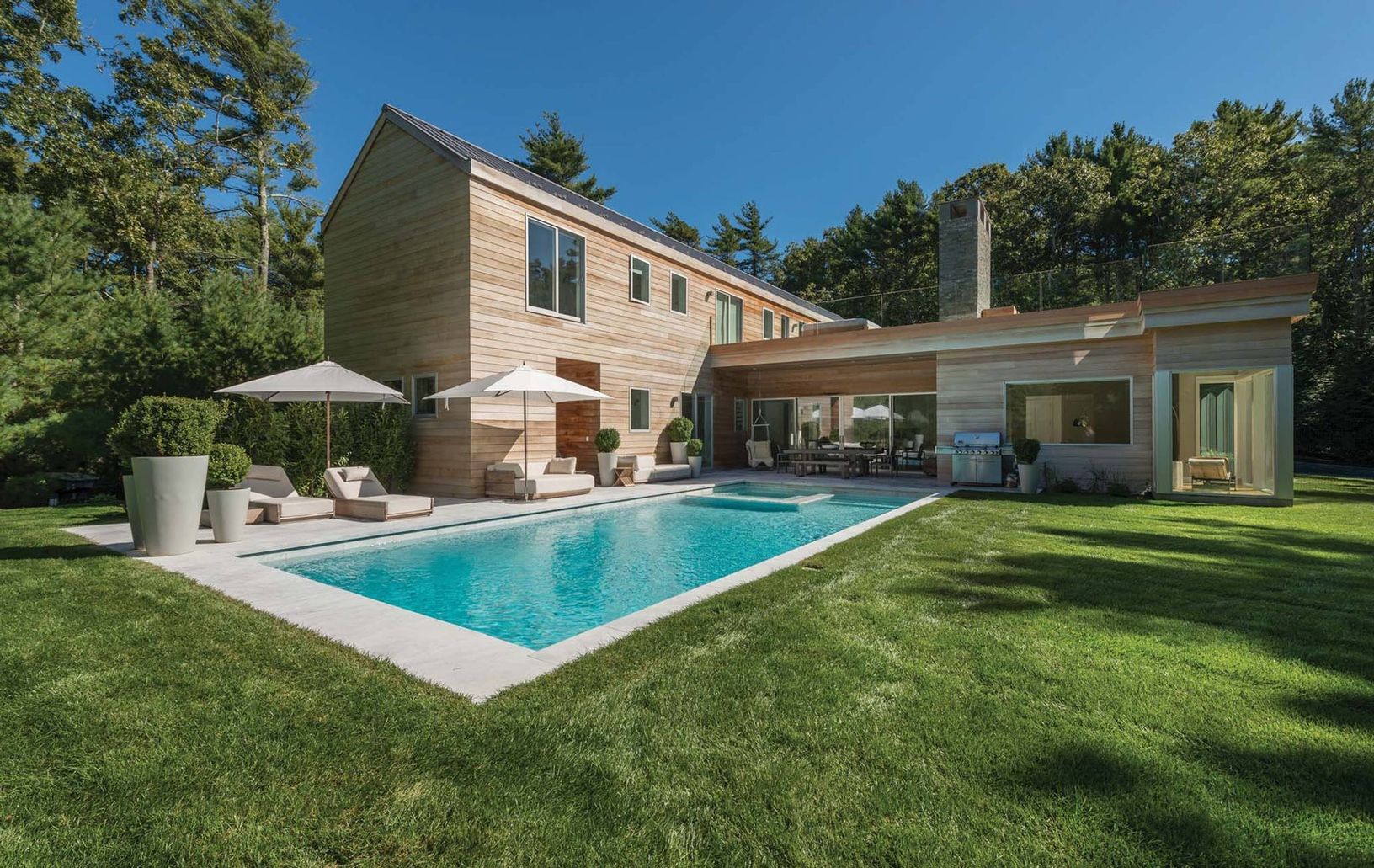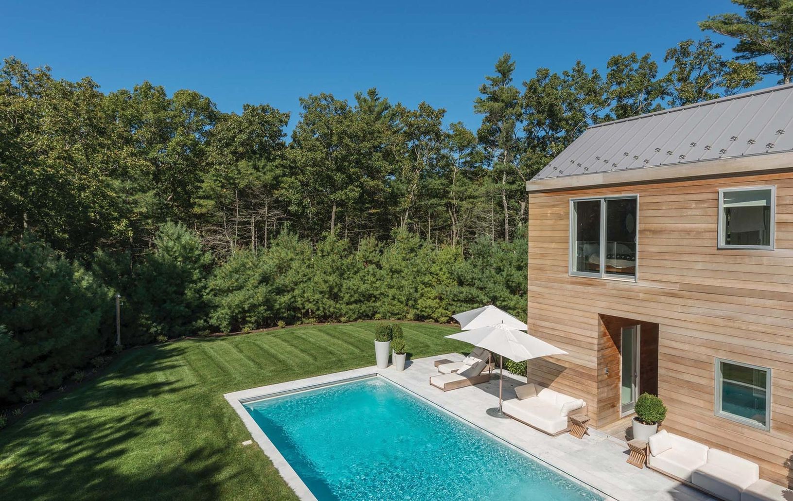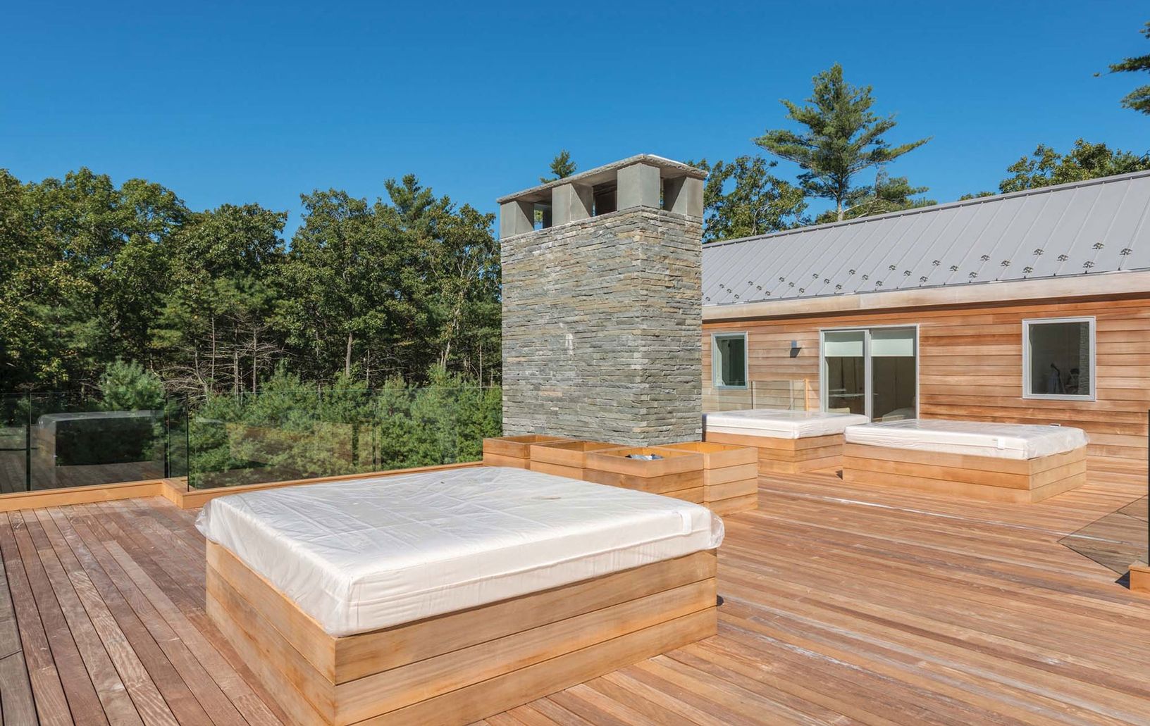 A modern work of art. Conceived through an exceptional collaboration by a renowned architect Tom Creed, designer Timothy Godbold, and Hallissey Builders, this 7 bedroom, 7.5 bath newly built modern home spans 7,000 square feet on three levels and boasts a 1,500 square foot rooftop terrace made from Ipe hardwood that seems to float among the surrounding white pines. Perched in privacy on Bull Path abutting perpetual reserve, this tranquil setti