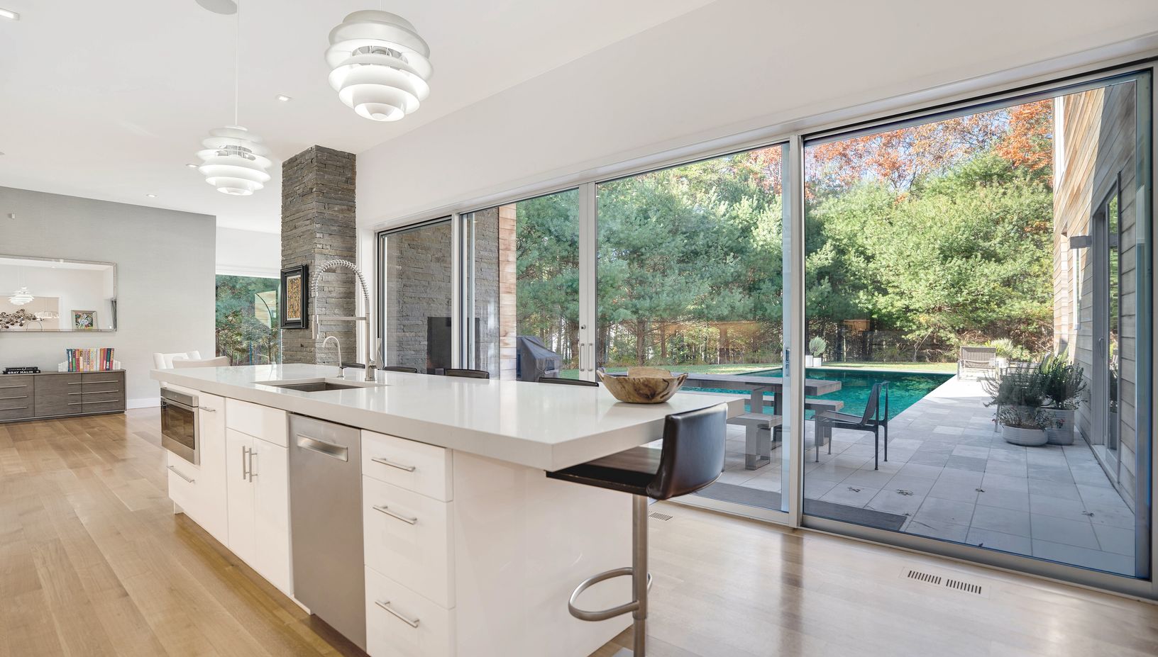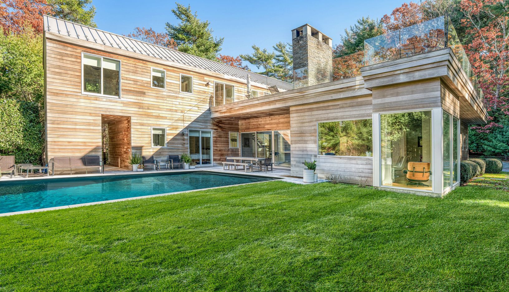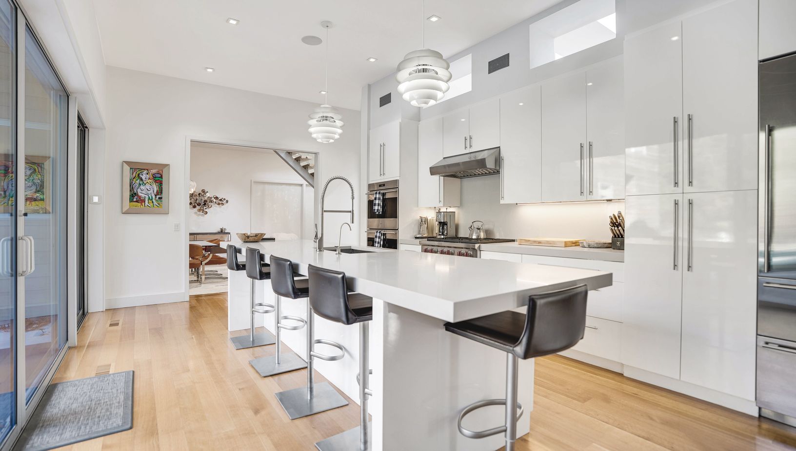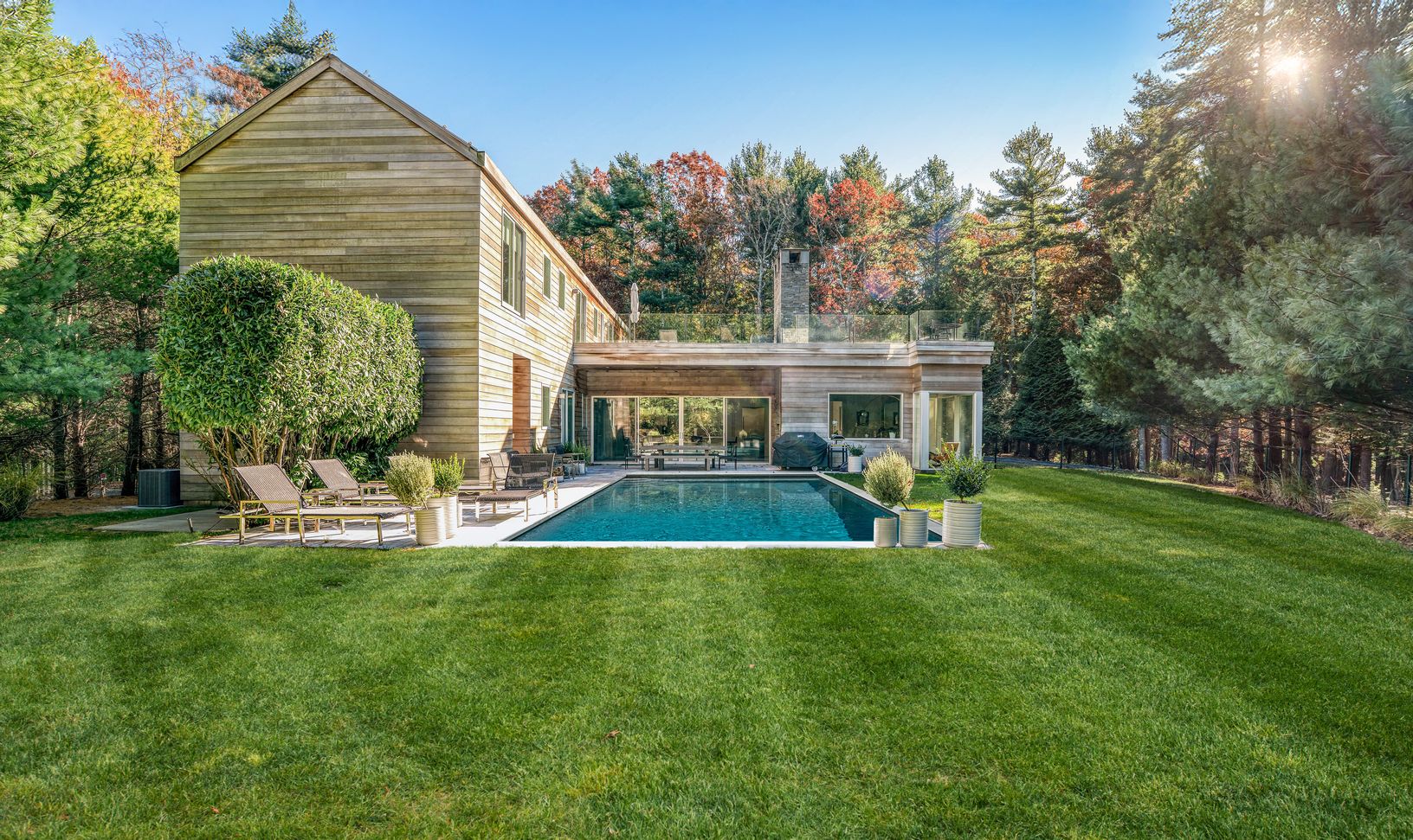 This stylish modern home offers about 6,600 square feet of beautifully designed living space plus a rooftop terrace perfect for summer lounging. Light-filled and airy, it features a glass-walled living room, sleek chef's kitchen, elegant dining area, cozy den, and seven bedrooms with eight-plus baths-all finished with chic décor and high-end touches.The lower level includes a gym, recreation room, theater, and two ensuite guest rooms. Outside,