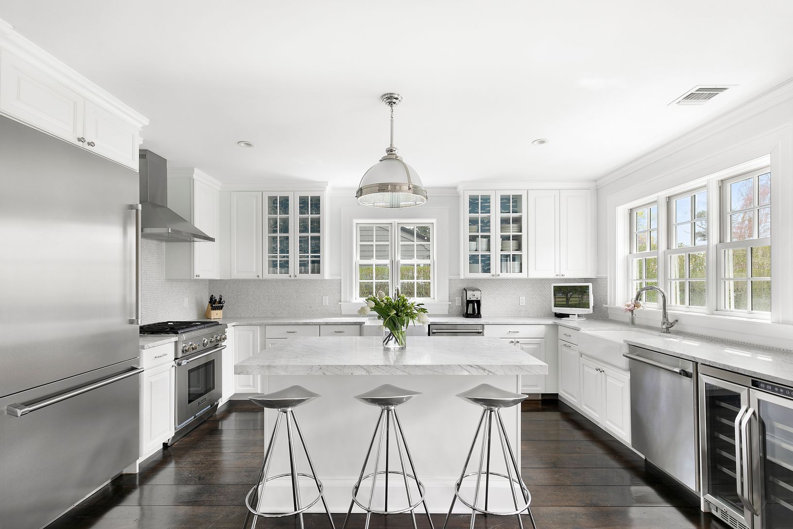 This beautifully designed home was completely rebuilt in 2016 and has just come on the market. The home is move in ready so you can be in by summer. Don't miss out on this perfectly situated property on a quiet tree lined street in Sag Harbor Village, built with amazing attention to detail including ornate trim, wainscoting and wide plank pine flooring throughout. The entry opens to an elegant living room with Rumsford fireplace adjacent to a