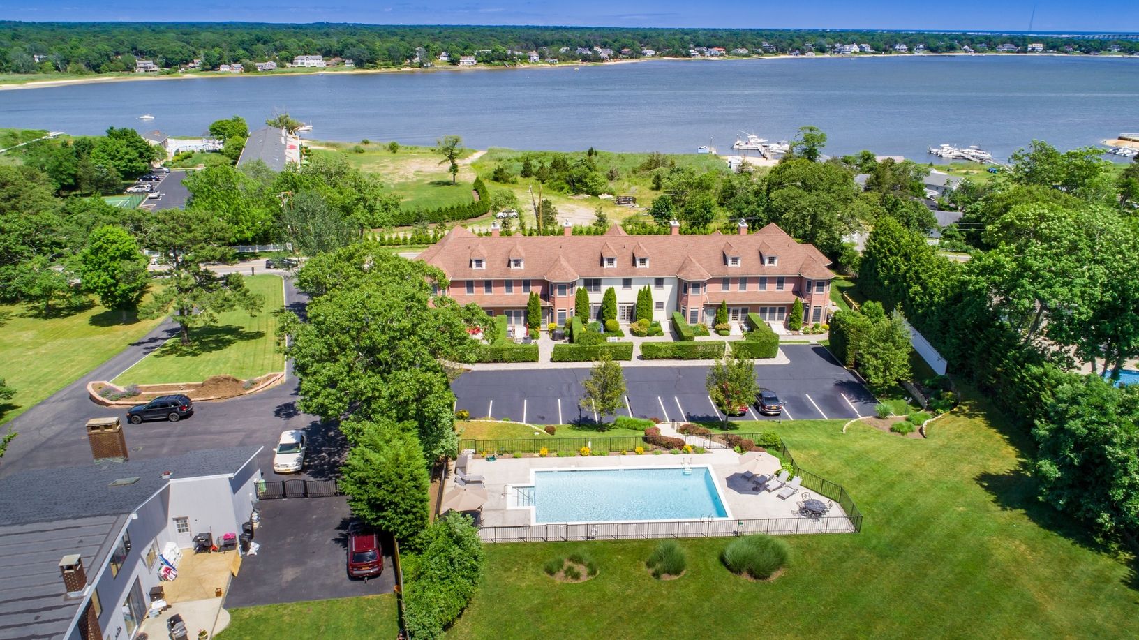 Welcome to Woodland Estates, overlooking Tiana Bay with breathtaking views and stunning gardens. This townhouse was custom built as the model, featuring cove ceilings, crown moldings, central vac, hardwood floors, gas fireplace with marble surround, walk-in closets, upper and lower wraparound decks, private expanded backyard paver patio and 20 x 40 gunite pool. This is the perfect weekend getaway, summer home, or maintenance free year-round re