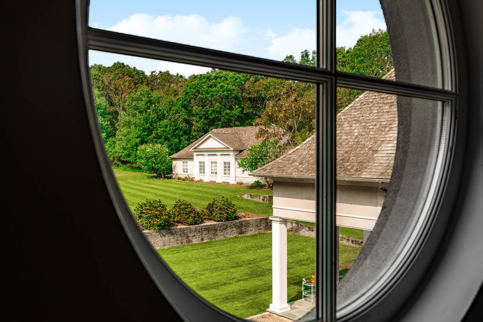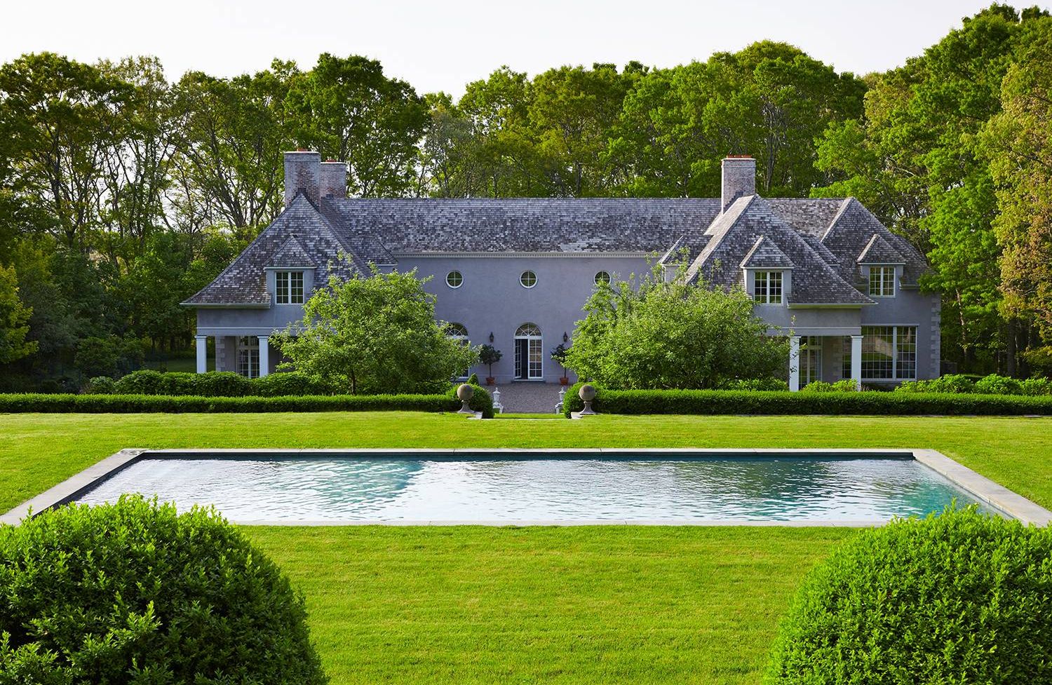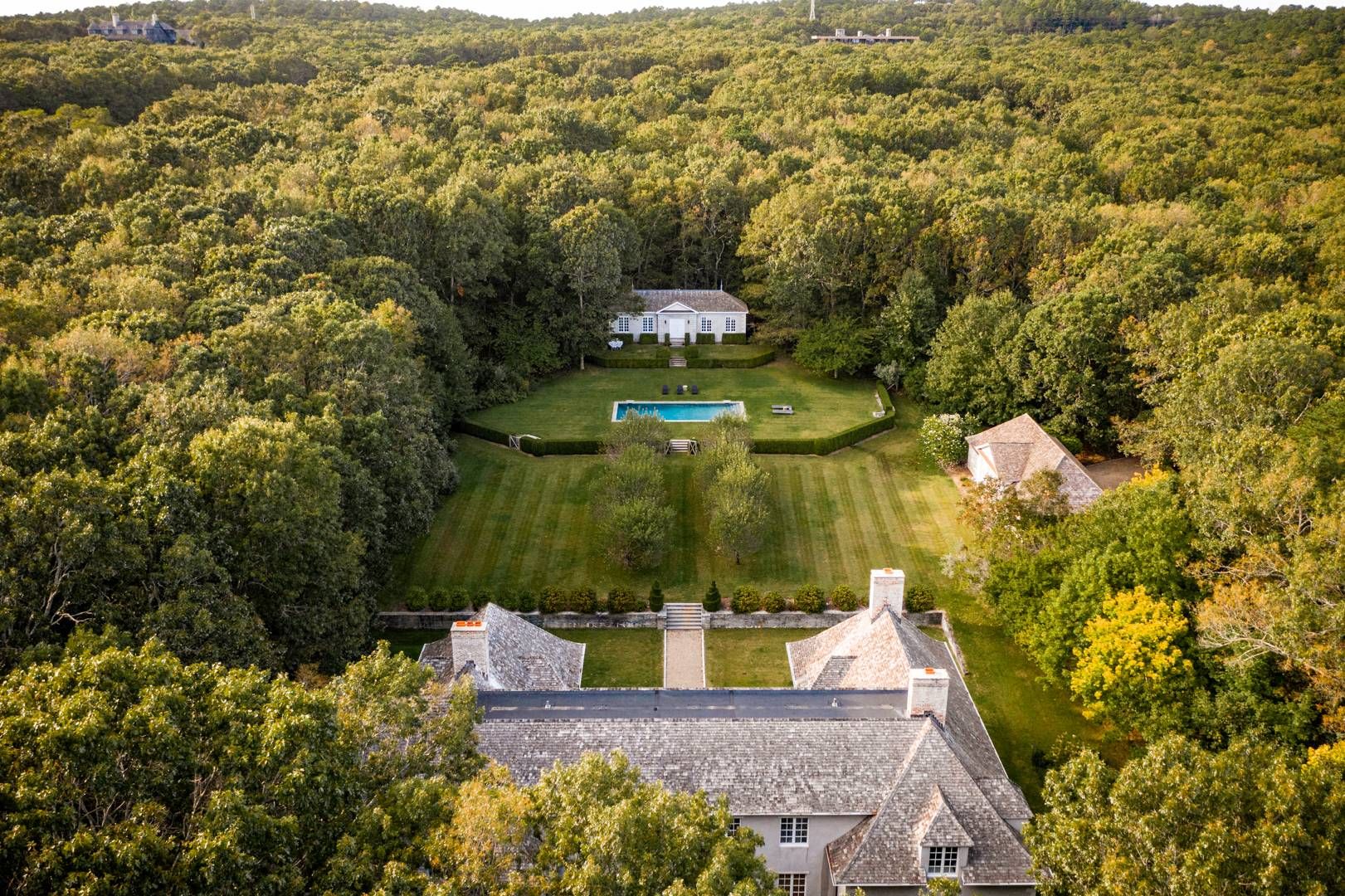 662 & 672 Noyac Path, Water Mill: Inspired by the quintessential countryside estates in the manner of David Adler and Charles Platt, this exquisite classic country compound is one of the most unique and tasteful retreats in the Hamptons. Upon entering the main house, you are immediately welcomed by the soaring ceiling heights and grand scale of the rooms with its many oversize custom mahogany windows. Dazzling imported architectural detail