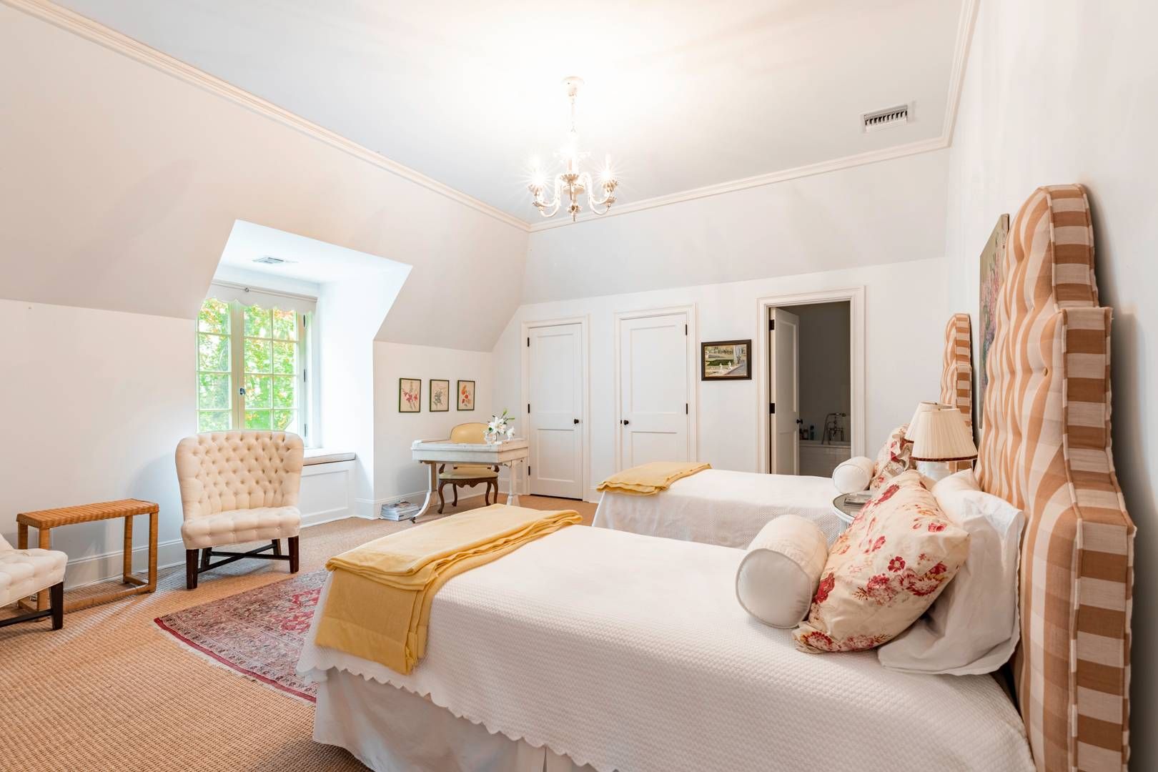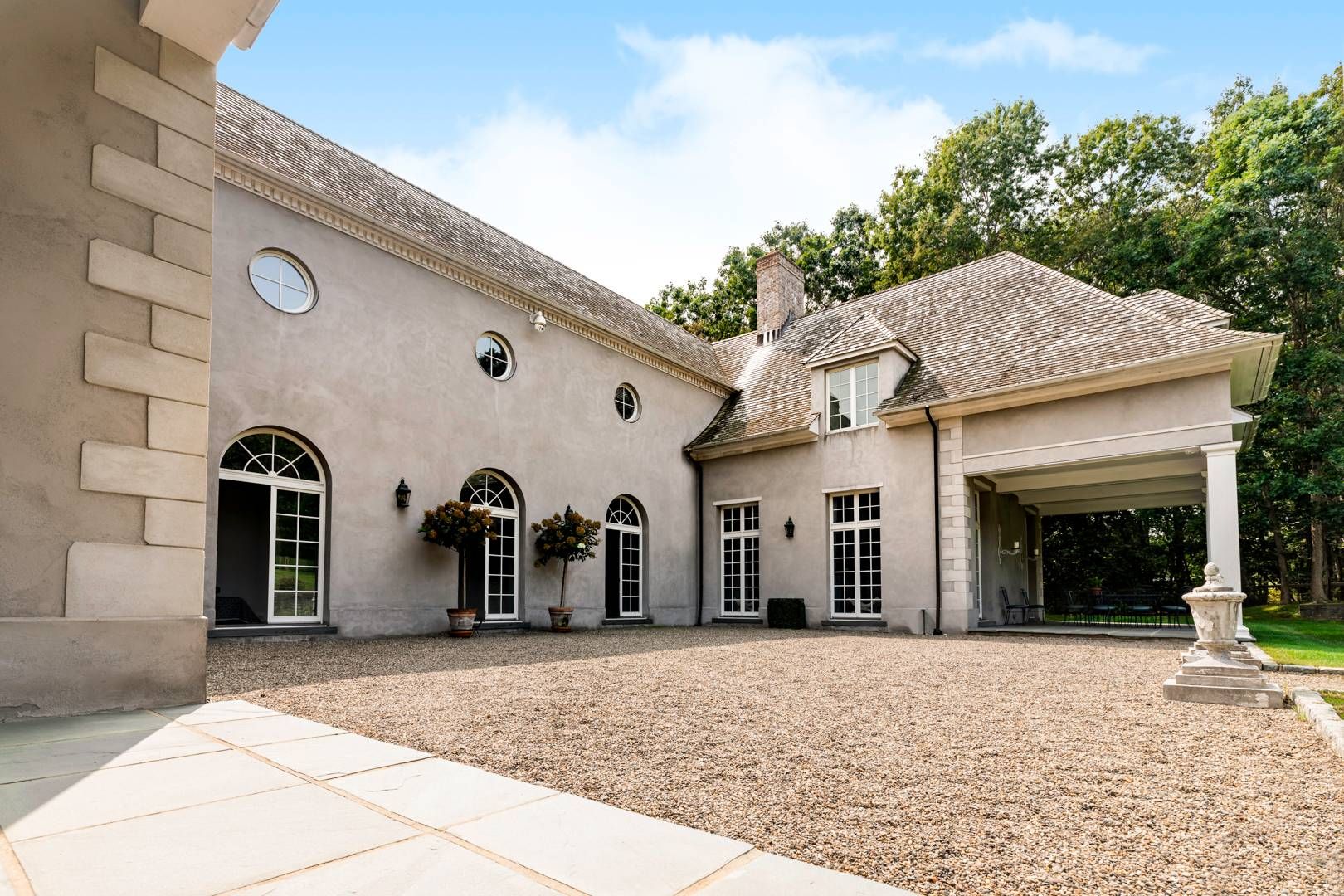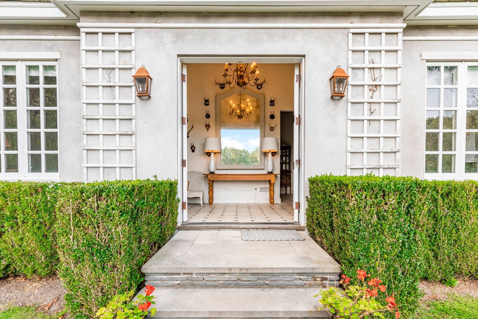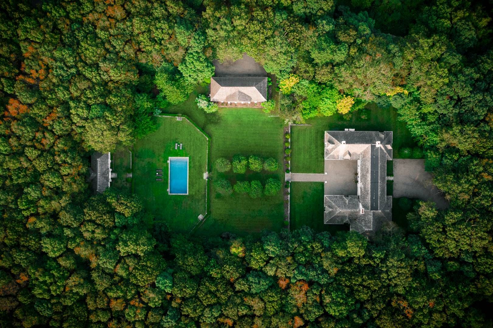 662 & 672 Noyac Path, Water Mill: Inspired by the quintessential countryside estates in the manner of David Adler and Charles Platt, this exquisite classic country compound is one of the most unique and tasteful retreats in the Hamptons. Upon entering the main house, you are immediately welcomed by the soaring ceiling heights and grand scale of the rooms with its many oversize custom mahogany windows. Dazzling imported architectural detail