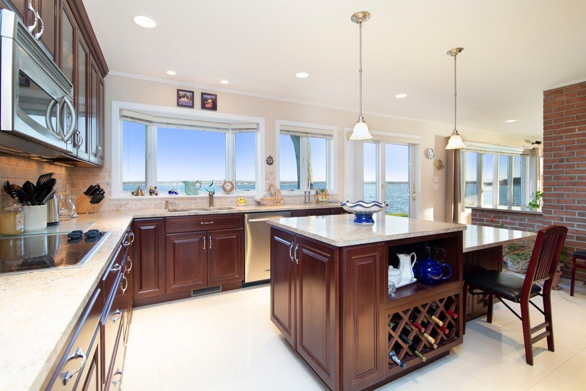 STUNNING, ONE OF A KIND, WATERFRONT, DEEDED DOCK, CORNER PROPERTY ON 3 GORGEOUS ACRES WITH WATER FRONTAGE ON TWO SIDES. SPECIMEN LANDSCAPING, 6 BEDROOMS, 5.5 BATHS, HOUSE WAS EXPANDED AND FULLY UPDATED IN 2000.STATE OF ART KITCHEN WITH CHERRY CABINETS AND MODERN APPLIANCES. HUGE PATIO IN THE BACK, BULKHEAD, ENDLESS VIEWS OF PECONIC BAY!!!