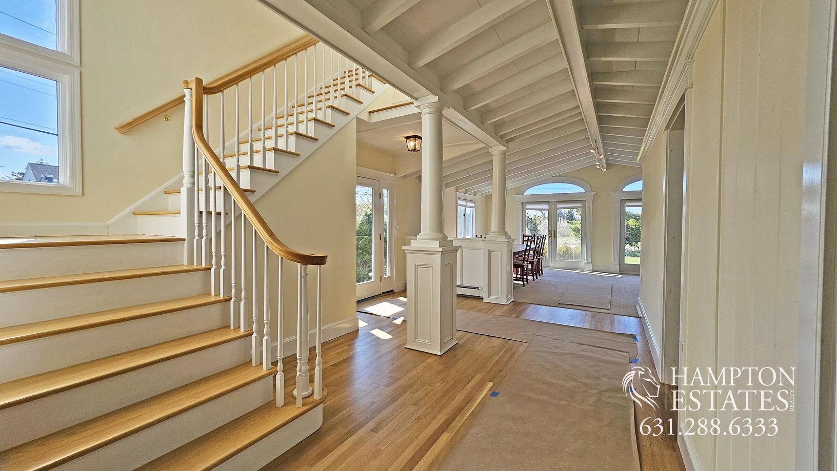 Three bedroom home at the end of Halsey Road with beautiful water views of the bay! Recently renovated with four full baths offering one junior suite on the first floor, extra bonus room on the first floor, den/study, and two additional en-suite bedrooms on the second floor. Detached two car garage and right around the corner from the Westhampton Yacht Club, offering private beach, pool, tennis, and sailing. Town dock available as well. Enjoy