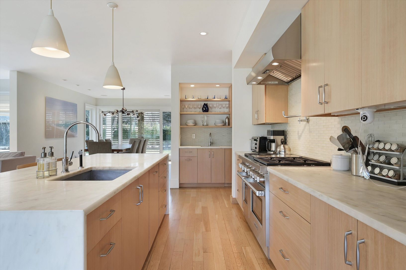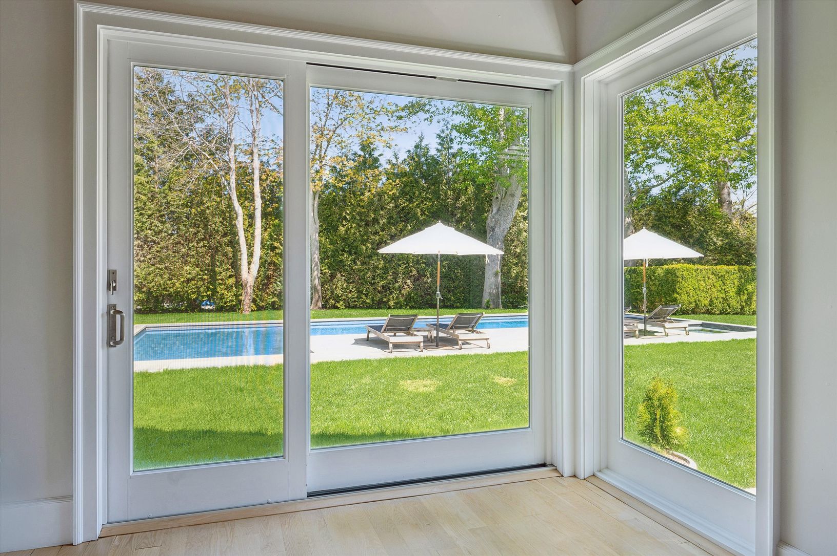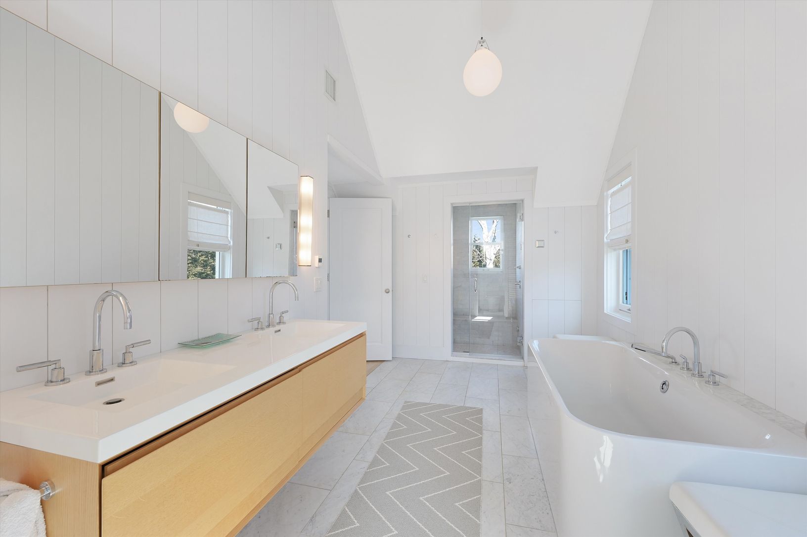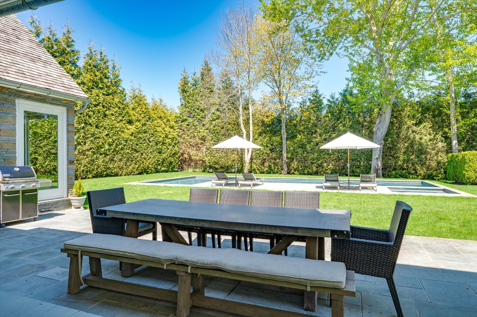 Spend your summer at this high end recently built home in coveted Amagansett South~ offering 5 bedrooms, 5 full, 2 half baths, custom kitchen, great room overlooking 50' pool with spa. Entering this designer decorated home you are greeted by an open floor plan featuring fireplace, butlers pantry area with wine refrigerator, two dining areas- one formal one casual, and ample room for people to relax. Overlooking the pool is the double height va