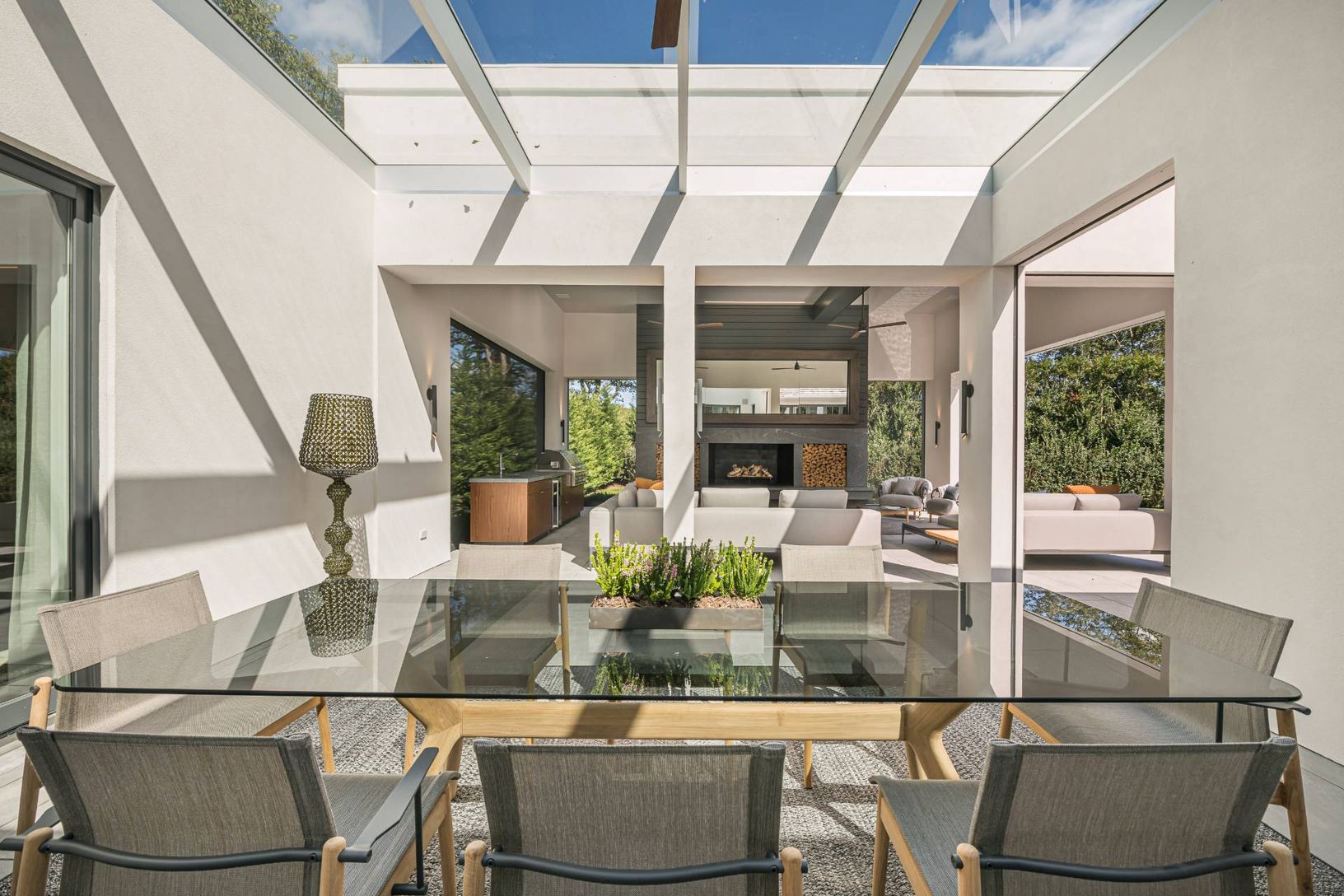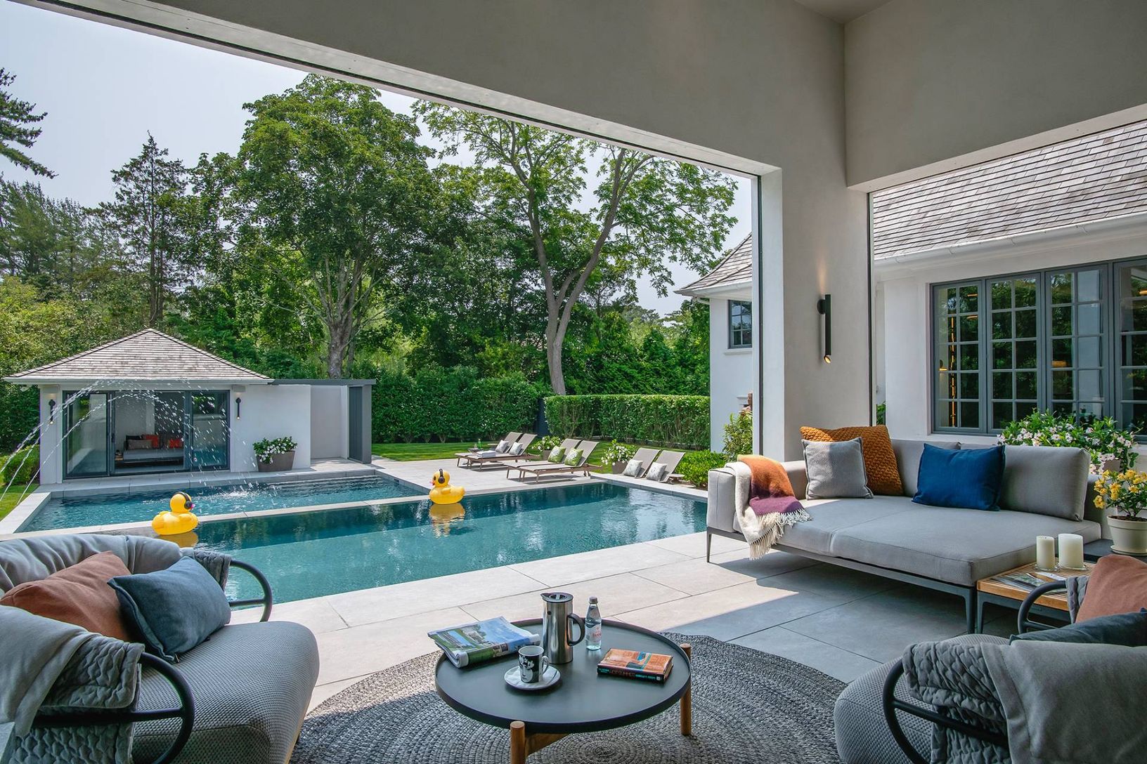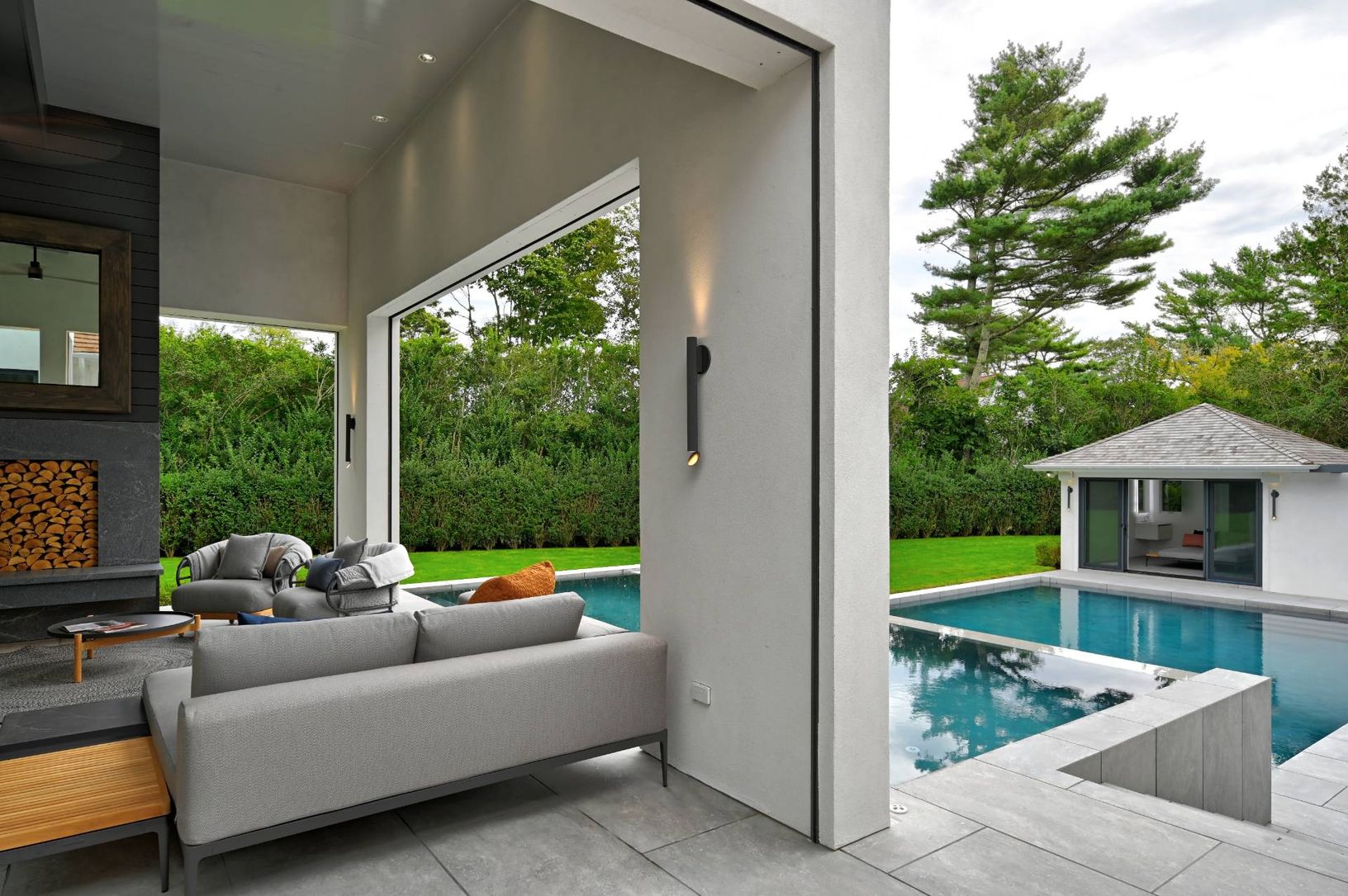 This magnificent world class estate is located in the estate section of East Hampton Village South on highly coveted Hither Lane and just a short stroll to ocean beaches, the Maidstone Club, restaurants, coffee and shopping. A new and original experience, the estate combines the worlds of luxury and lifestyle with high tech innovation and modern design. With an impressive approach through the custom steel entry gates, down a long Allee lined