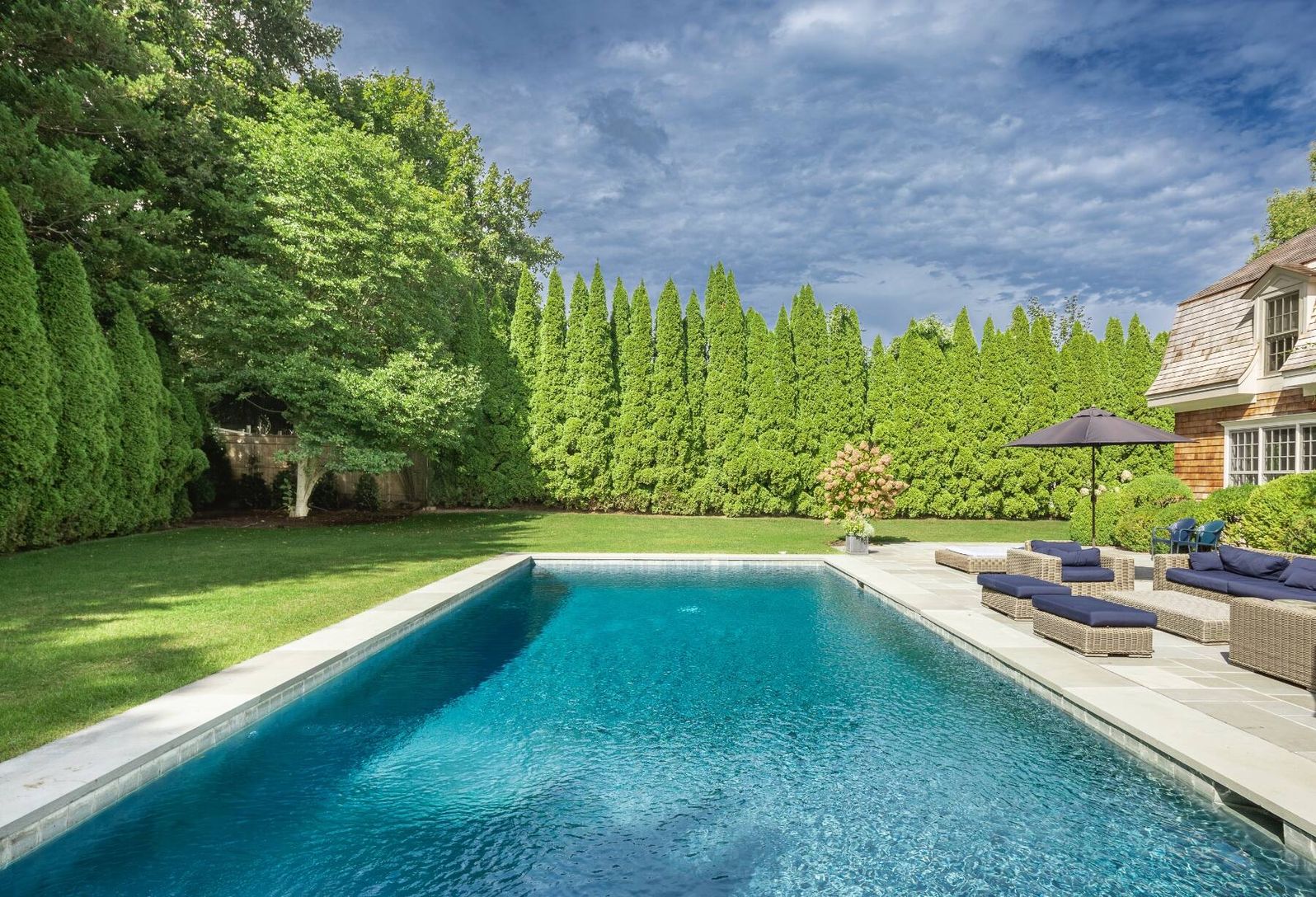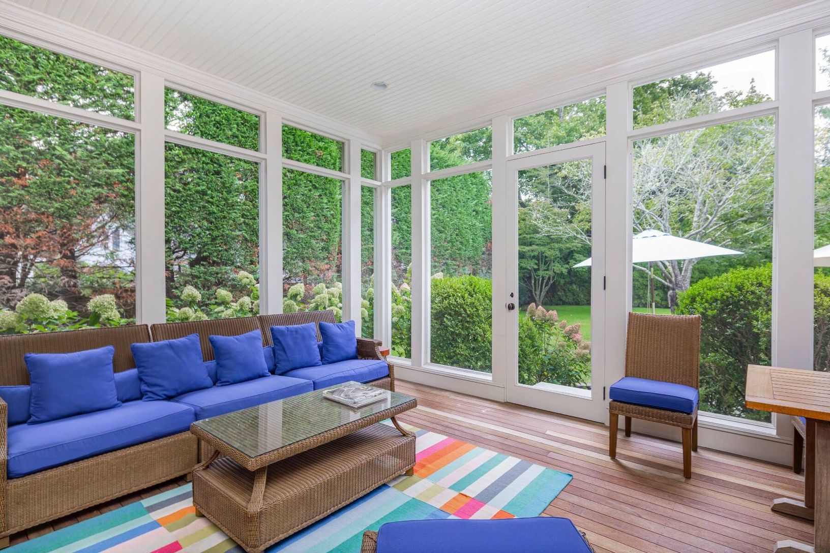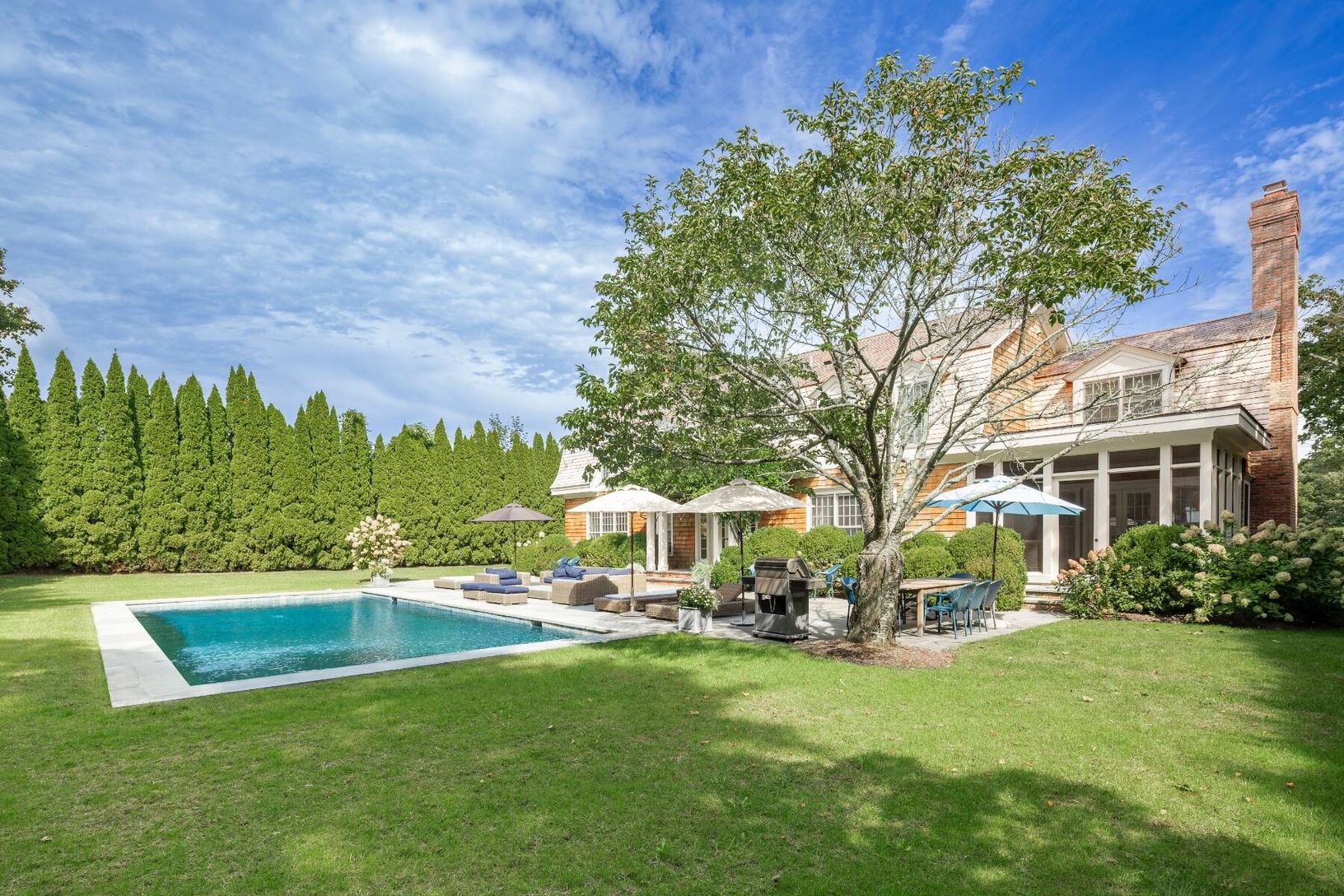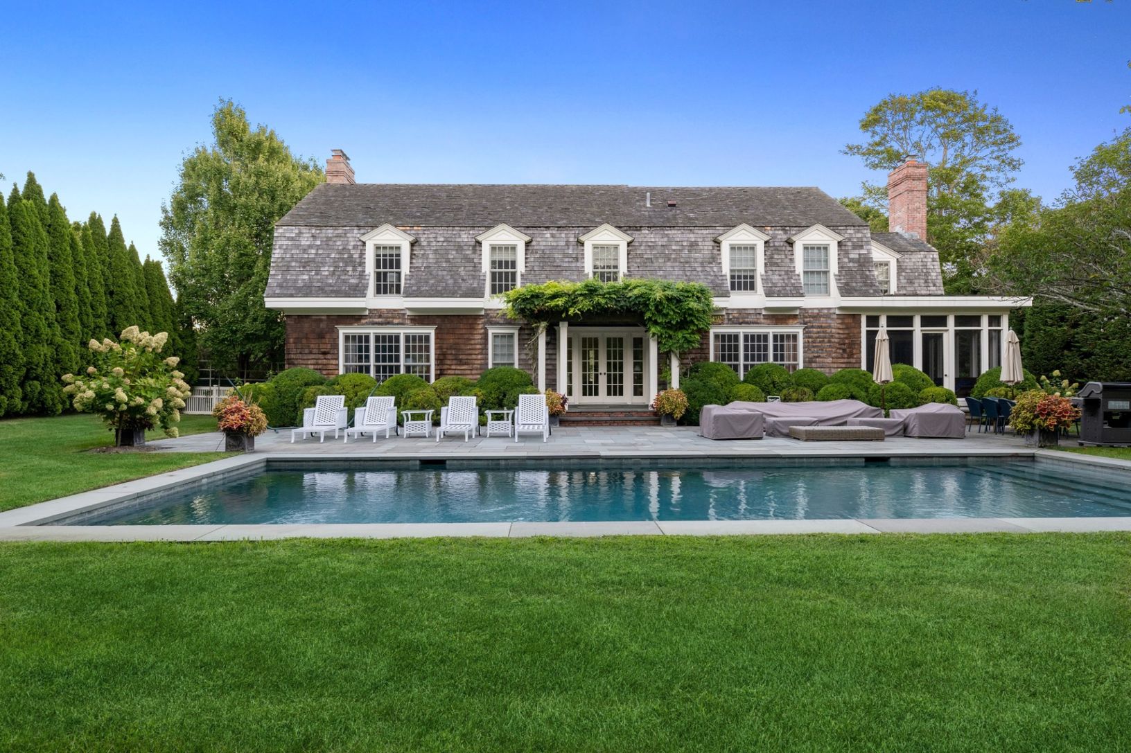 Wonderfully decorated, 7,000 +/- square foot, seven-bedroom, eight-bath Gambrel Traditional is located in the world-famous Southampton Estate Section. A well-considered floor plan, superb finishes and all new elegant decor are combined to provide the ultimate in summer comfort and elegance. A lovely paneled entry leads to a living room, den, custom kitchen with a welcoming sitting area, dining room and screened porch. Upstairs, the generous ma