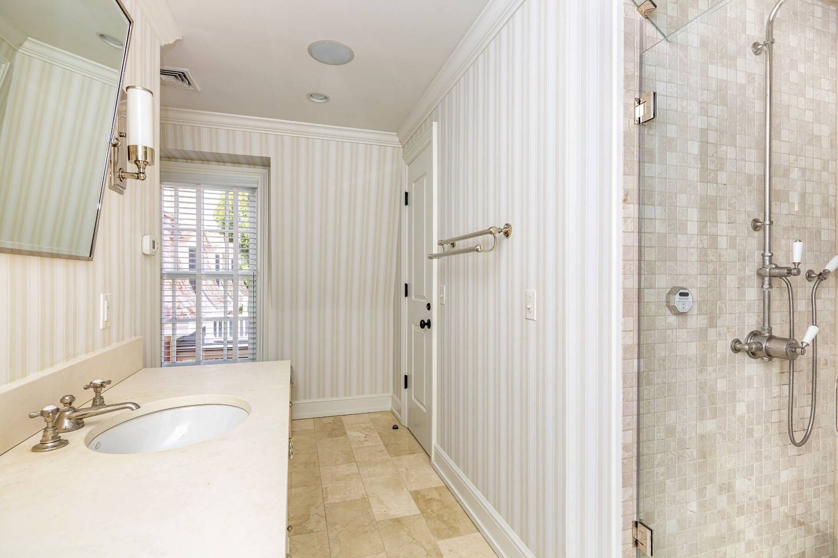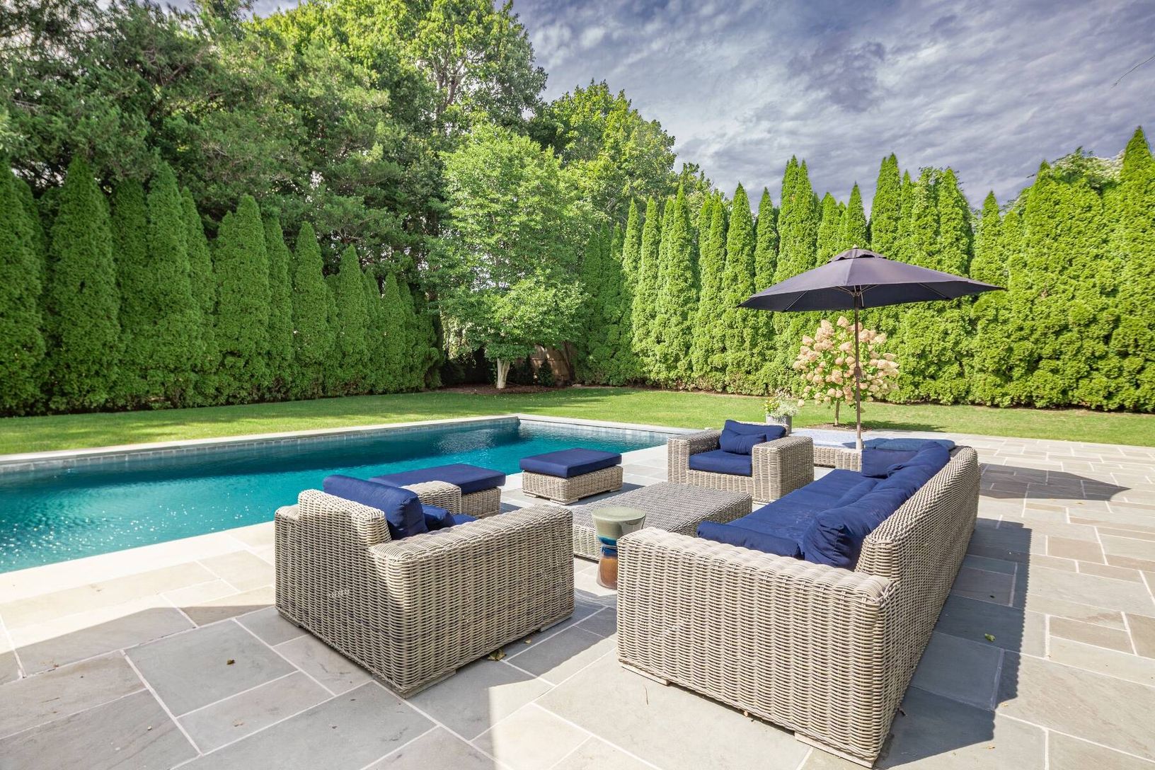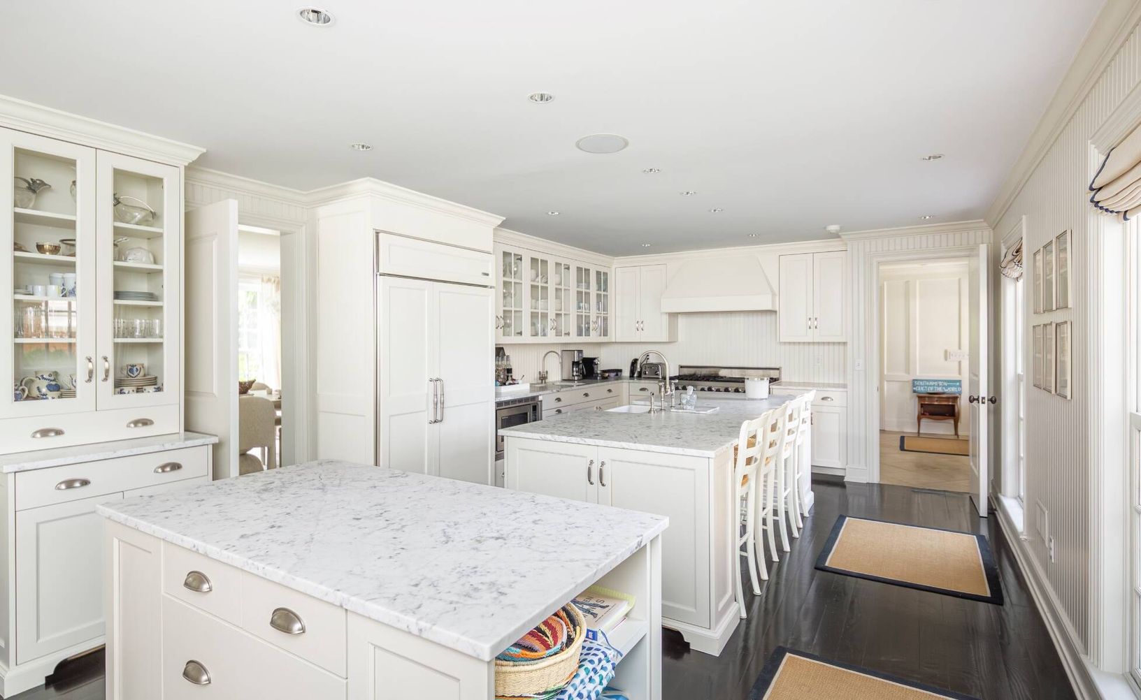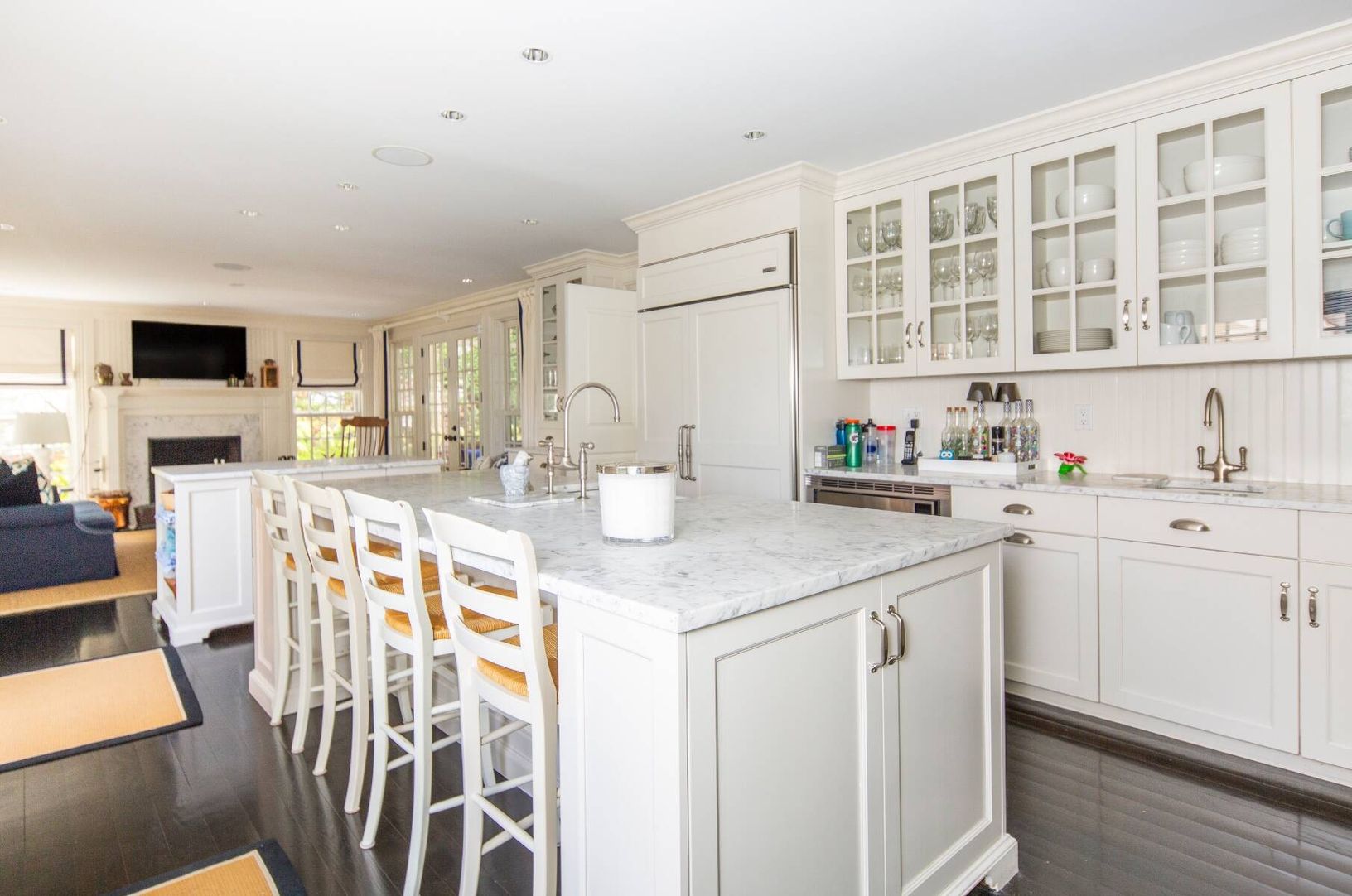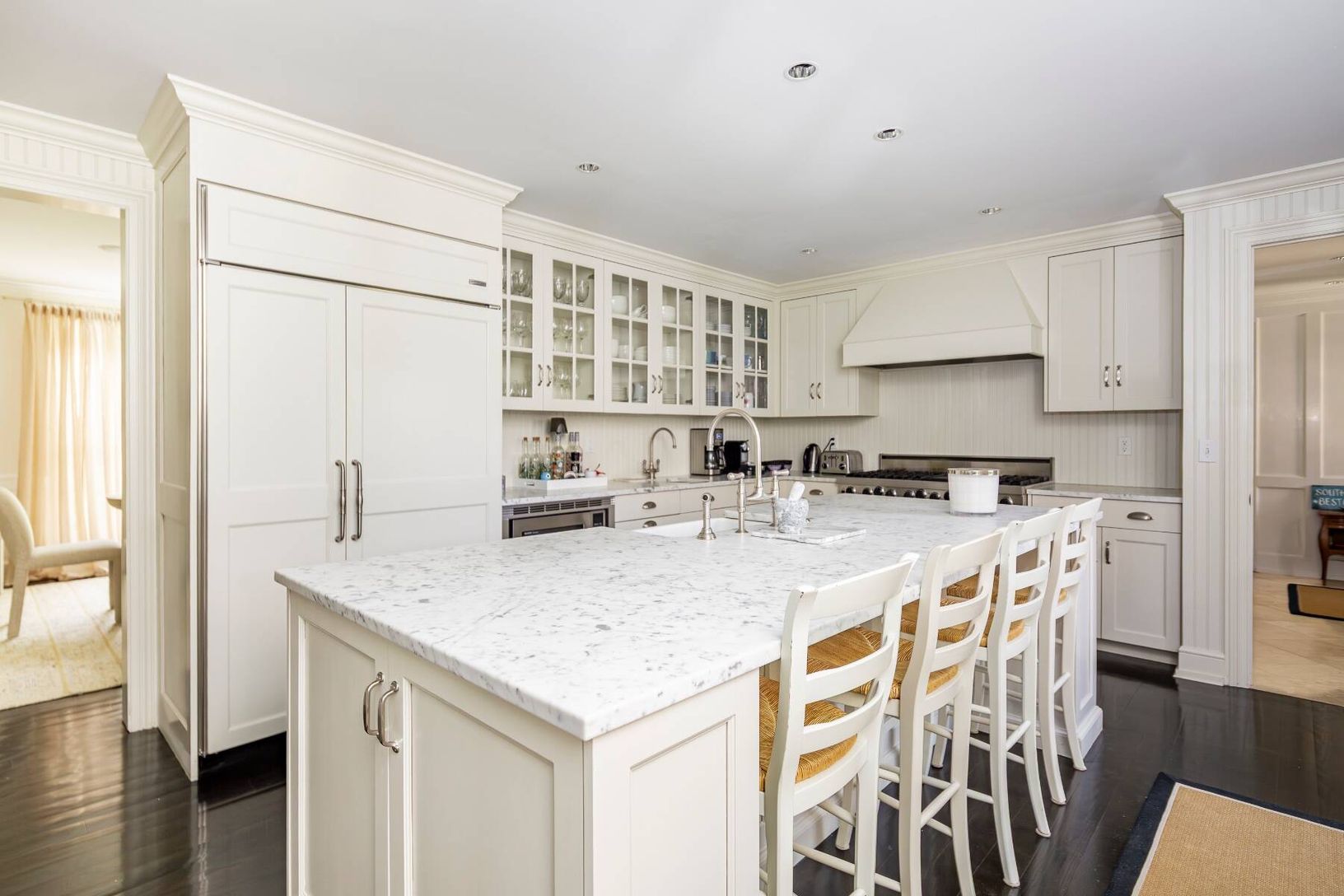 Wonderfully decorated, 7,000 +/- square foot, seven-bedroom, eight-bath Gambrel Traditional is located in the world-famous Southampton Estate Section. A well-considered floor plan, superb finishes and all new elegant decor are combined to provide the ultimate in summer comfort and elegance. A lovely paneled entry leads to a living room, den, custom kitchen with a welcoming sitting area, dining room and screened porch. Upstairs, the generous ma