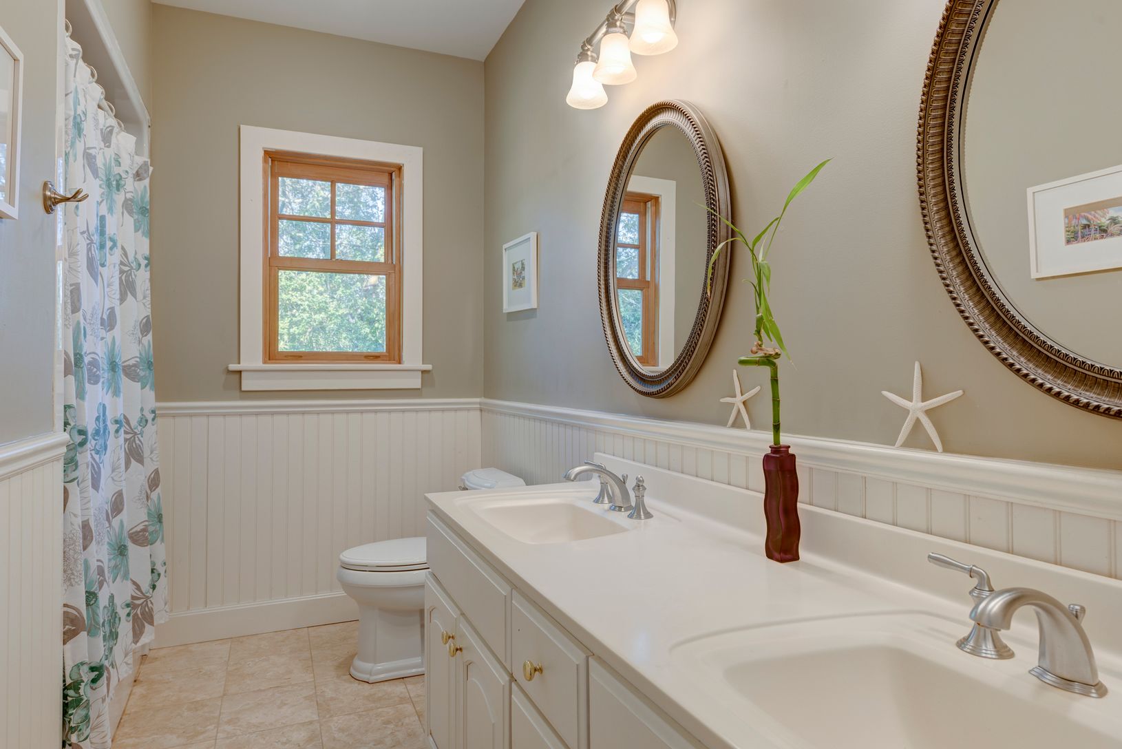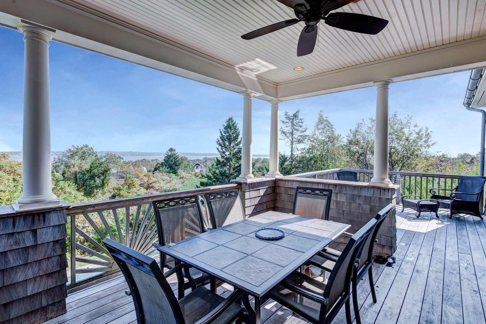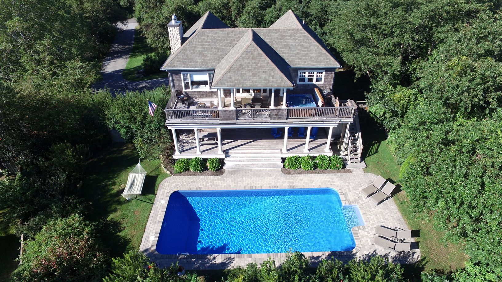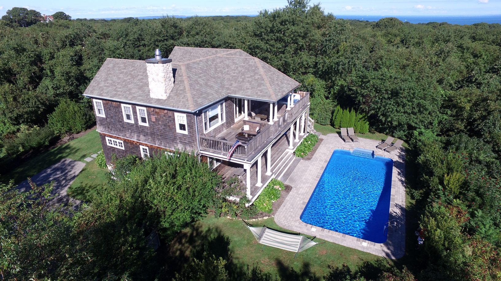 Private lot bordered by county preserve. Relax in this upside down immaculate 5 bedroom, 3 and a half bath traditional home. This home features a gourmet kitchen, family room, comfortable living room with a fireplace, heated pool, and a hot tub on the top deck. Off the back deck, enjoy breath taking panoramic views of the Long Island Sound and Lake Montauk as well as ocean views in the distance. Great family home with an amazing summer rental