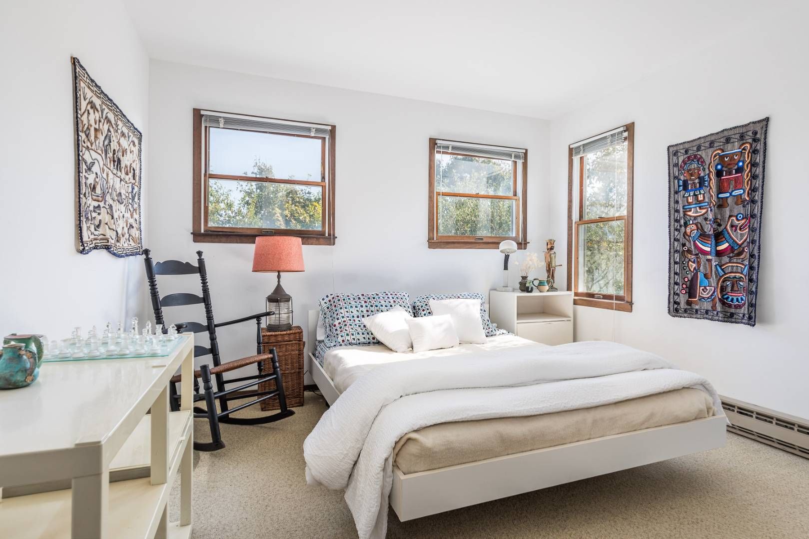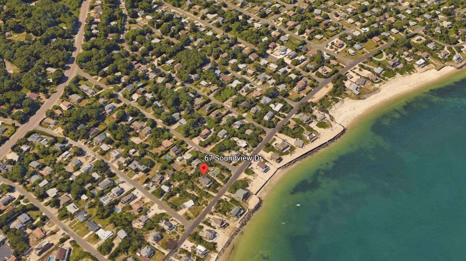 Contemporary 2204 sq ft +/- beach house with water views offers 4 bedrooms and 3 bathrooms. The second story features an open floor plan with an eat-in kitchen, cathedral great room with fireplace, 3 bedrooms, 2 bathrooms and french doors leading out to the deck with views of Block Island Sound. The lower level includes 1 additional bedroom, a bathroom, an office/den, recreation room, laundry, two-car garage, and workroom. Situated on 0.25 acr