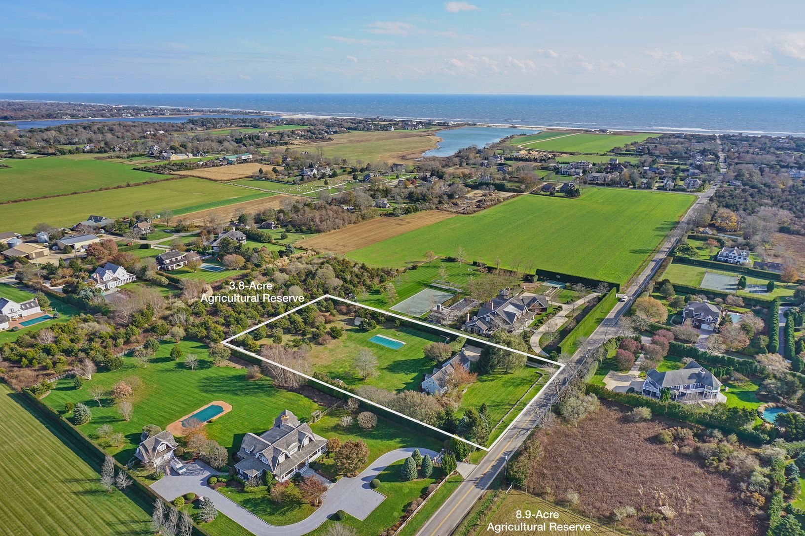 This circa 1880's Barn-style home, completely renovated in 2007, is the perfect retreat. Situated on 2 acres, south of the highway, and bordering a 3.8 acre Agricultural reserve in back and 8.9 acre across the street in one of the most desirable areas of the Hamptons. Styled by published decorator this home features a double-height living room with huge windows and a beautiful stone fireplace, brand new, elegant chef's kitchen and new baths th