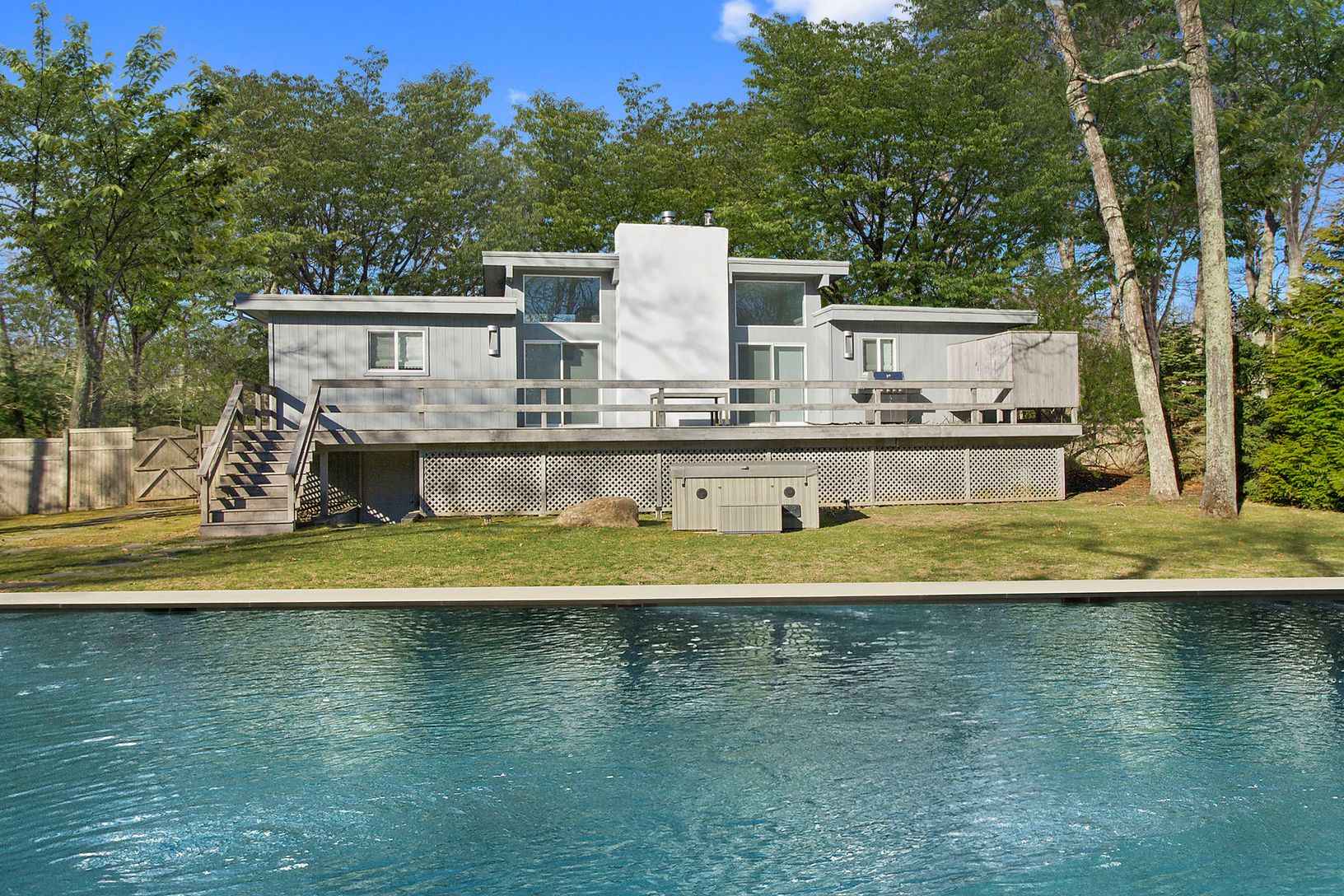 JUST REDUCED!!! PROVEN RENTAL INCOME!! Renovated to perfection, this mint condition Modern home has it all! The one level floor plan features an open design with 3 bedrooms, 2 bathrooms, great room with fireplace and a chefs kitchen. Outside, a deck runs along the length of the back of the house, overlooking the lush landscaping, over-sized heated gunite pool with automated solar cover, hot tub and outdoor shower. Just a short distance to the