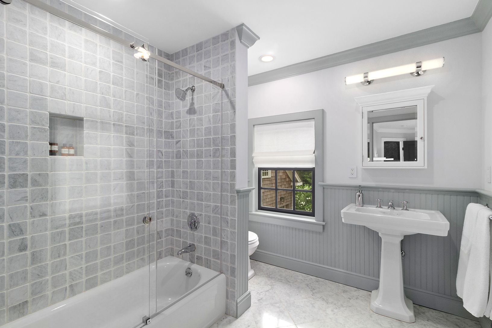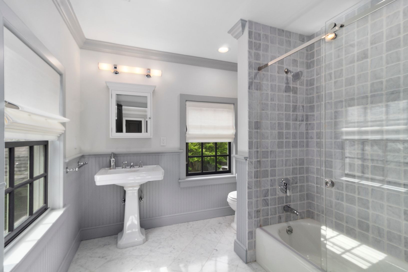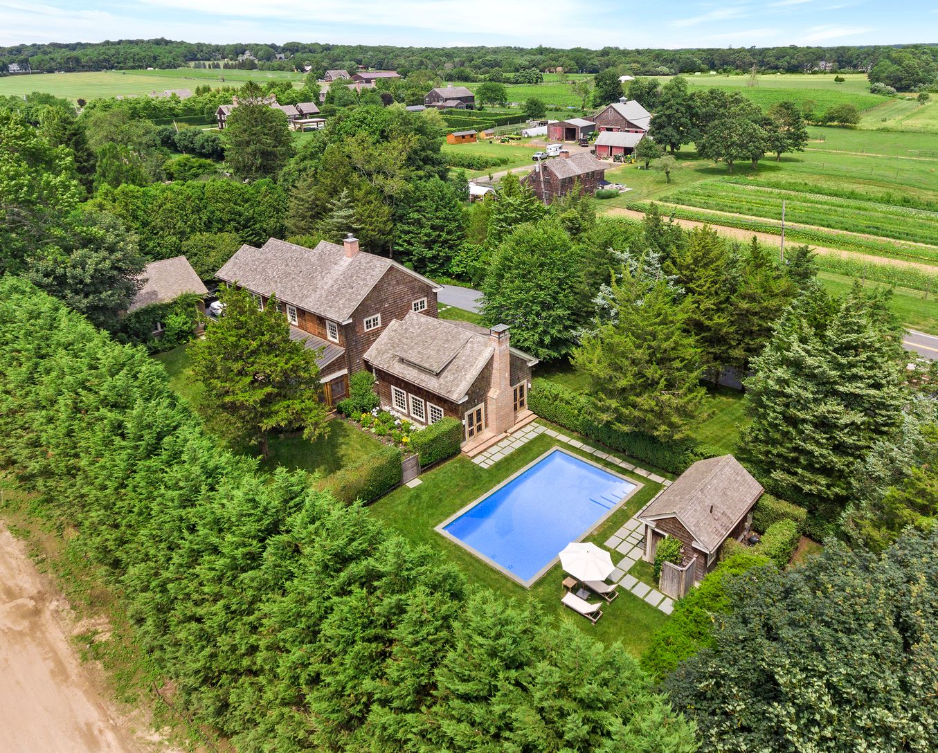 Located just over a mile to the center of Bridgehampton sits this magnificently renovated 4,500 +/- square foot cedar shake transitional on just under an acre. Upon entry into the gracious foyer one is welcomed by carefully curated style and design which highlights the best of both Hamptons traditional and more modern lines and amenities. The first floor features a seamless open layout from the kitchen and dining area to a fabulous double-heig
