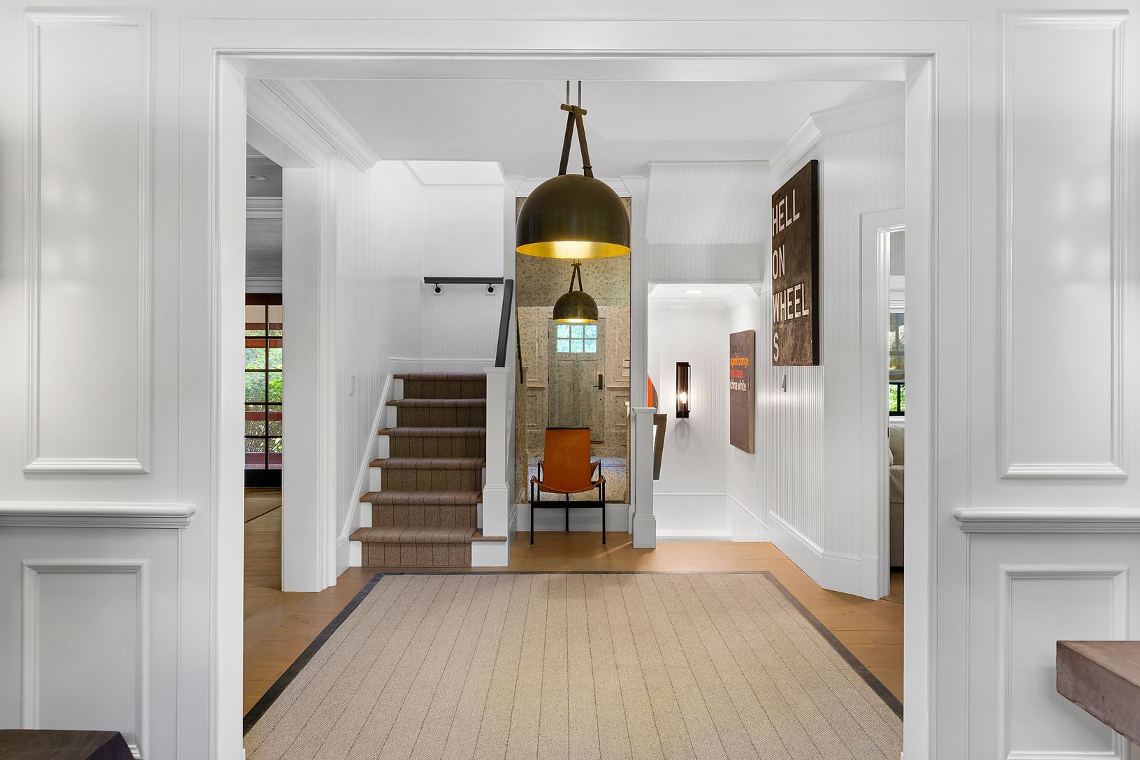 Located just over a mile to the center of Bridgehampton sits this magnificently renovated 4500 square foot cedar shake transitional on just under an acre. Upon entry into the gracious foyer one is welcomed by carefully curated style and design which highlights the best of both Hamptons traditional and more modern lines and amenities. The first floor features a seamless open layout from the kitchen and dining area to a fabulous double height li
