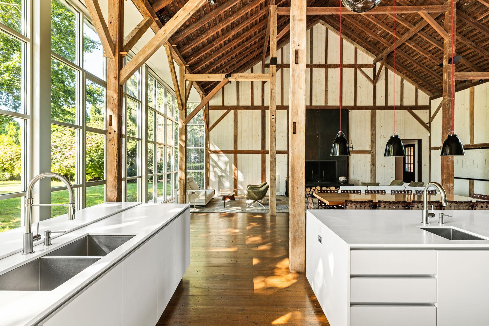 Originally a 300-year-old barn, the residence was raised, expanded, and gut-renovated in 2011, with a fresh repaint in 2025. Impeccably maintained and seamlessly outfitted with smart-home automation, upgraded systems, and modern appliances, the home now spans 10,387 SF+/- across 3 levels, offering 7 bedrooms and 6 full and 1 half bathrooms. Walls of glass rise alongside original beams, creating interiors that are both architectural and light f