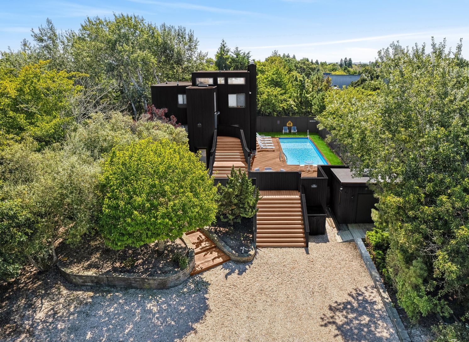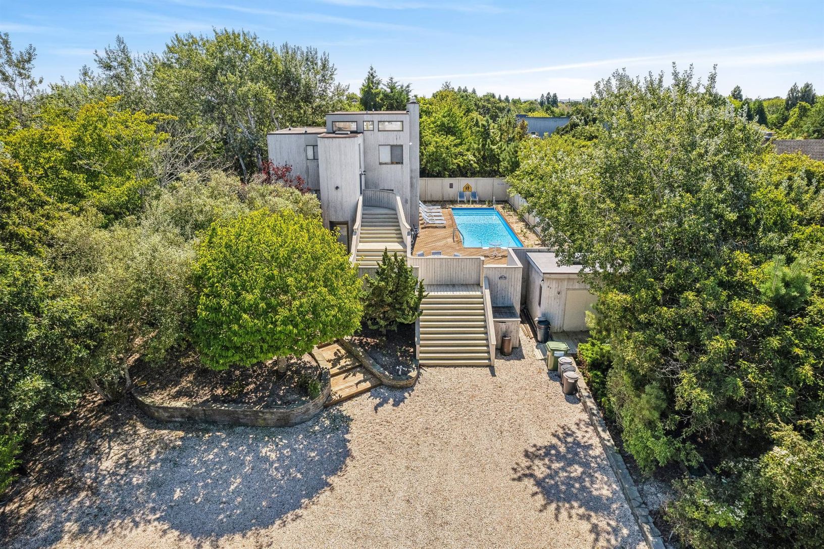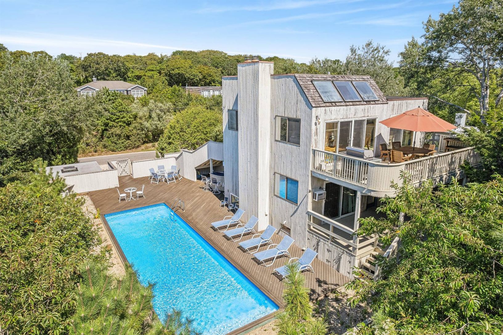 PRICE REDUCTION: LOCATION! LOCATION! IMAGINATION! The just a short stroll to an ocean beach listing you've been waiting for.. Renovate your affordable dream house in the Dunes of Amagansett with a 40' X 12' pool set in a large deck with built-in bar for entertaining. Entire top floor is for entertaining with it's open light-filled great room with high ceilings, fireplace (#1 of 2) and walls of glass sliders that lead onto a good-sized balcony
