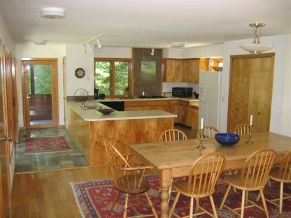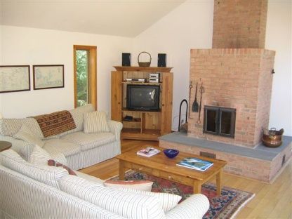 All of the tranquility that a country house can offer, and much, much more. Close to the village shops, restaurants and beaches, this well-planned post modern offers an ideal layout. Two master suites, plus two guest rooms and baths. The large great room is an open floor plan consisting of kitchen, dining area and living room with a brick fireplace. A perfect setting on 2.4 beautifully treed acres - great for those get-away weekends and