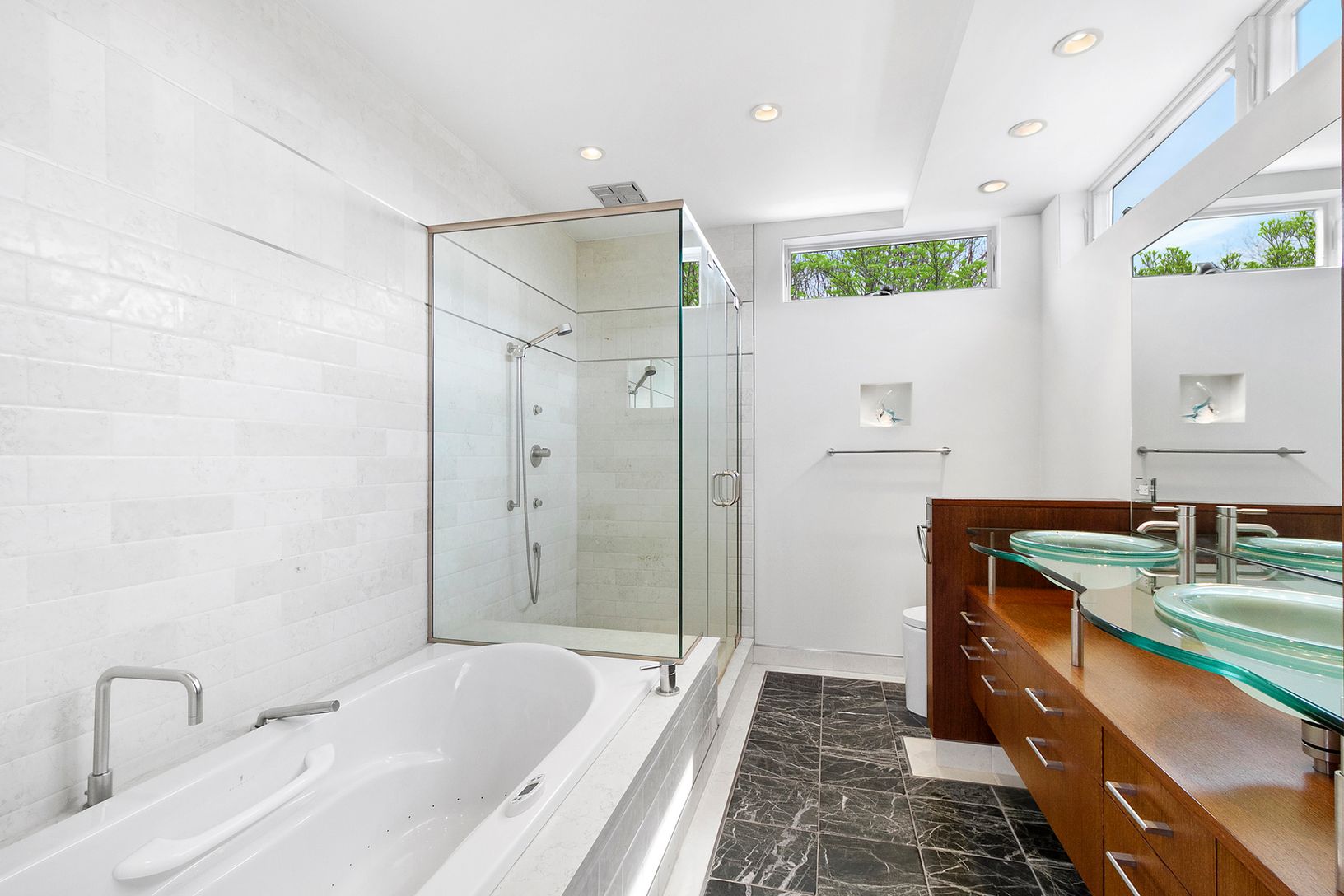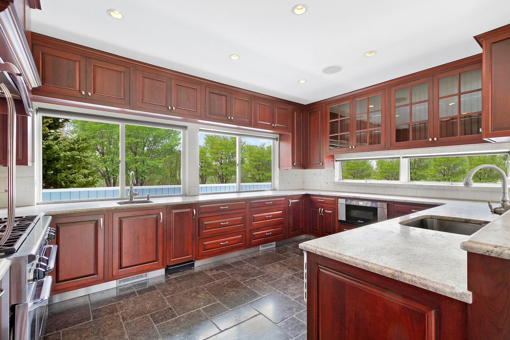This Beautiful 6 Bedroom 3000 square foot home offers privacy and tranquility. Sitting on 1 acre on a quiet cul-de-sac this recently renovated home is meant to be enjoyed. The entire top floor is a grand master suite with a fireplace and Private deck. The spacious Master Bath has heated floors, Jacuzzi tub accented by beautiful Mahogany and Marble finishes. The main level has a beautifully finished kitchen with custom cabinetry and tile backsp