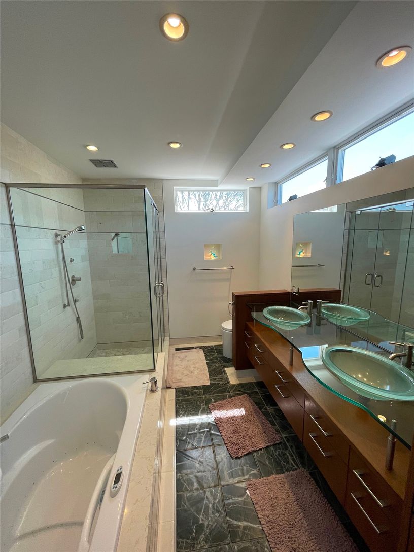 This stunning property offers a luxurious and private setting with an open floor plan that spreads over three levels. With six spacious bedrooms and four modern baths, this house is perfect for accommodating large groups of family or friends. The interior design is impeccable, featuring high ceilings, hardwood floors, an