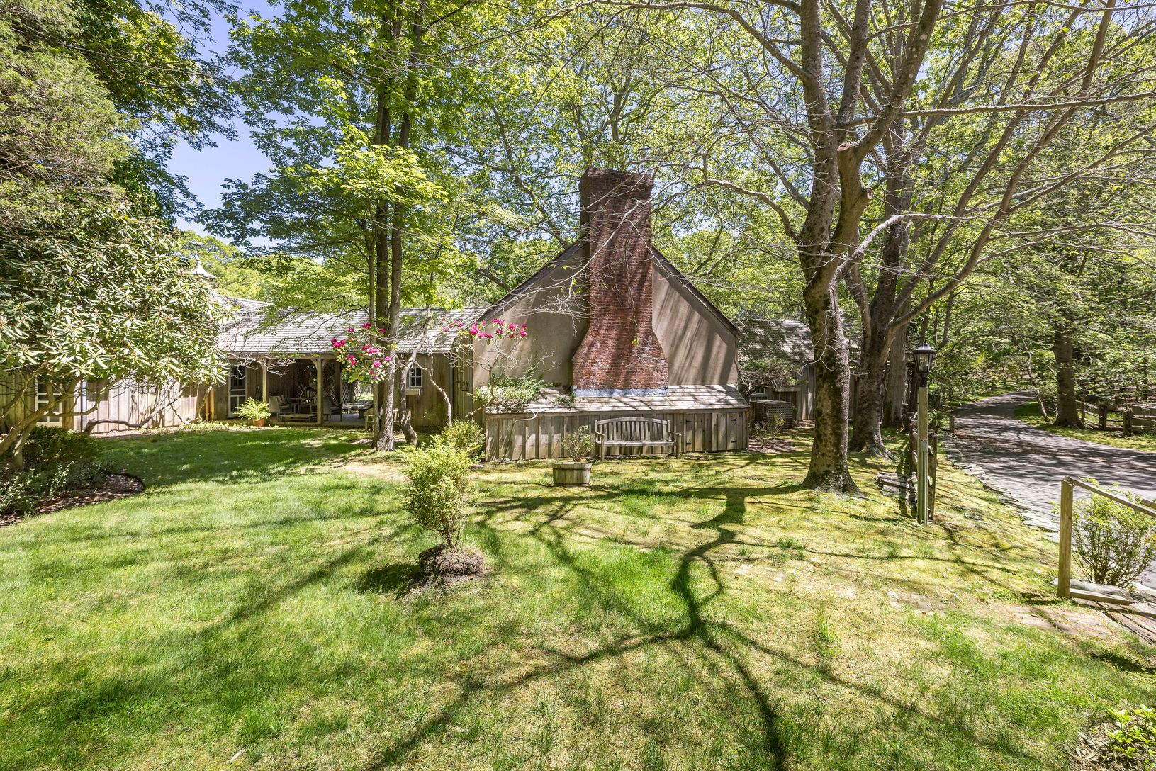 Welcome to one of the last large acreage estates in Amagansett. Tucked away past open farmland and horse pastures, down a secluded private driveway through mature beech trees, you'll discover 20 acres of serene beauty. Upon arrival, relaxation takes over, and you are transported back in time, appreciating a slower style of living. The classic house, designed by renowned architect Alfred A. Scheffer, is perfectly sited to take advantage of the
