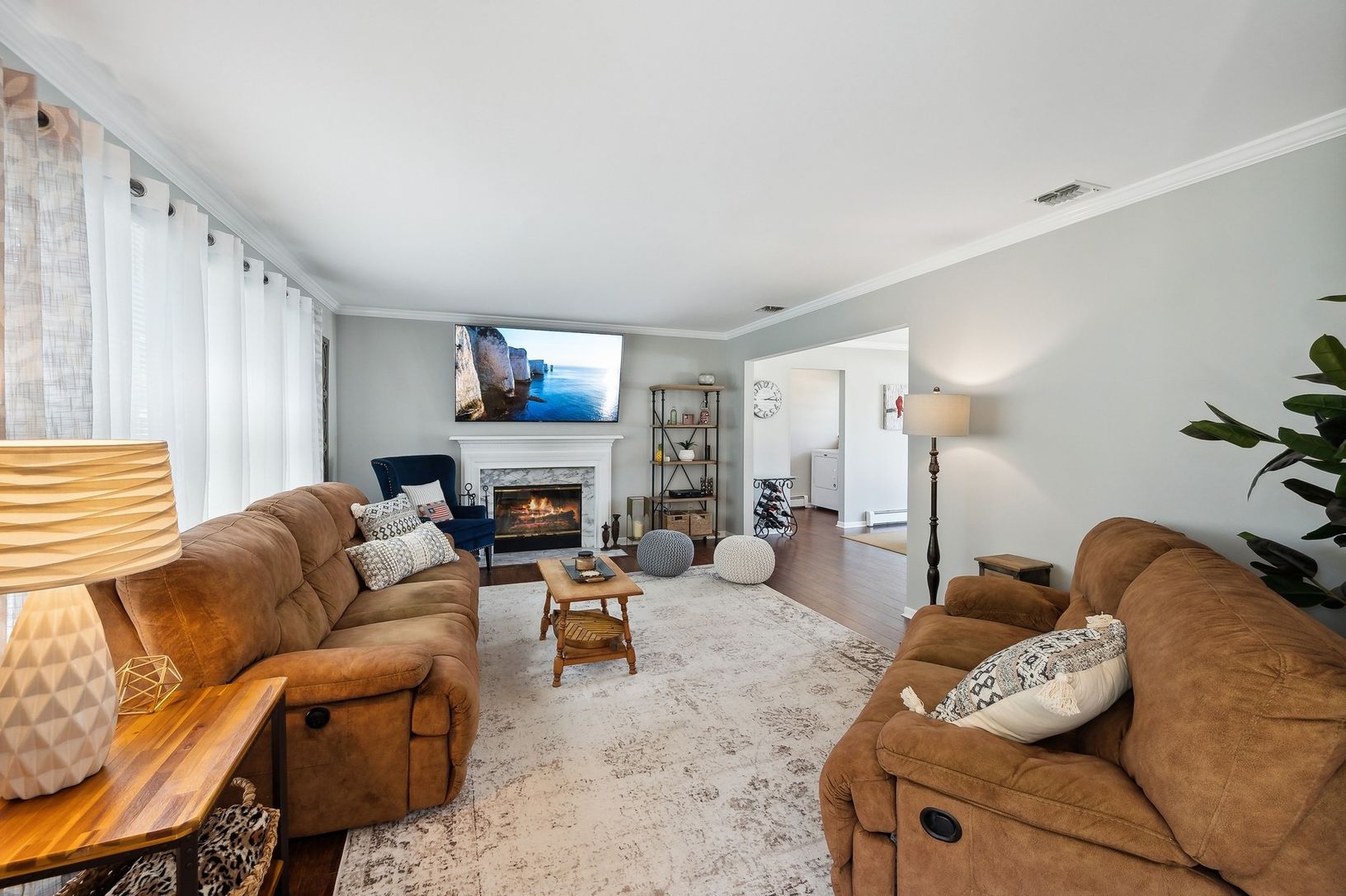 A Pristine Ranch Style Home in the Village of Jamesport on Our Beloved North Fork. A Bright, Open and Inviting Home. Situated on a Large Corner Property with .61 of an Acre and Room for Pool. The Home has Over 1500 Sq Ft of Living Space with 3 Bedrooms and 2.5 Baths. Updated Kitchen and Appliances, Flooring and Central Air. Crown Moldings throughout Main Living and Dining Areas. A Full Basement Featuring Bonus Entertainment and Storage Space.