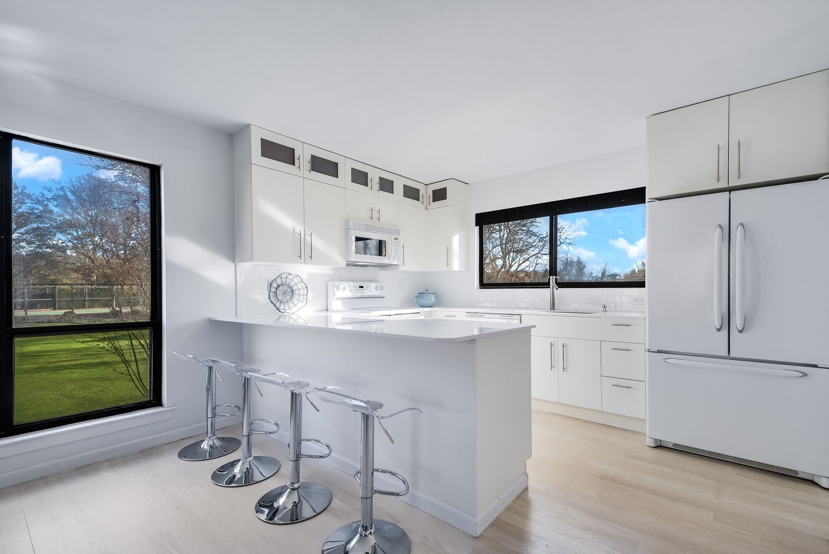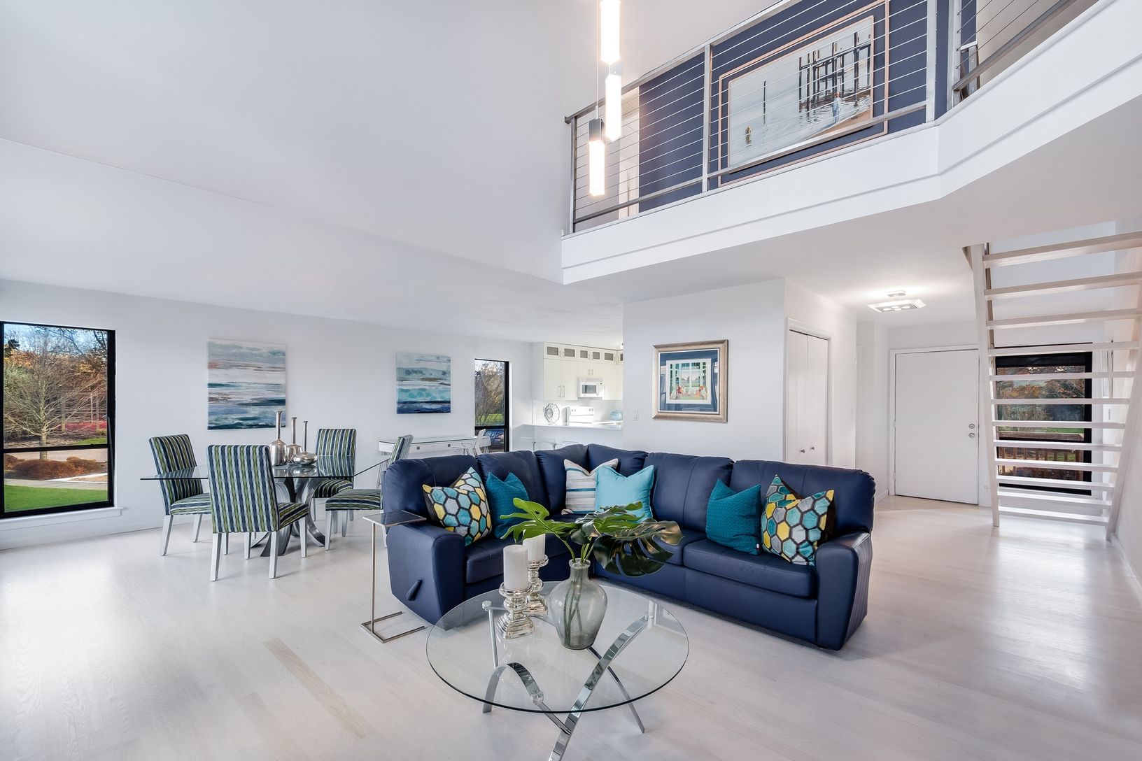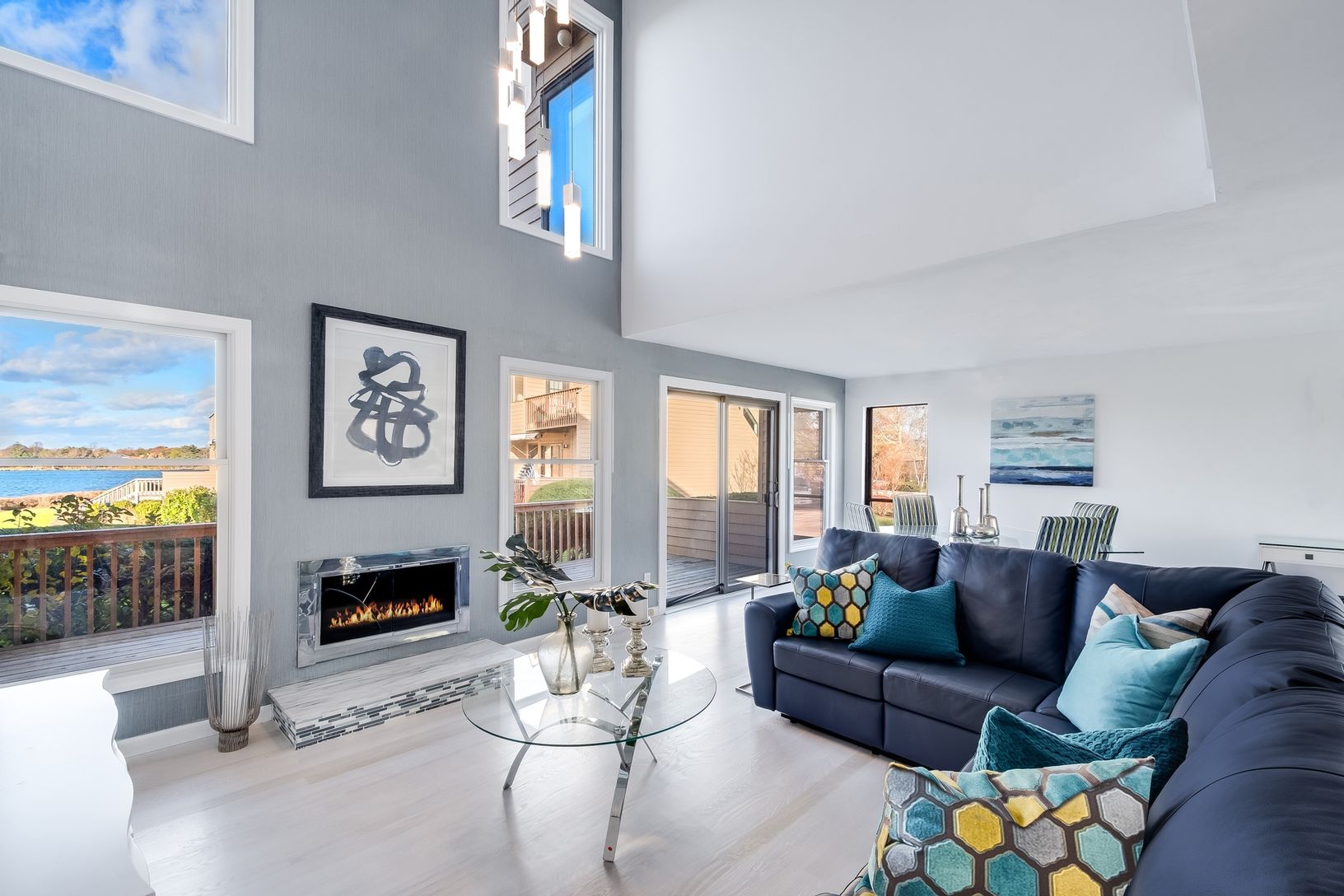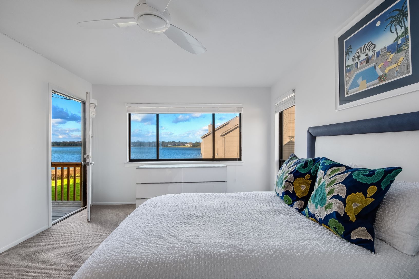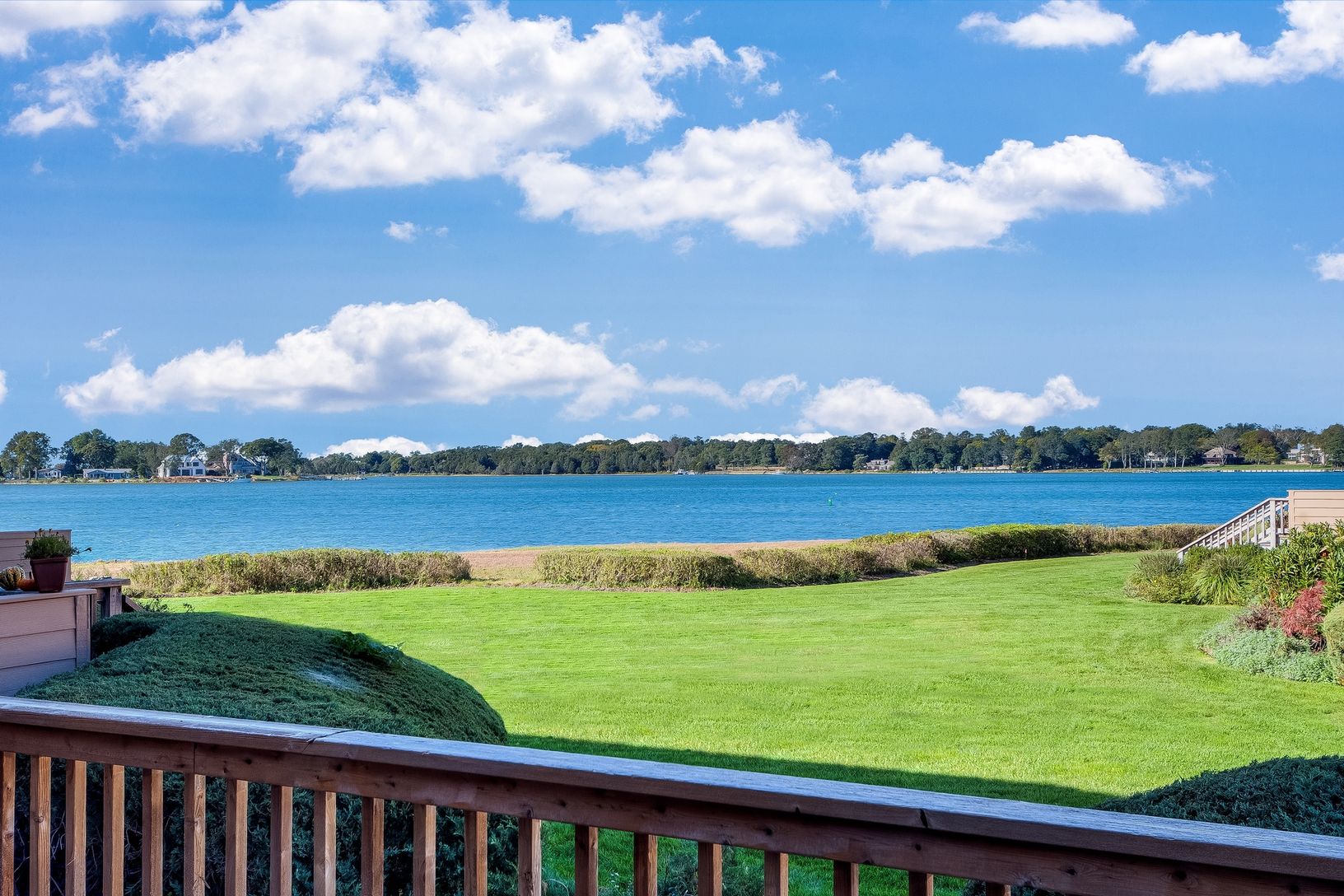 Waterfront townhouse residence featuring unrivaled views of Sag Harbor Cove and beyond. This newly renovated end-unit in The Villas at Sag Harbor offers a bright open-style floor plan with double-height living room, dining area, kitchen, and powder room. Expansive decking extends off the first level with direct views to rolling lawns and a sandy beach. The second level features a master bedroom suite with private bathroom and balcony as well