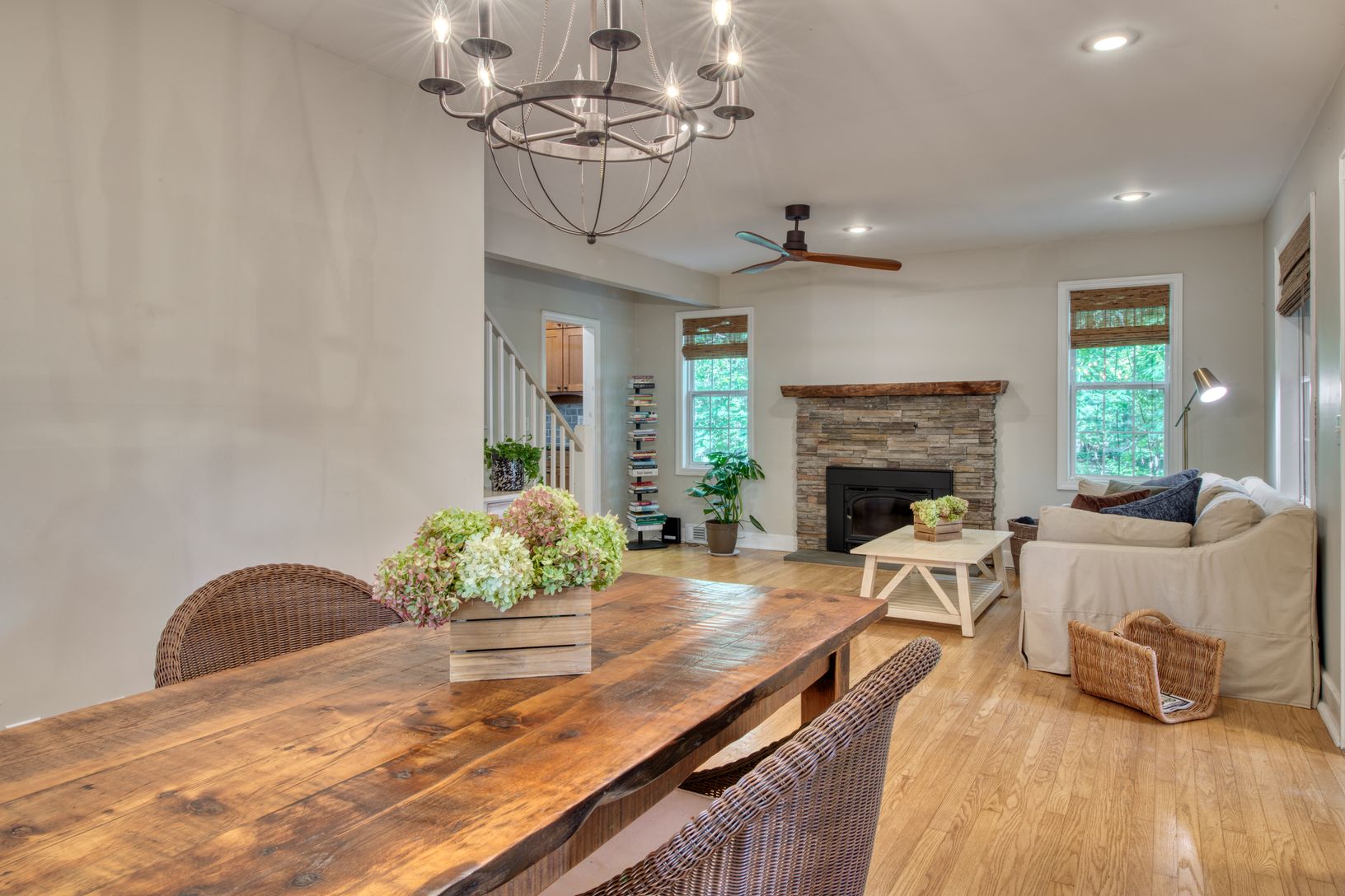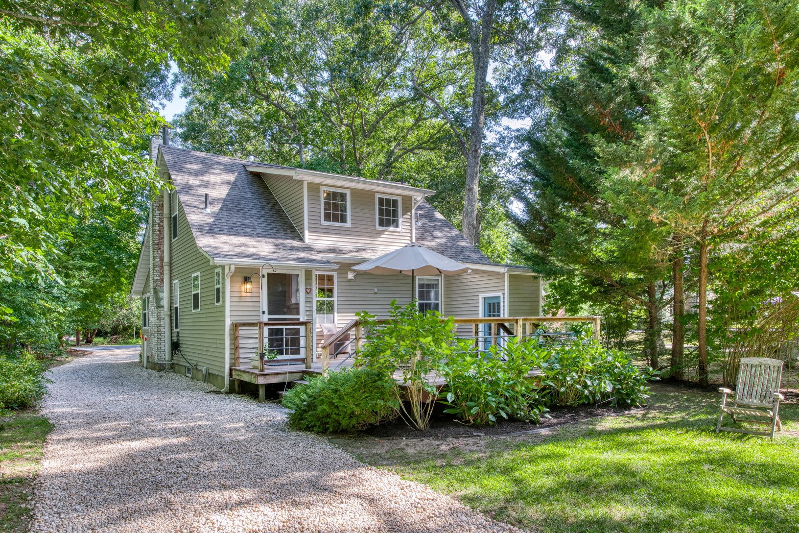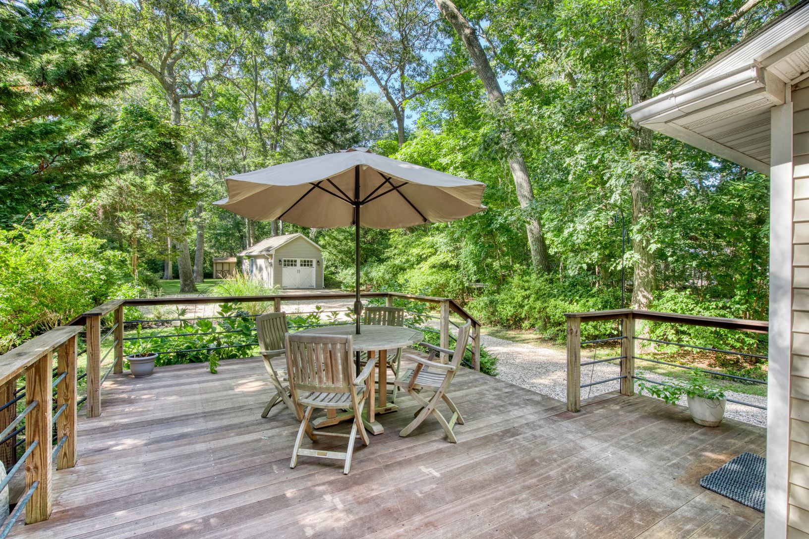 A perfect getaway setting for this renovated 3 bedroom 2 bath home with a detached garage nestled on a lush natural setting with winter water views directly across from Peconic Bay. The property has 2 deeded legal easements to your own water access, landing, boat mooring and beach, for indulging in the pleasures of summer fun, entertaining on the mahogany deck and yard with a public beach and yacht club down the street. Enjoy the fall and wint