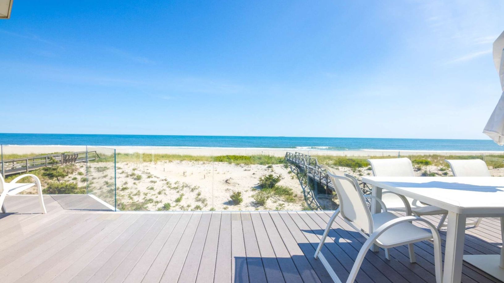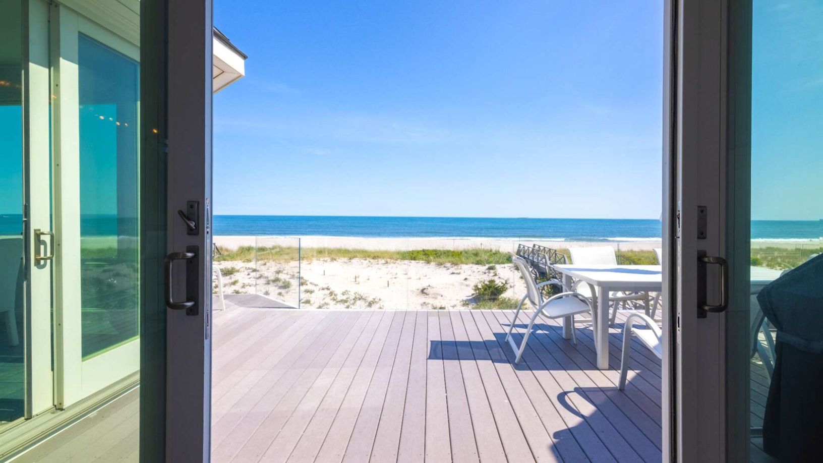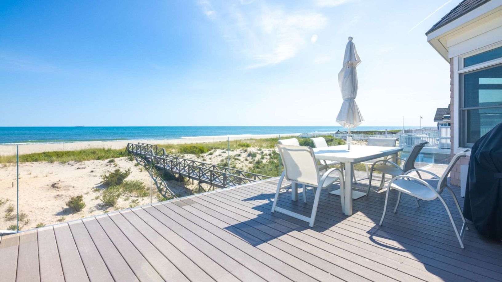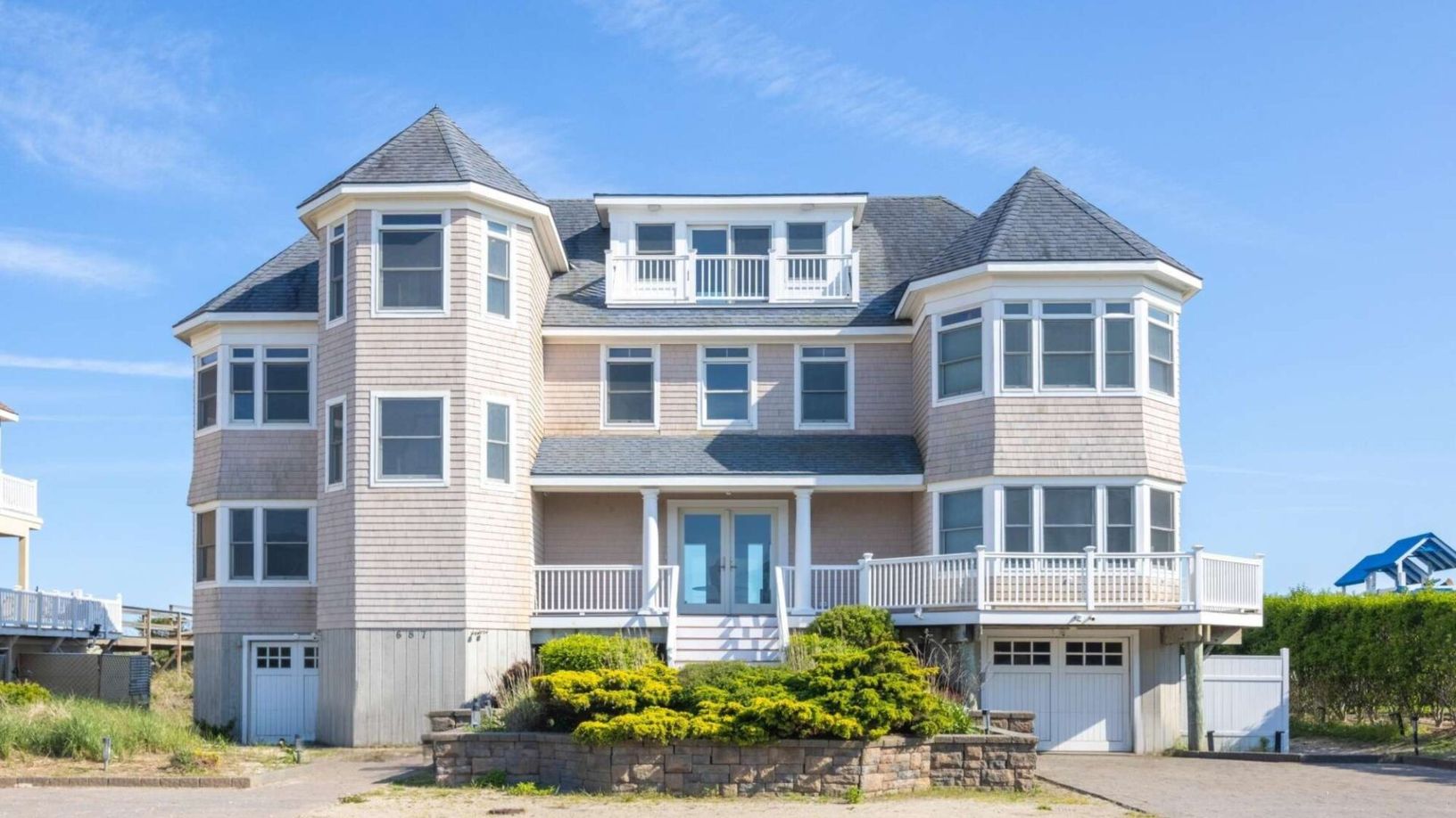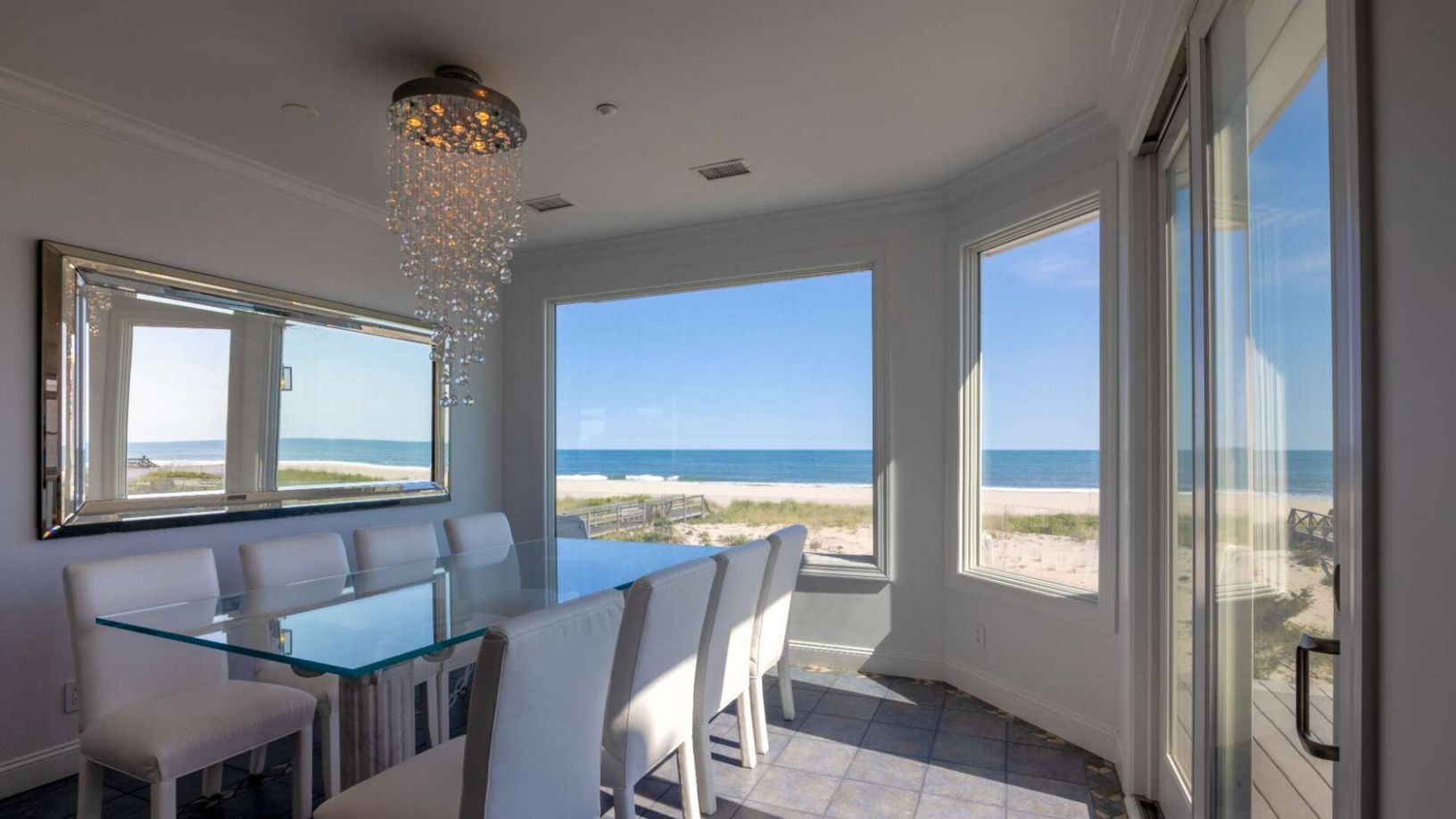 This expansive oceanfront home in Westhampton offers the ultimate getaway for families or large groups looking for a luxurious escape. Boasting a modern design, this stunning 8-bedroom, 7-bathroom retreat accommodates up to 16 guests and provides an unmatched coastal experience. The home is spacious and bright, with multiple sittin