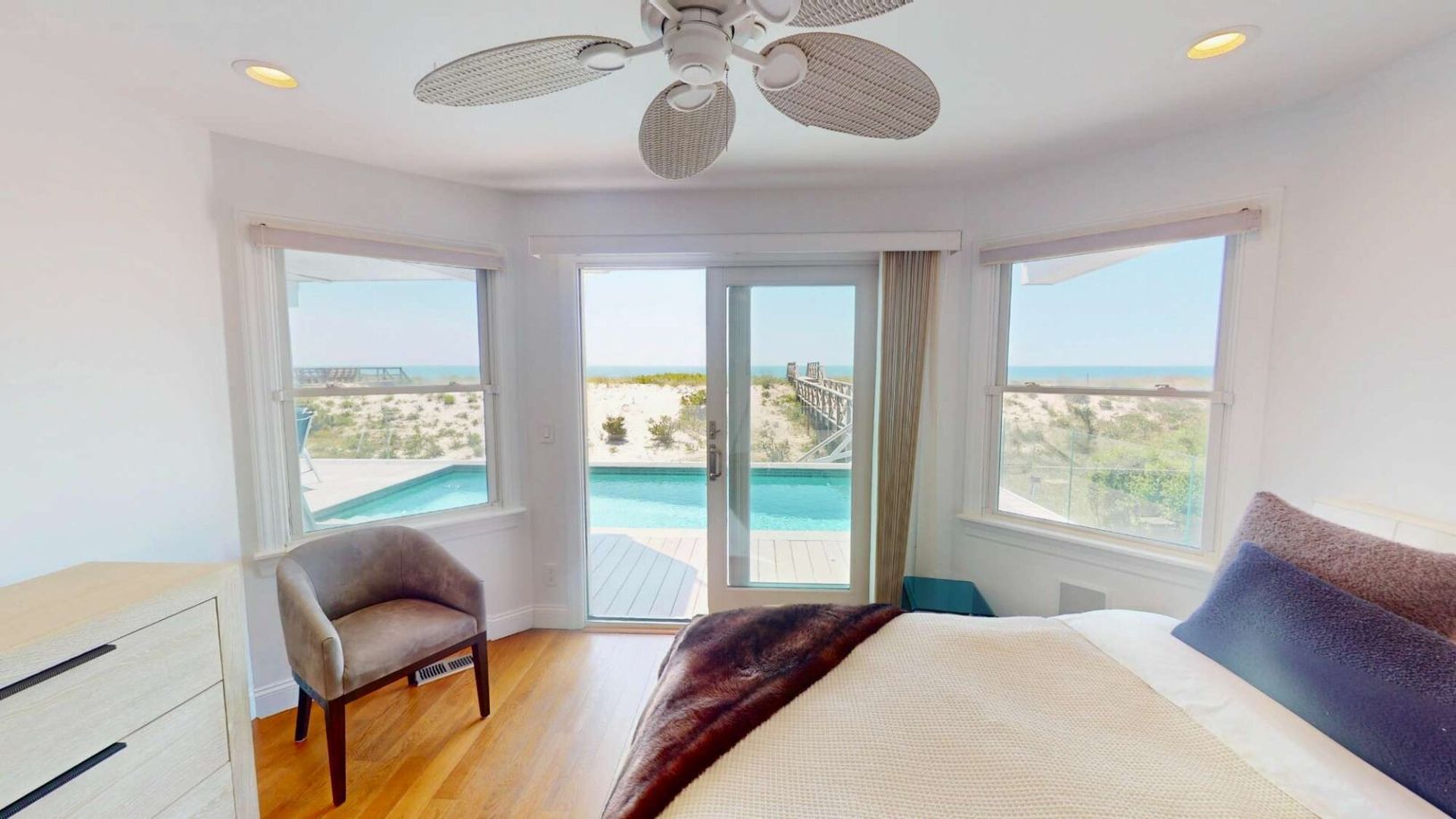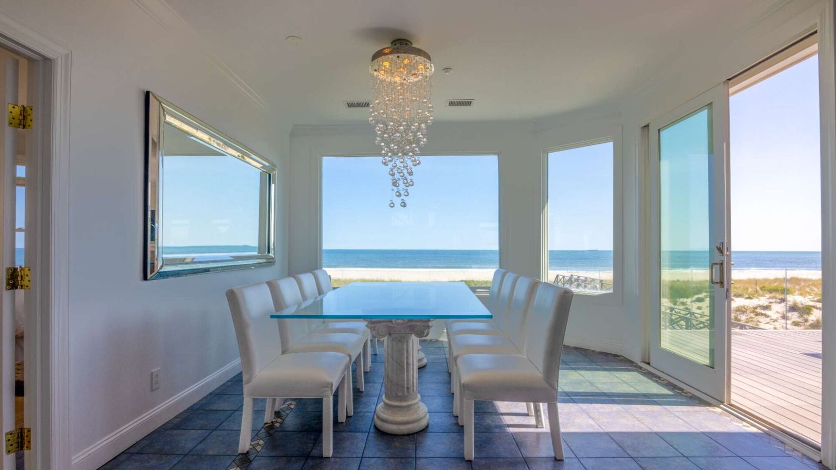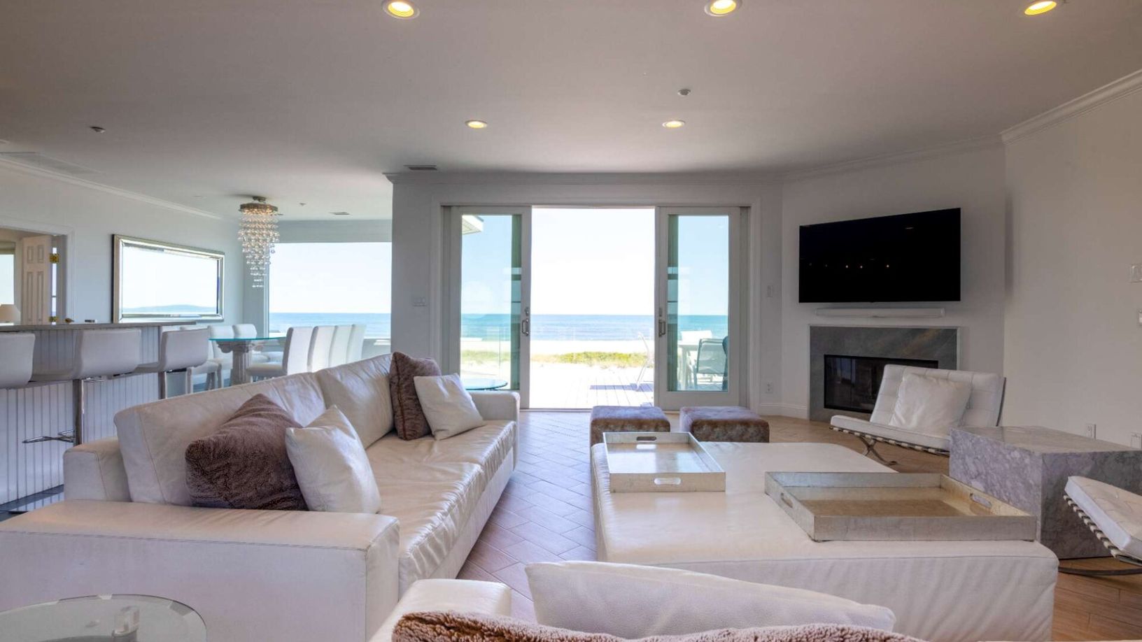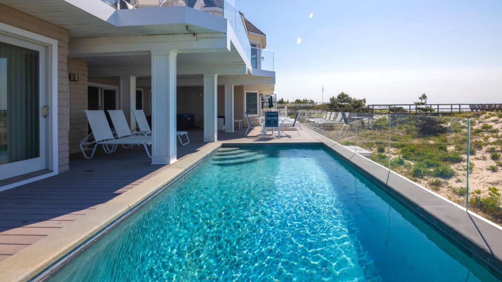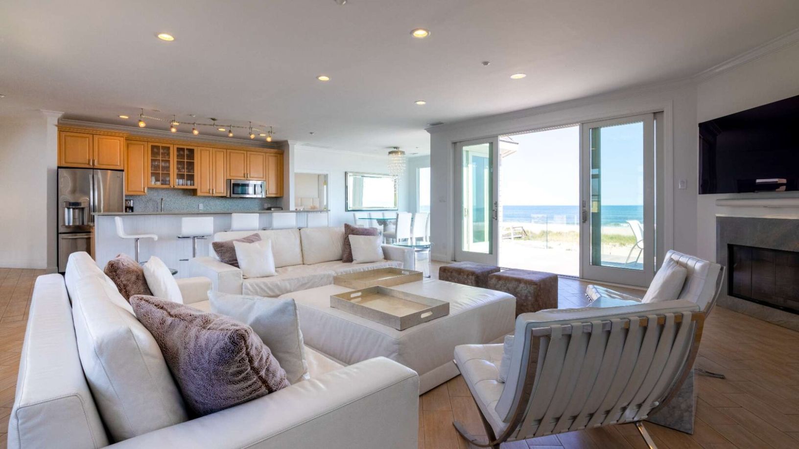 This expansive oceanfront home in Westhampton offers the ultimate getaway for families or large groups looking for a luxurious escape. Boasting a modern design, this stunning 8-bedroom, 7-bathroom retreat accommodates up to 16 guests and provides an unmatched coastal experience. The home is spacious and bright, with multiple sittin