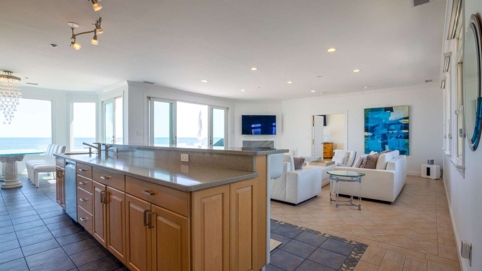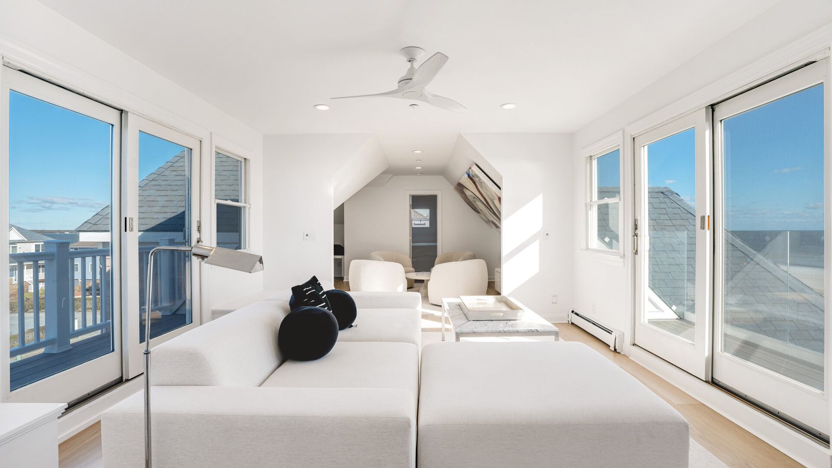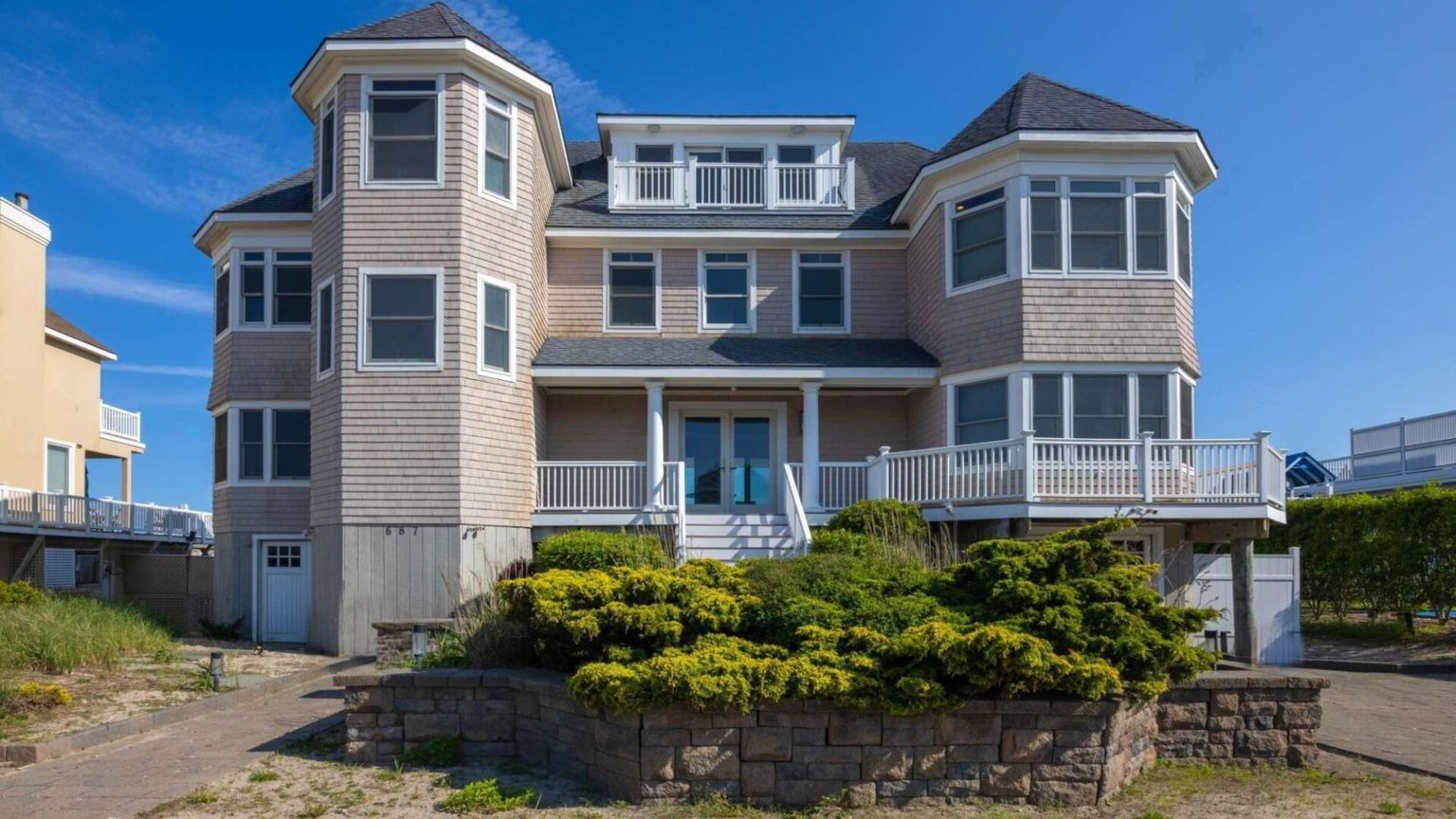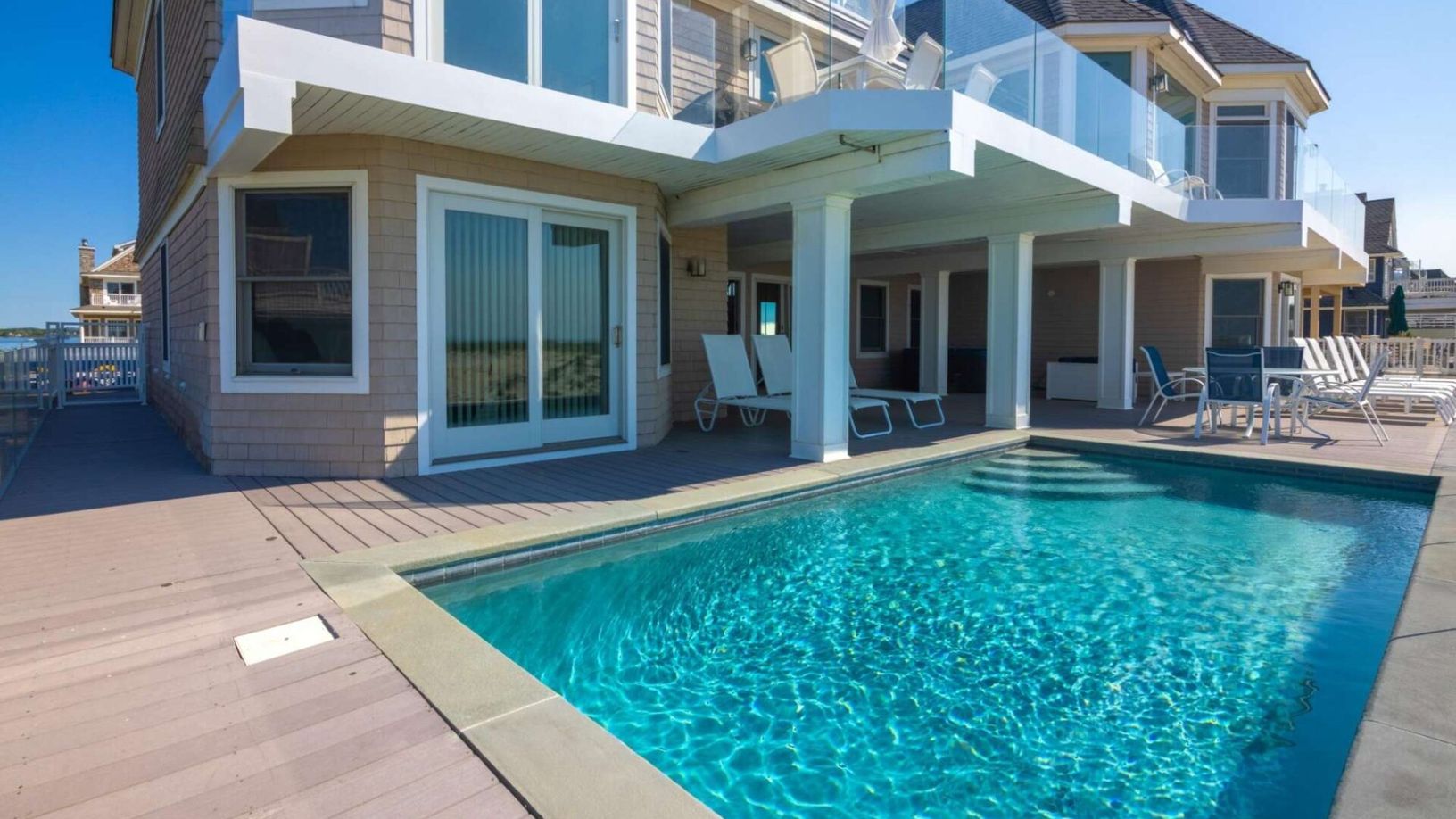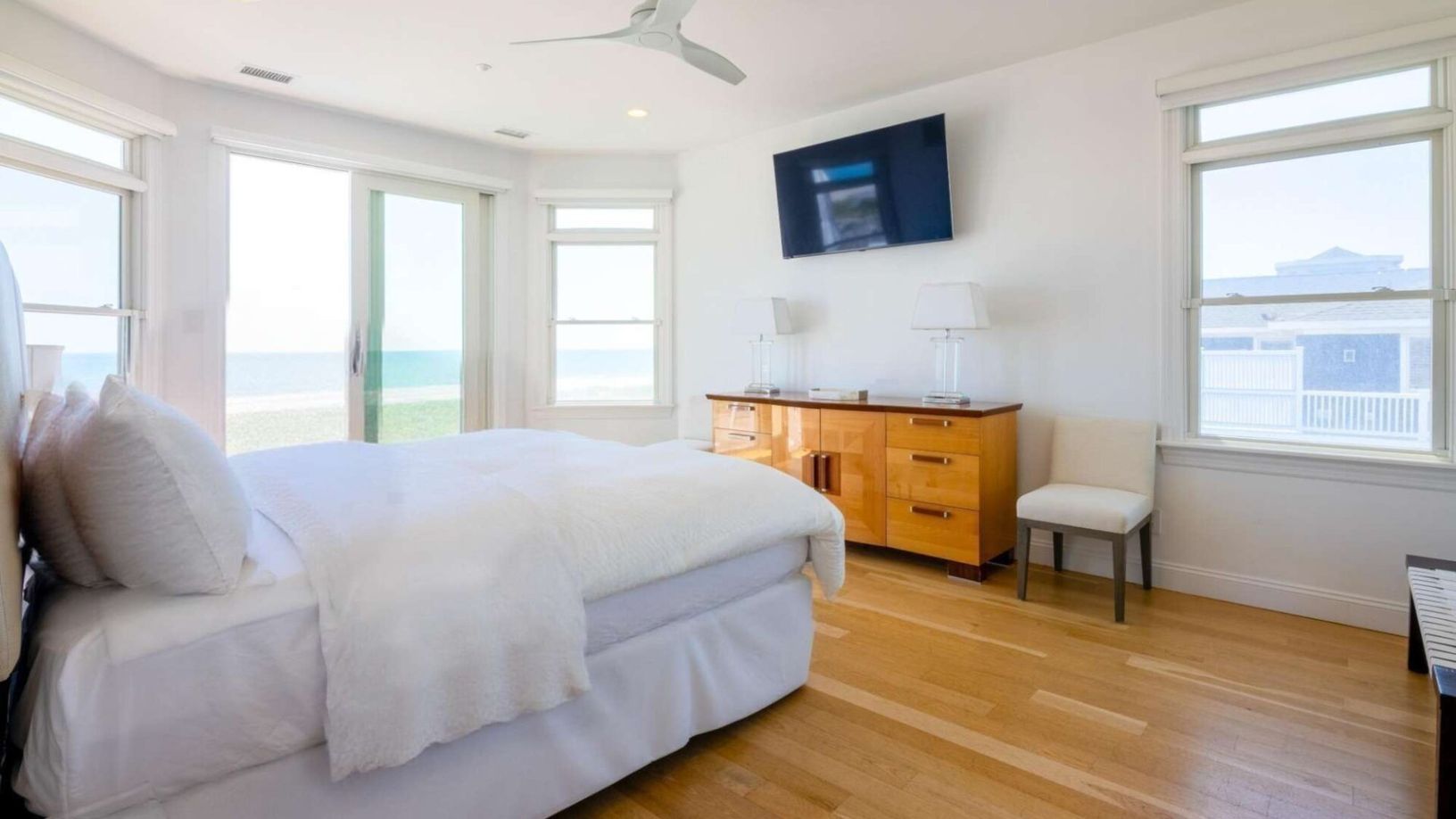 This expansive oceanfront home in Westhampton offers the ultimate getaway for families or large groups looking for a luxurious escape. Boasting a modern design, this stunning 8-bedroom, 7-bathroom retreat accommodates up to 16 guests and provides an unmatched coastal experience. The home is spacious and bright, with multiple sittin