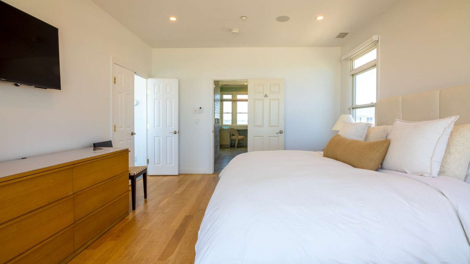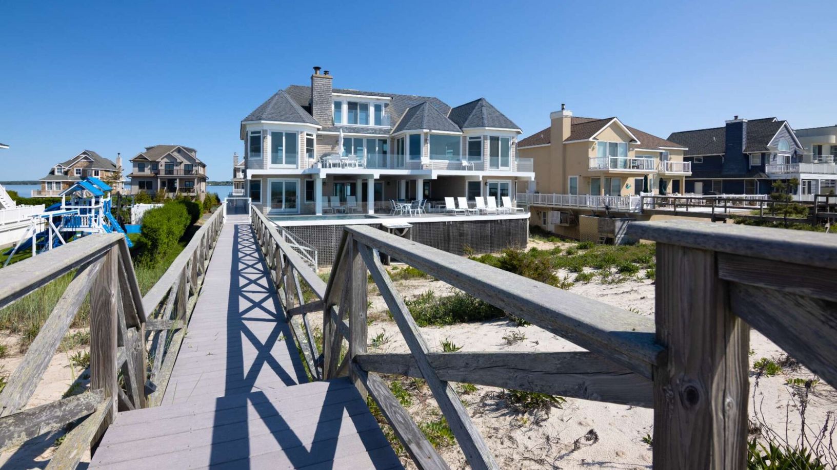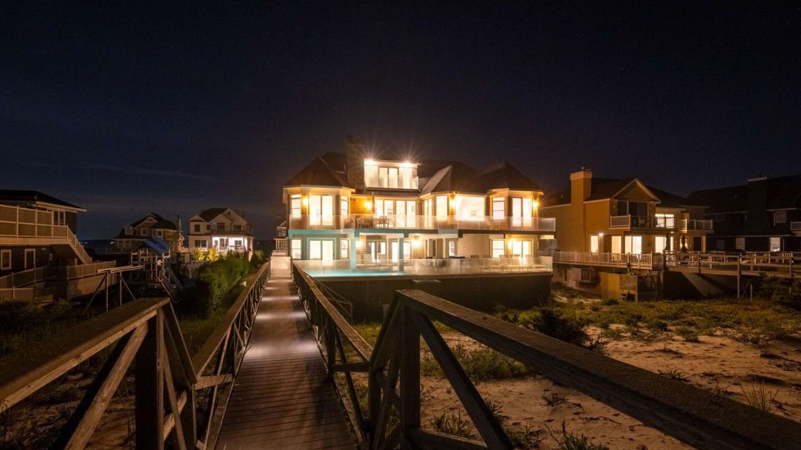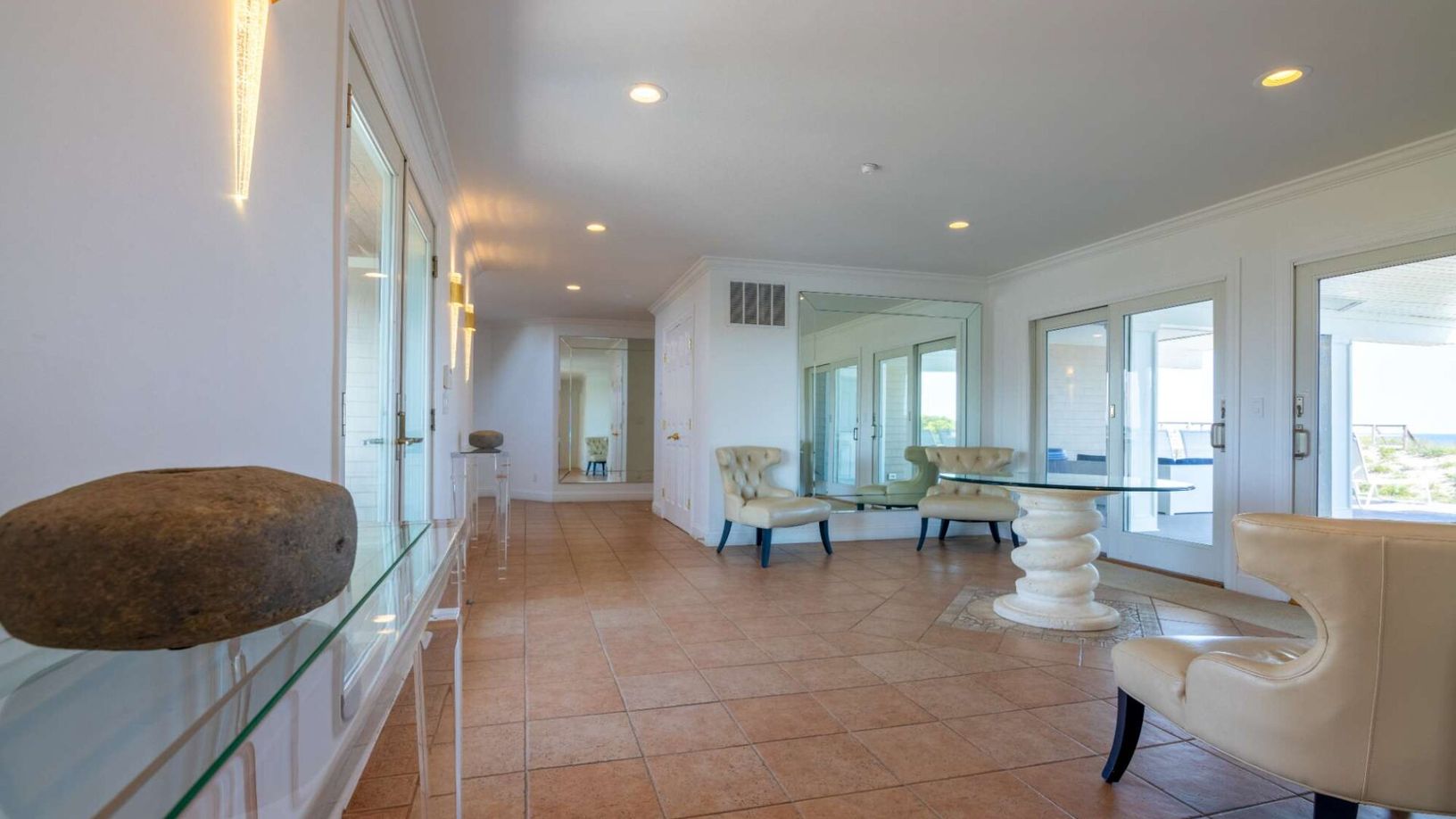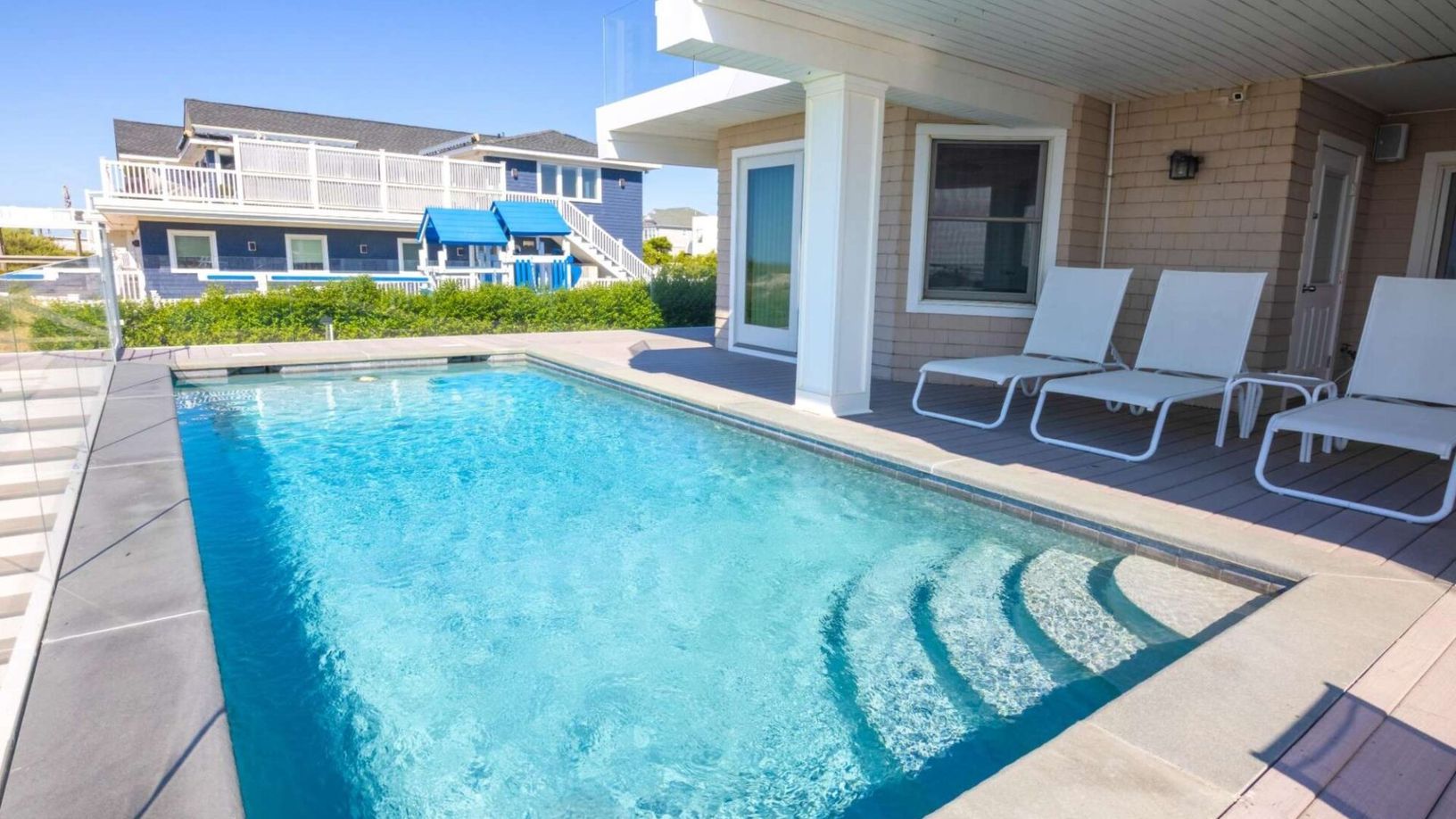 This expansive oceanfront home in Westhampton offers the ultimate getaway for families or large groups looking for a luxurious escape. Boasting a modern design, this stunning 8-bedroom, 7-bathroom retreat accommodates up to 16 guests and provides an unmatched coastal experience. The home is spacious and bright, with multiple sittin