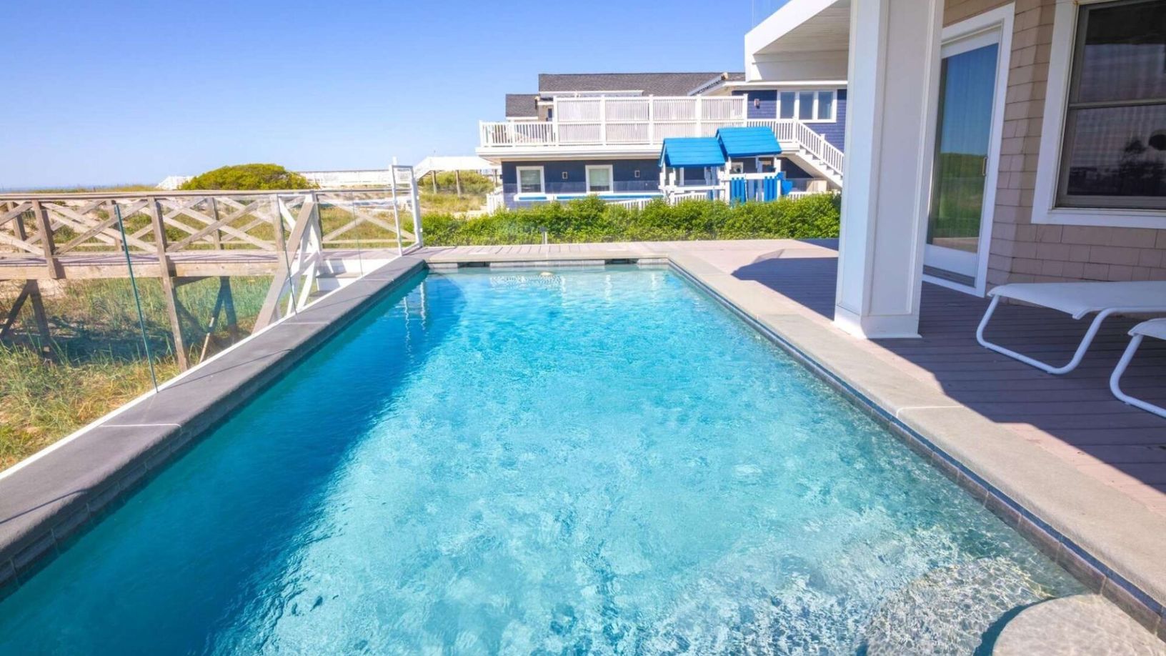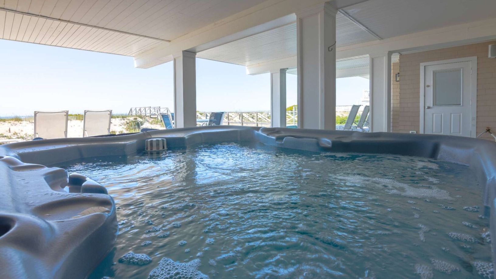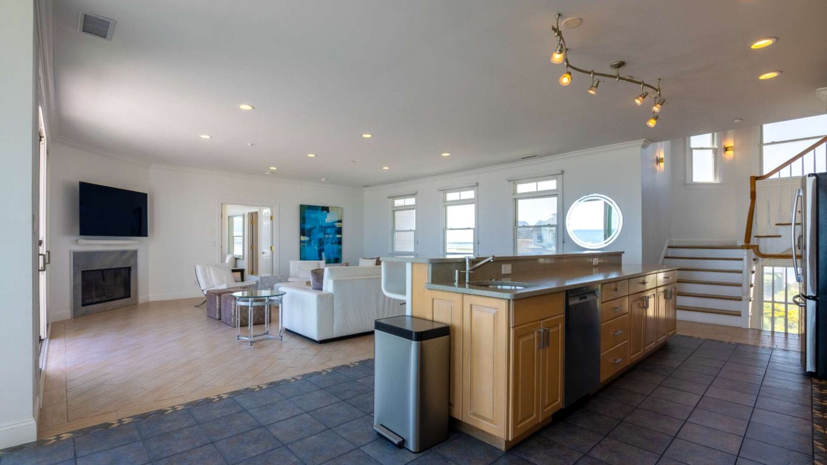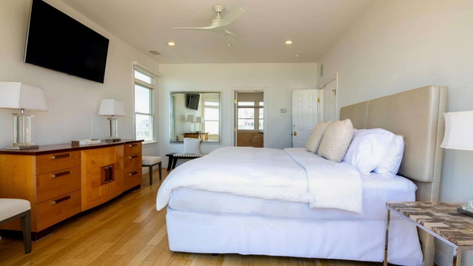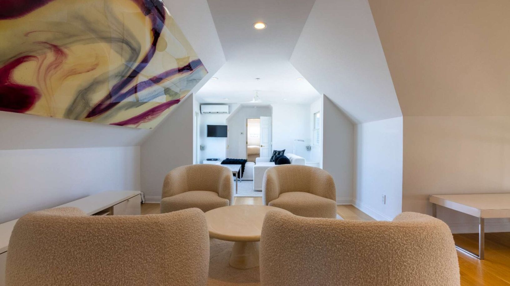 This expansive oceanfront home in Westhampton offers the ultimate getaway for families or large groups looking for a luxurious escape. Boasting a modern design, this stunning 8-bedroom, 7-bathroom retreat accommodates up to 16 guests and provides an unmatched coastal experience. The home is spacious and bright, with multiple sittin