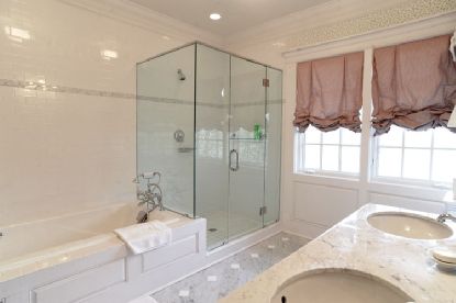 Photographed and presently featured in TRADITIONAL HOME, this classic year round home in East Hampton's estate area is turn key and ready for the discerning buyer. The exterior is stucco with wood trim crafted in the English Tudor style. Over 6,600+/- sq. ft. of inspired interior design features perfectly proportioned rooms with large windows and bold custom woodwork. All the trim in the interior is custom milled and floors are stained white o