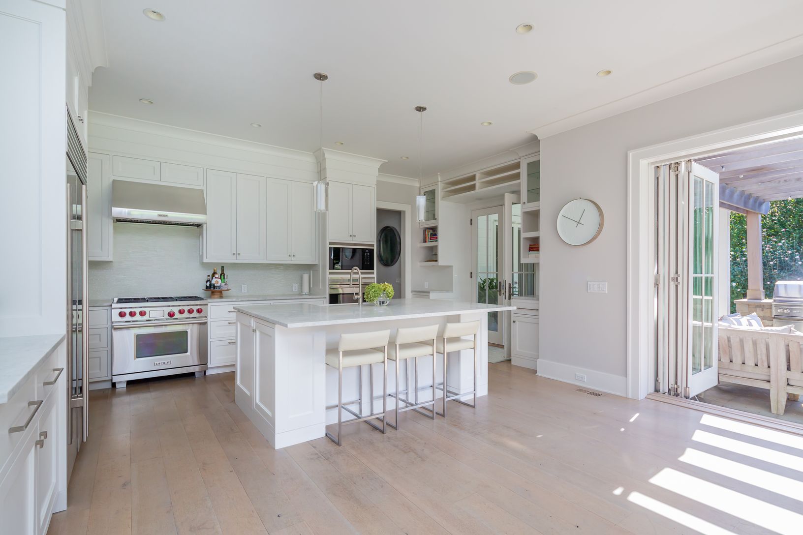 East Hampton perfection, this six bedroom, five and one-half bath stylish home located on the fringe of the village features modern and clean finishes throughout. Absolutely perfect for entertaining is the open layout featuring a sitting area with a new bar, an eat-in kitchen, and dining with two walls of glass that open with a touch of a button to seamlessly blend indoor/outdoor entertaining. Relax under the custom pergola with fire table and