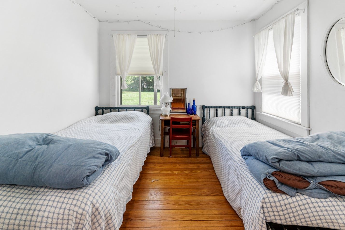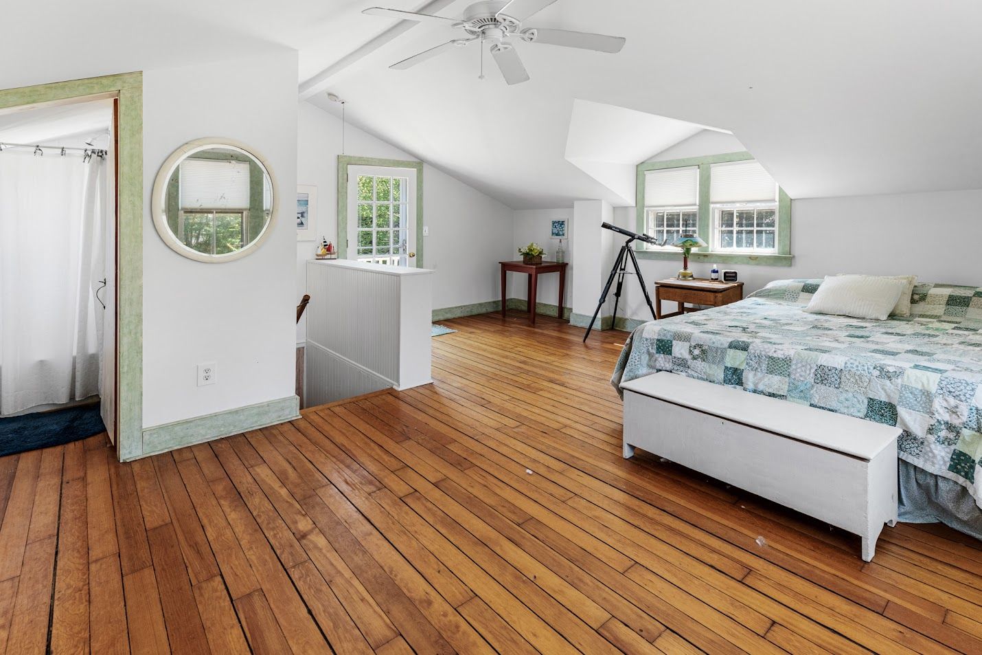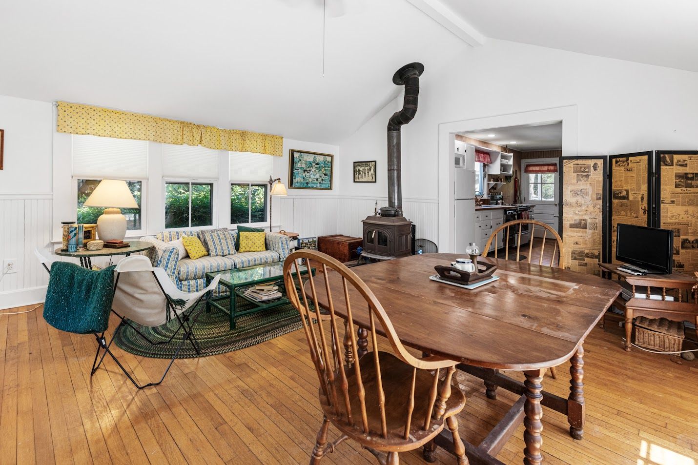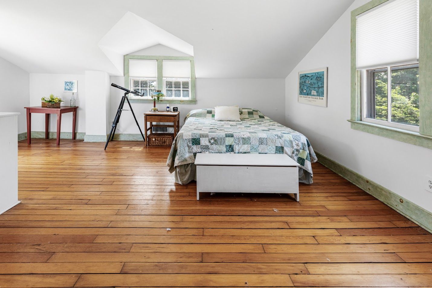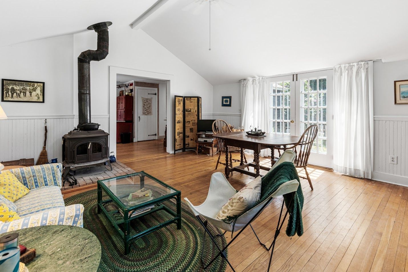 Located in the very desirable Amagansett Lanes, this charming cottage is located down a long private drive, mere minutes to all the Village has to offer, public transportation and ocean beaches. Situated on 0.60 acre, the possibilities are endless. The first floor features the kitchen, dining area, living room with wood burning stove, two guest bedrooms and a full bath. The second floor features the primary en-suite bedroom and a lovely pri