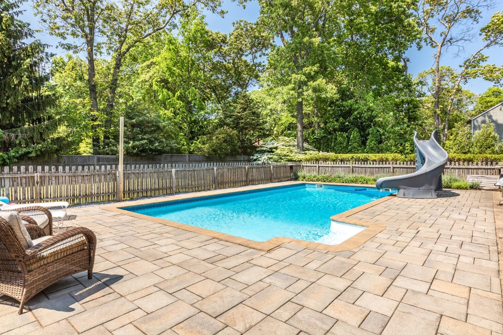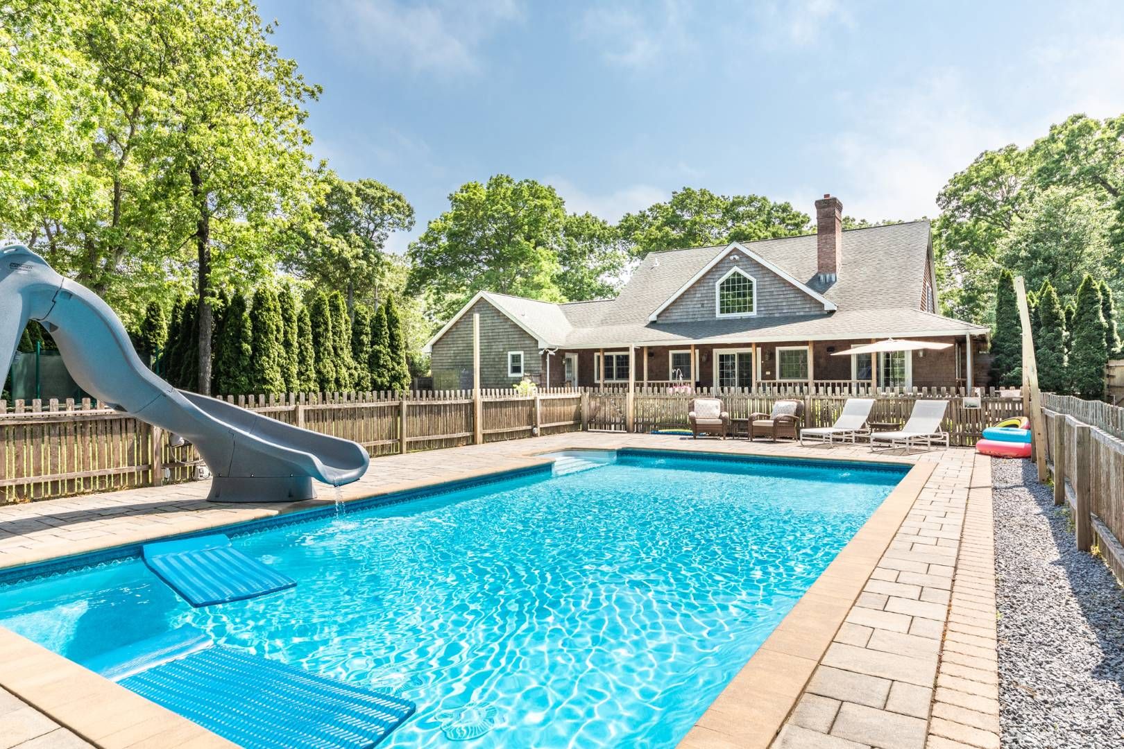 This well maintained traditional East Hampton home and less than 1 mile to Clearwater's private beach. This home features a 4 bedroom, 3.5 baths and a total of 3250 sq. ft. on a shy acre with a beautifully landscaped patio and pool area. The house features a large open living room with a soaring ceiling and fireplace, a formal dining room, kitchen is open and see through with granite countertops and stainless-steel appliances. The family