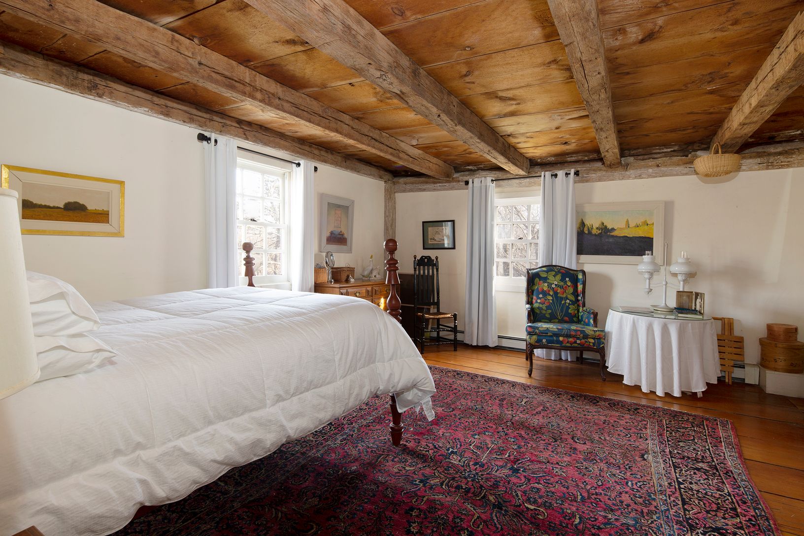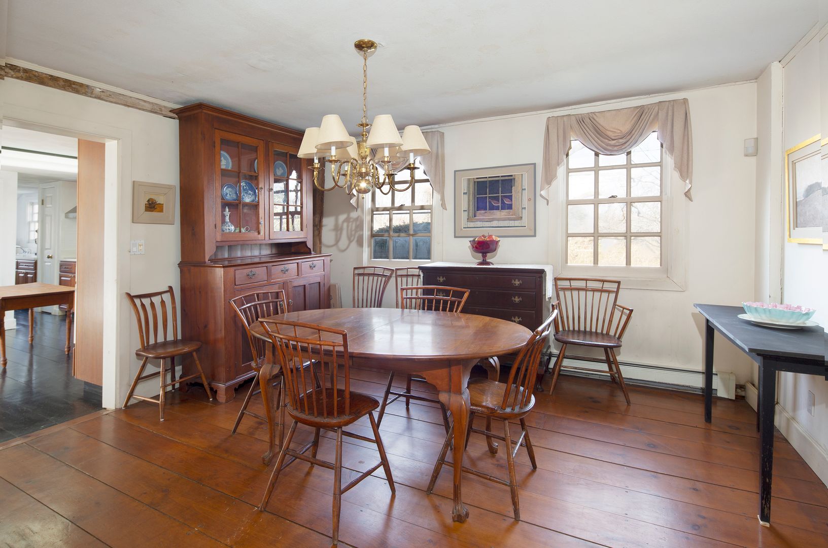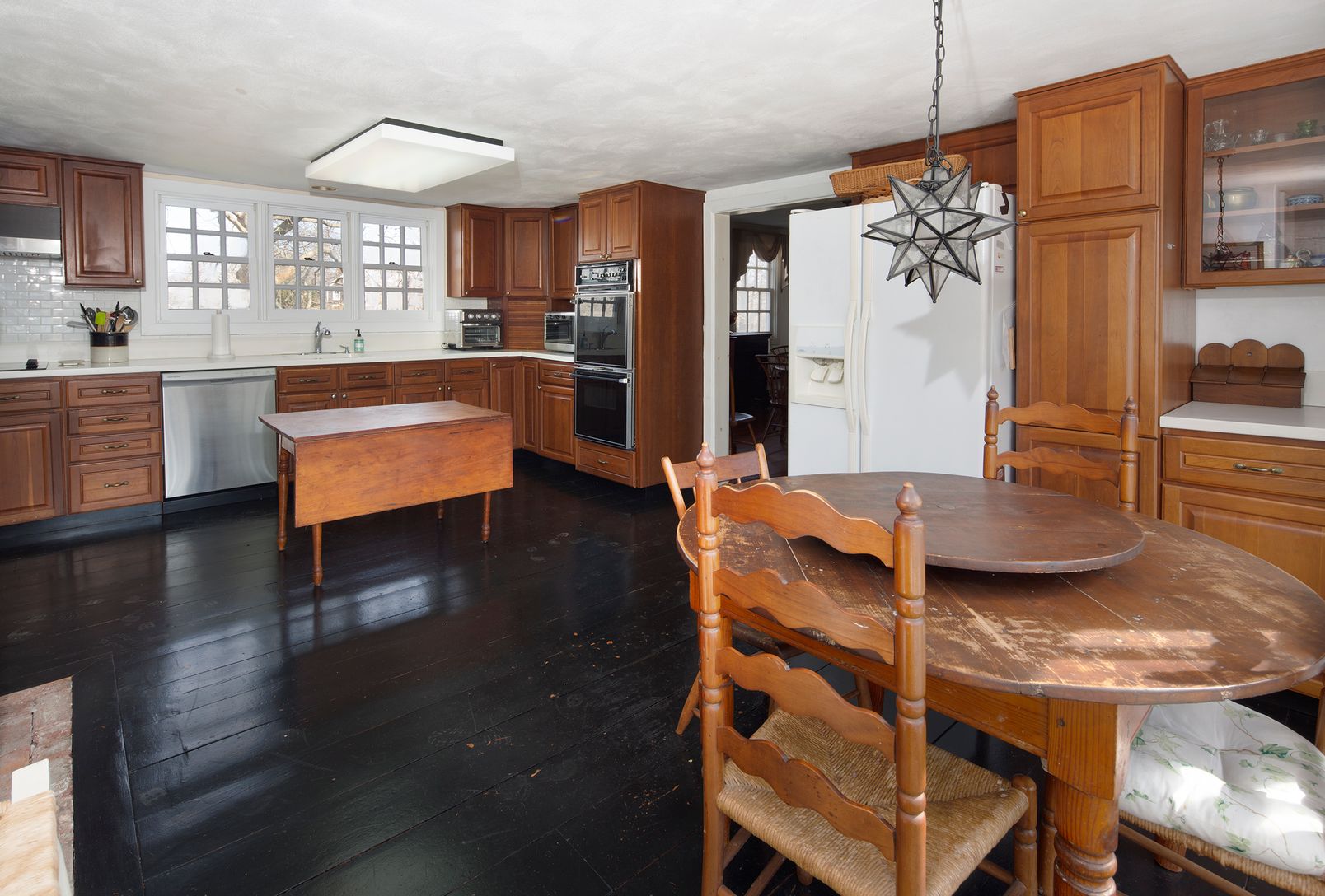 Step back in time to this beautiful Saltbox originally built in 1740 on the corner of two of the most prestigious streets in Bridgehampton. This home has a welcoming entry foyer with a fireplace, light filled living room with ceiling beams and wood burning fireplace, formal dining room, large eat-in-kitchen with a fireplace with new gas insert, separate laundry area and half bath. There is also a sitting room/office once used as a "summer" ki