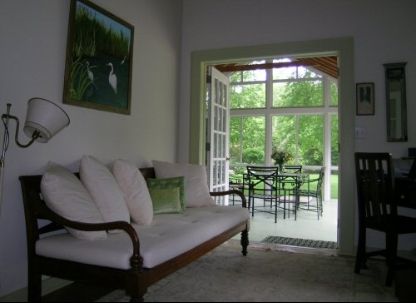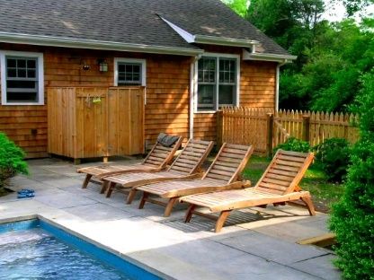 The cottage is terrific for a family with young kids. There are bikes of all sizes, four kayaks, ping pong table, big tree swing, lots of pool toys, and a large, enclosed private front lawn to play on. There is a heated gunite pool, with a handy outdoor shower nearby. The newly remodeled kitchen shares a large space with the living room. French doors lead to the sun room. There is a master bedroom, guest bedroom, a small study and the larg