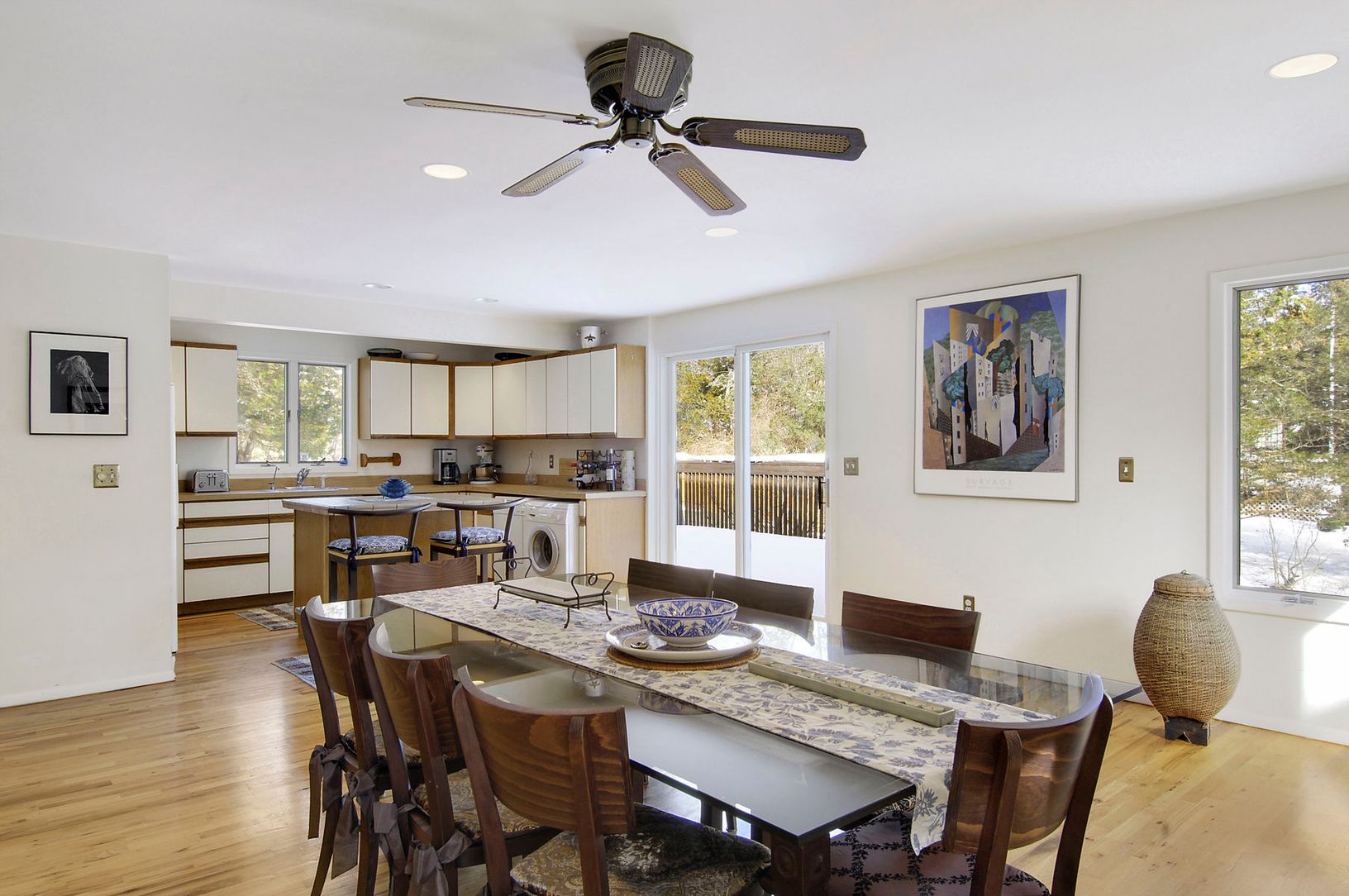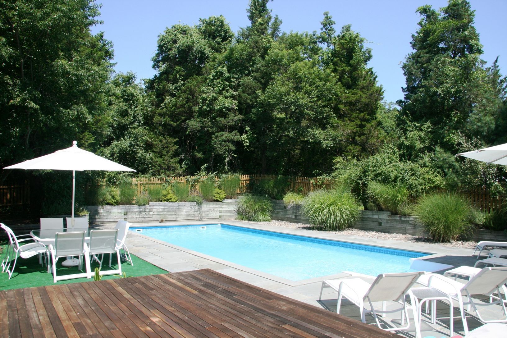 Modern Beach Home on very private lot.This crisp getaway is conveniently located just north of the village in the Towd Pt. area. With a private heated pool and only a few hundred yards to beautiful sandy beach this is a deal. Nicely hidden, yet near farm stands, restaurants, marinas, and the beach.... It's a great location!! Swim at the beach, kayak on the bay or enjoy your heated pool. Fabulous interior space with cathedral LR w/fpl, spaciou