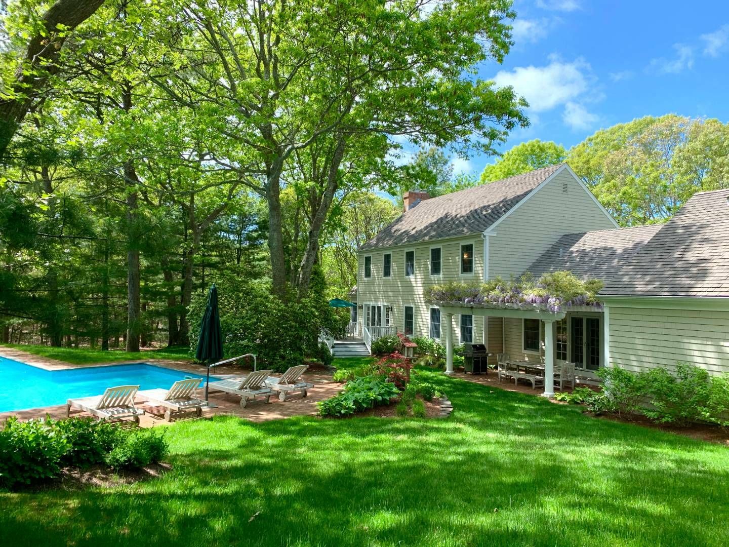 Just listed. Exceptionally well-maintained 4+ bedroom, 5.5 bath shingled traditional sited on a beautifully landscaped 1.15 acre cul-de-sac property in East Hampton's Northwest Woods. A stately covered porch spans the entire width of this spacious, spotless, open and airy residence setting the tone for the gracious proportions and terrific flow within. High ceilings, deep moldings and excellent room size are found throughout. The elegant entry