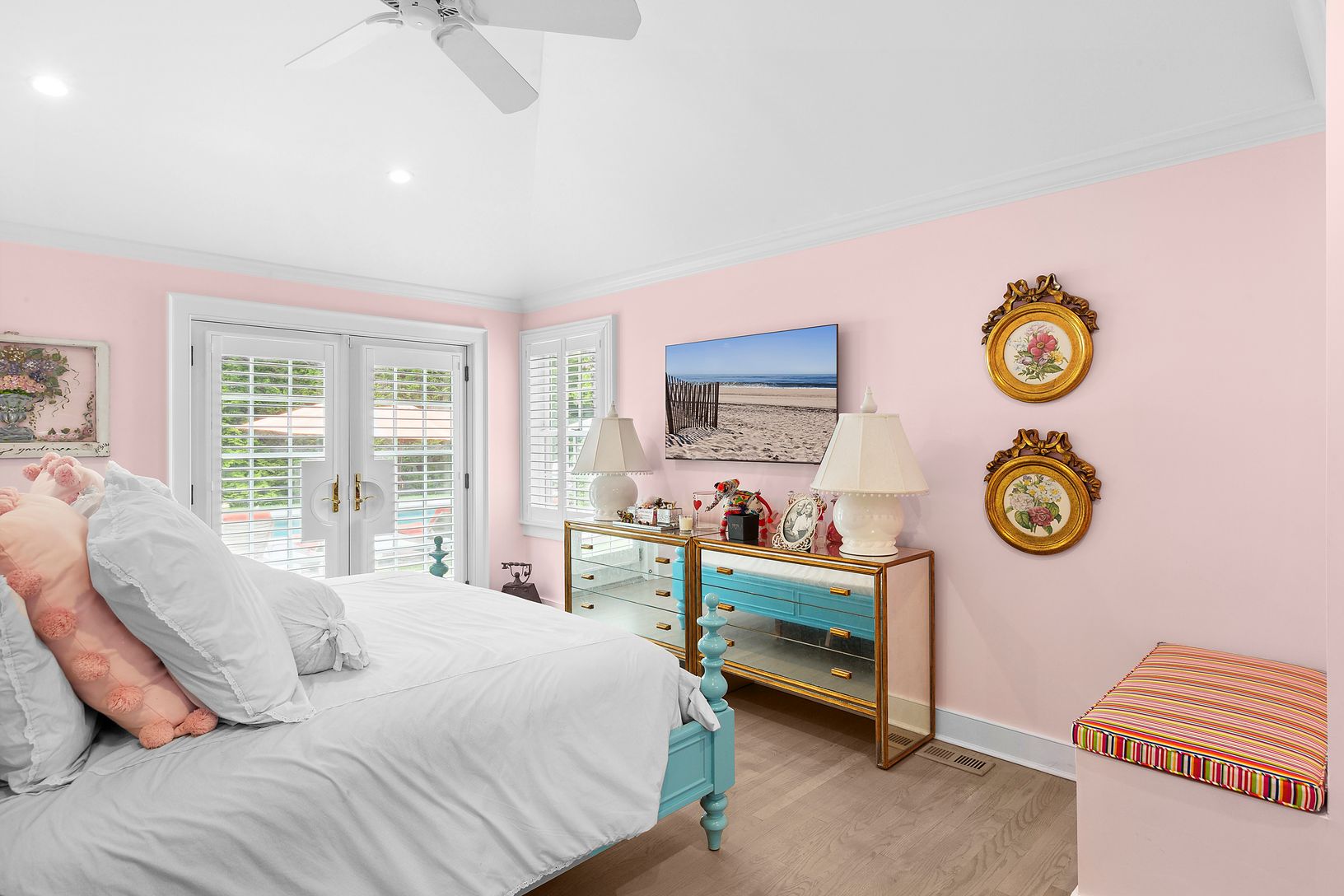 Boasting three generous bedrooms, including two primary suite options, this home
