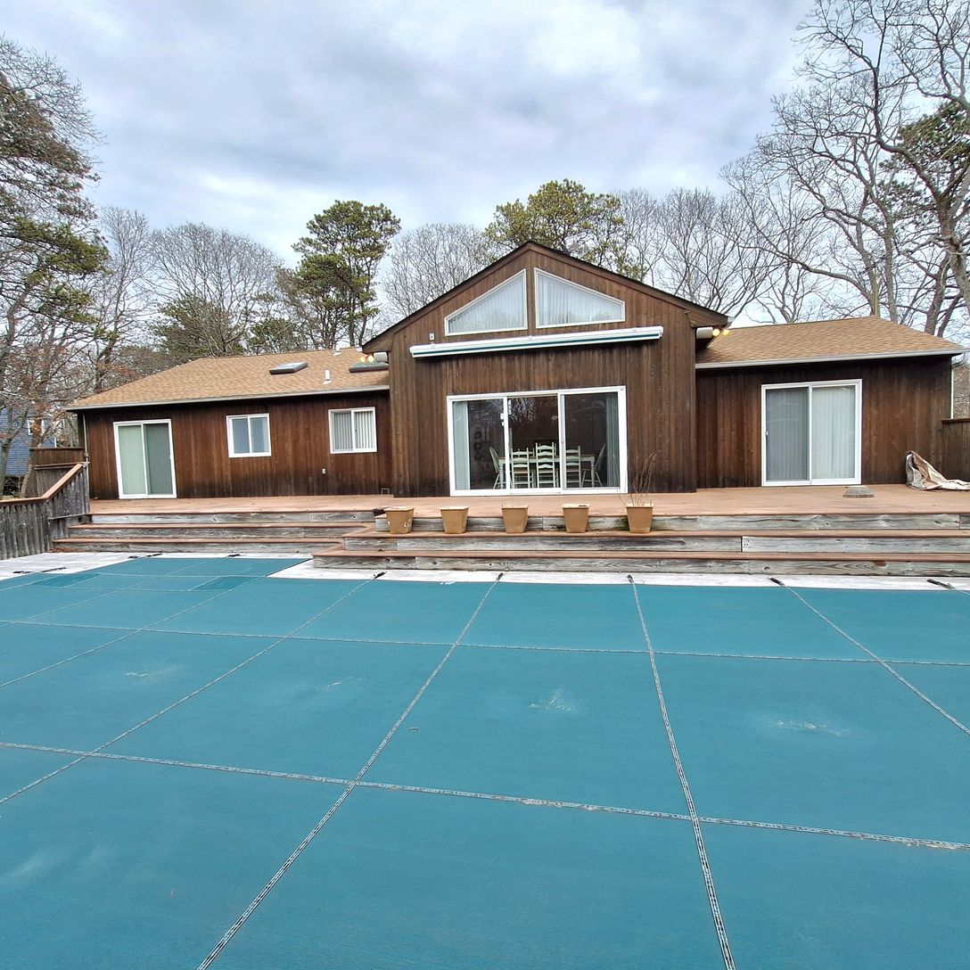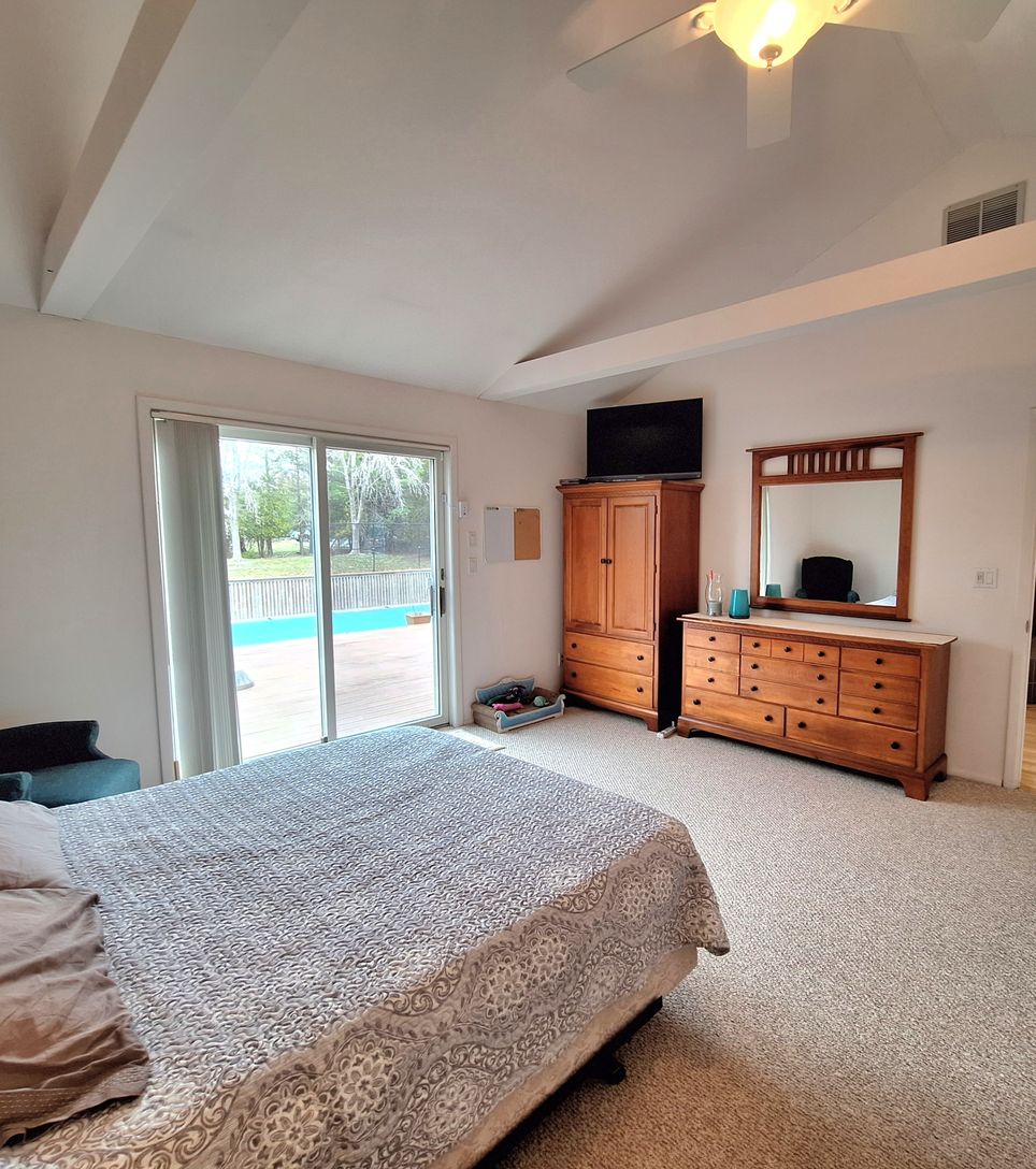 Nestled south of the highway on a full acre, this easy, breezy ranch offers the perfect blend of comfort and resort-style living. The property features central air conditioning, a heated pool, Har-Tru tennis court, and a charming pool house-ideal for relaxing or entertaining. Inside, the open-concept l