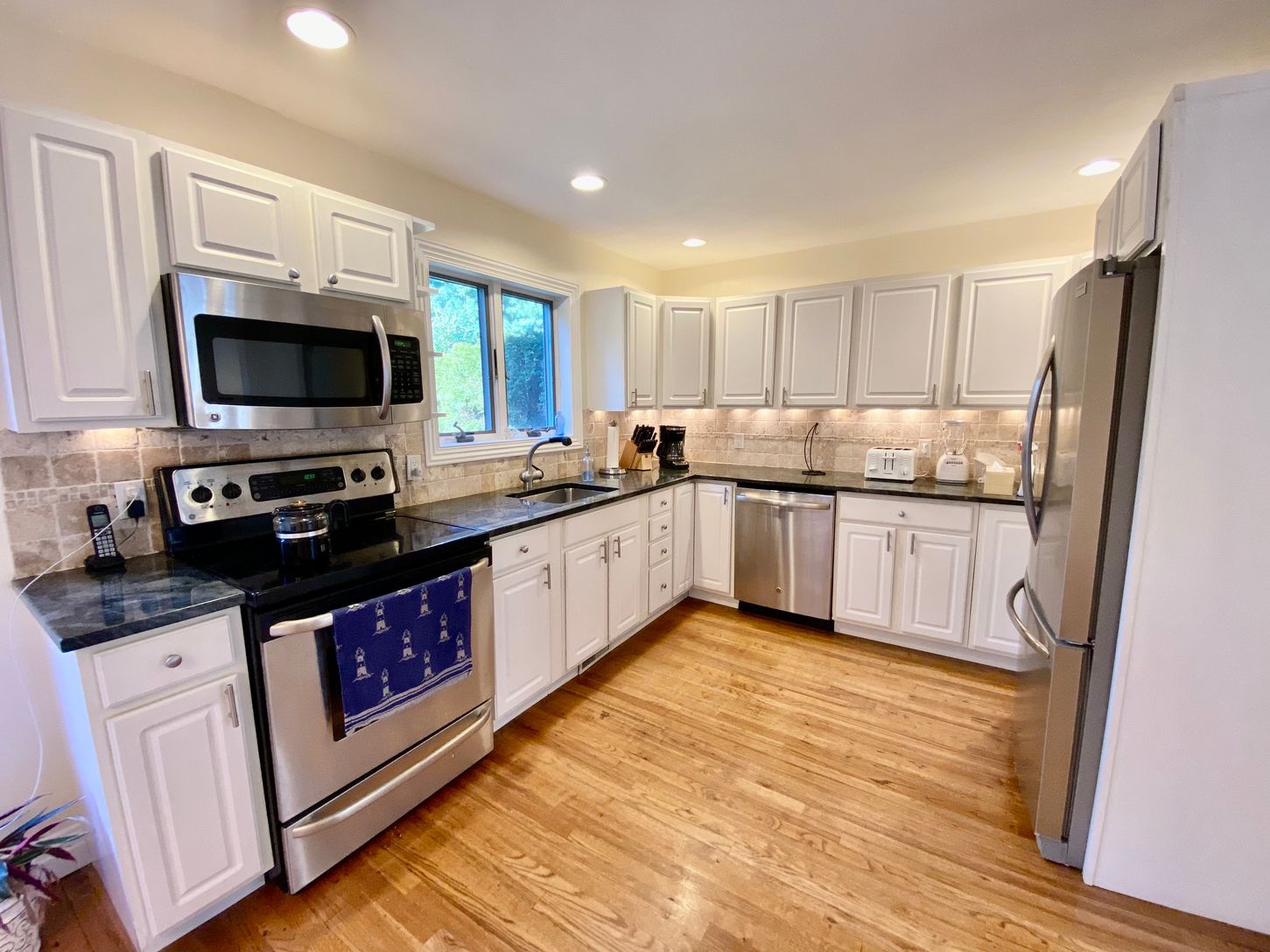 Fully renovated, well hidden, and nicely landscaped! This beautifully done Colonial home brings you all that you need for the upcoming summer season. This home is elegantly decorated and features 3 sparkling guest bedrooms plus 4th master suite with fireplace and 46 flat screen TV, a living room with 52 flat screen TV, office/den, and fully equipped specious eat-in kitchen. The outside is very relaxing. There's a swing bench on the front porc