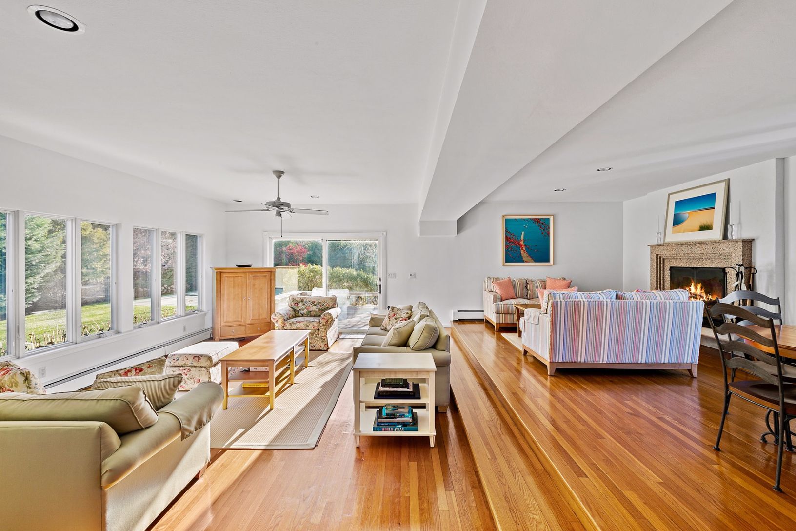 This property is all about location and privacy yet just blocks from beaches, shops and restaurants. It's a water lovers dream with a ROW to a community dock on Quantuck Bay only steps from the house. The layout is perfect for accommodating a large family and entertaining many guests. The open living room has 2 seating areas with fireplace as well as casual dining. The huge kitchen features a living/dining area as well as beautiful polished st