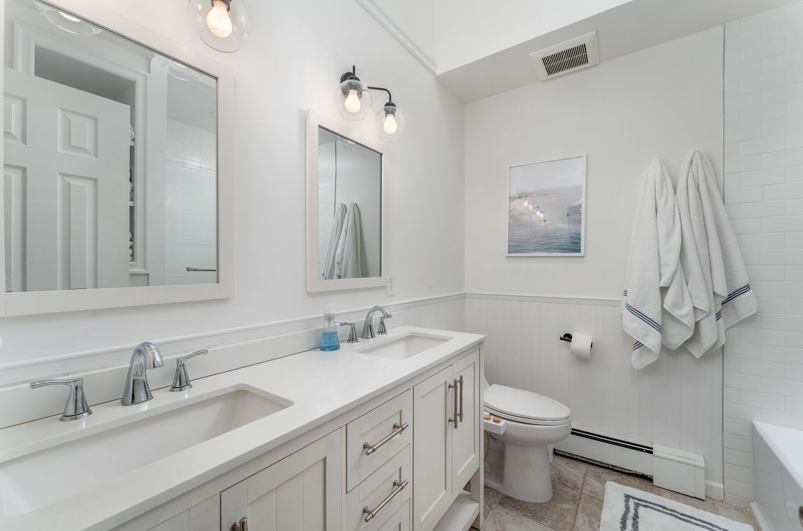 Spend your summertime in easy breezy comfort at Surf Farmhouse, where farmhouse chic meets surfer chill. Casual and cool, the stylishly appointed two-story home features three bedrooms, two full baths, a fireplace, living room, family room, spacious open-kitchen-to-dining area, gym, wood floors throughout, and loads of outdoor space for gathering and entertaining, front and back.