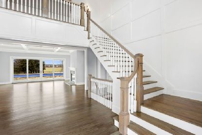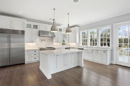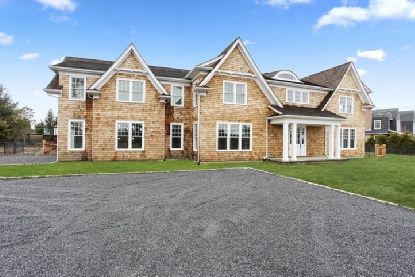 Twin Gable Post Modern Shingled Construction in Water Mill close to Southampton Village and Ocean Beaches. Drive through charming Mill farm, lined with similarly shingled homes, up a long driveway with Belgian block apron leading to a private gravel driveway to find this new 5,300 sq. ft. 6 bedroom 6.5 bath home on a shy acre. Open, state of the art chef's kitchen with white custom cabinetry and architectural hardware pulls. Italian Statuary W