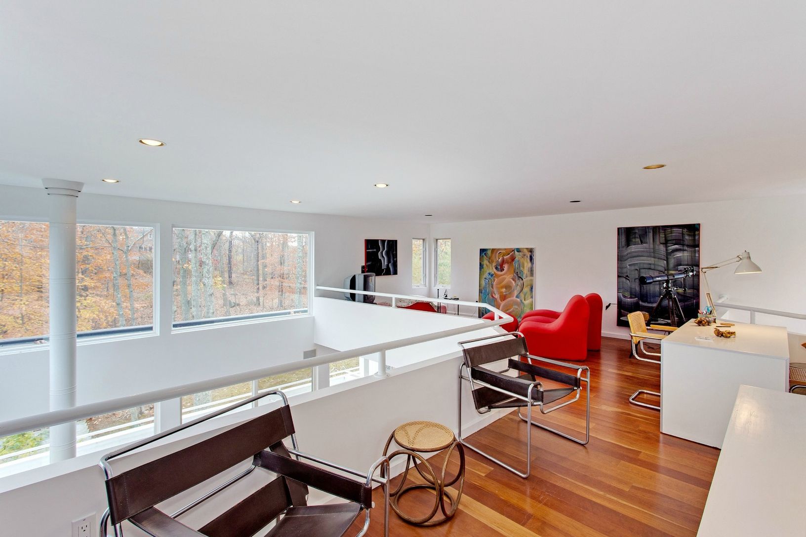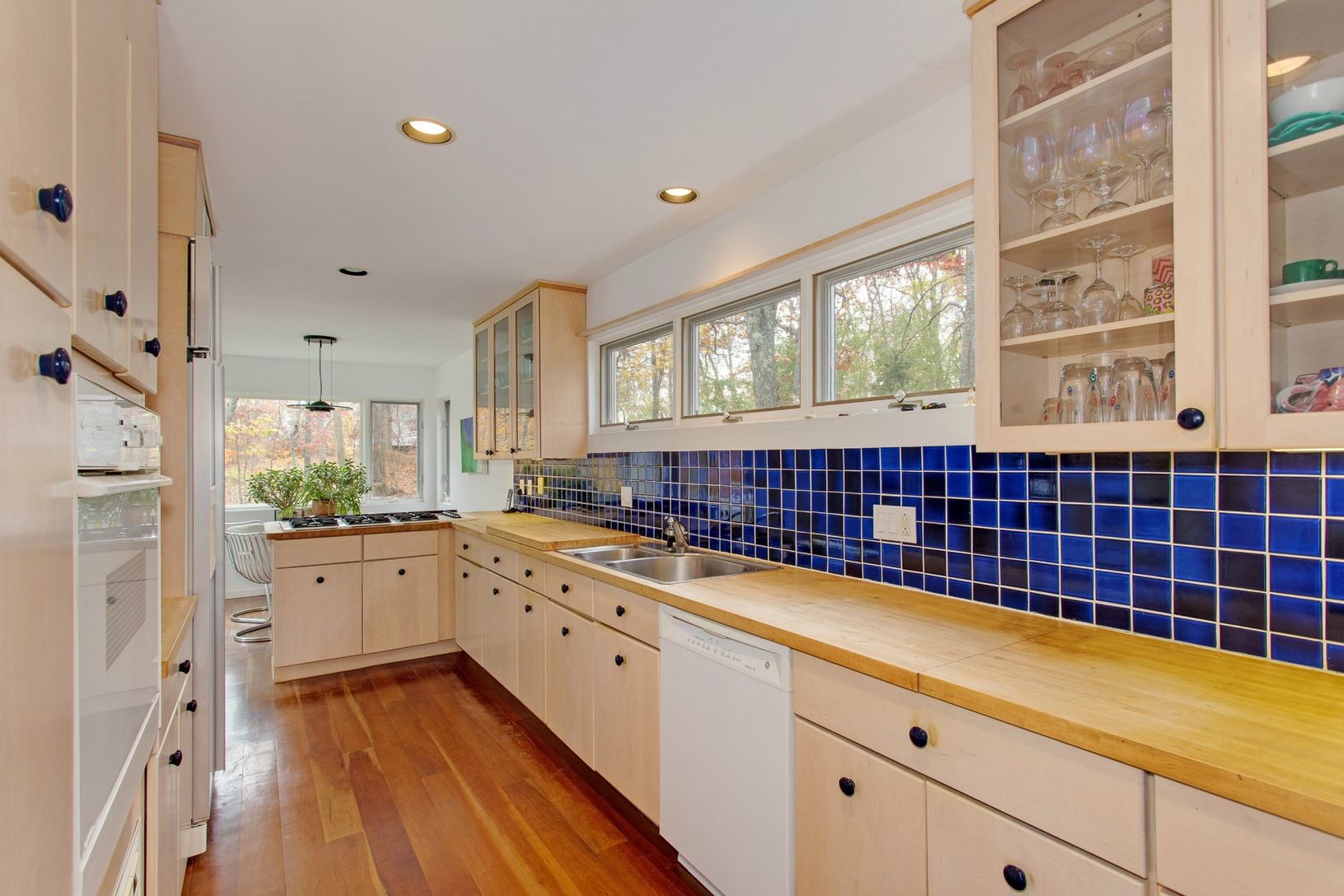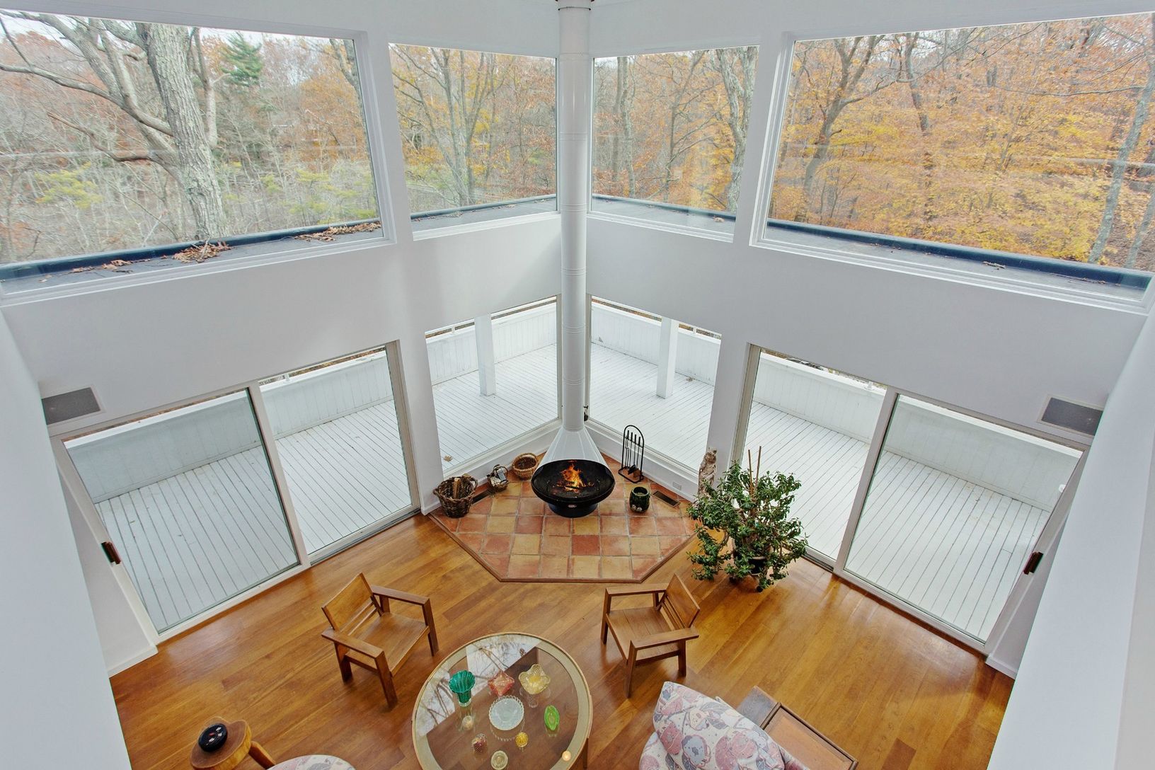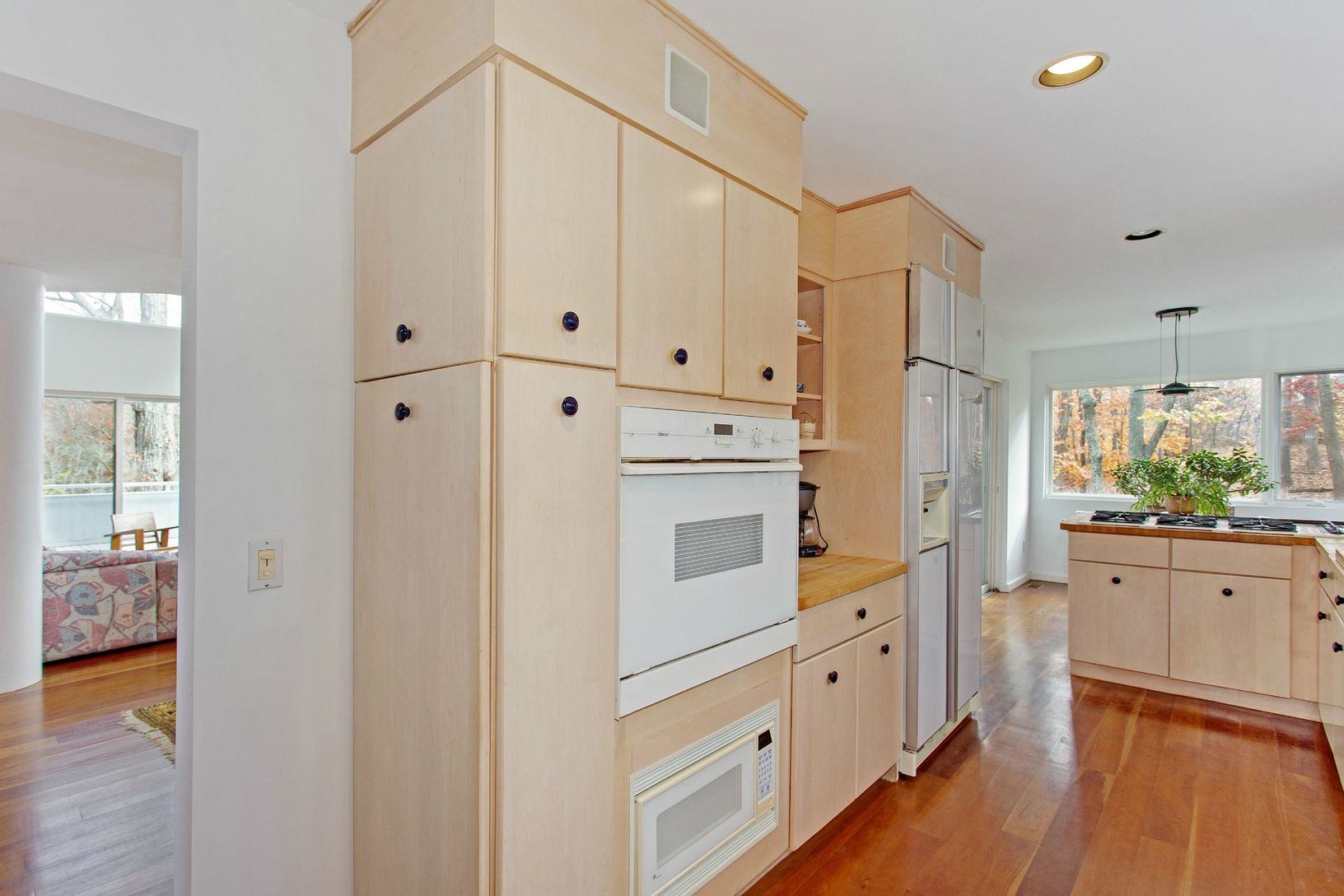 This lovely contemporary style home is situated on 1.2 acres of rolling wooded property and borders a reserve. This home offers three levels of space and brings nature in through the walls of windows. Lovely decks on the first floor and 2nd level expand the living space outdoors. Beautiful cherry floors throughout make this a wonderful home for seasonal or year round.