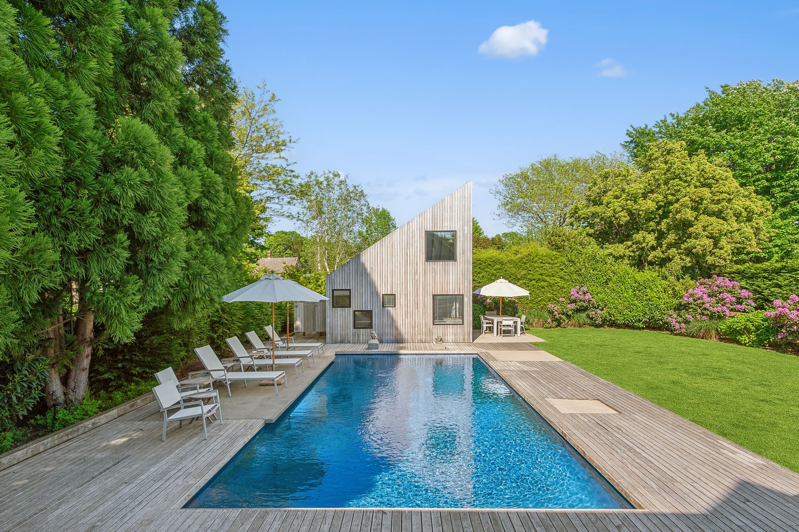 This 5 bedroom, 3 1/2 bath is the perfect Hampton's rental option. Close to town shops and dining, minutes from the ocean, this immaculate renovation offers a bright, open downstairs floor plan with state of the art kitchen. Enjoy the manicured outside living space with an 18 x 32 heated gunite pool, surrounded by beautiful new decking and an attached pool house with an outdoor shower.