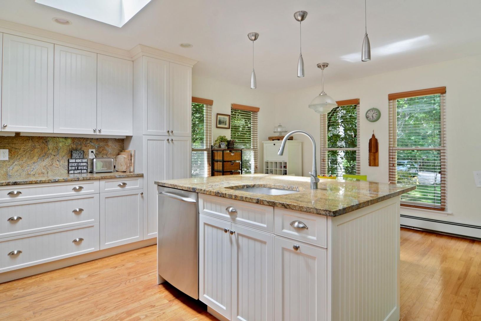 Set on a .70 acre lot on a charming and quiet neighborhood in East Hampton, this recently renovated home offers modern amenities with a convenience proximity to the beach and local restaurants. This home features 3 bedrooms, 3 baths, living room, eat in kitchen, dining room, recently finished lower level with full bath and two laundry rooms. The 14 foot ceiling in the living room with picture windows provides ample light. The Large Primary Bed